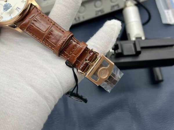 IWC Portuguese Automatic 42.3mm White Dial 18K Red Gold Case Leather Strap is crafted with precision using an automatic mechanical movement. Featuring premium materials, sapphire glass, and a handcrafted strap, it blends classic design with Swiss excellence. Each timepiece ensures reliable accuracy, durability, and timeless style for every occasion.