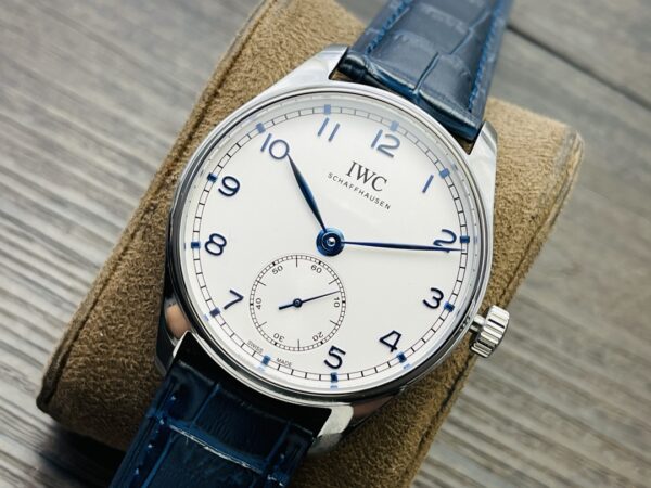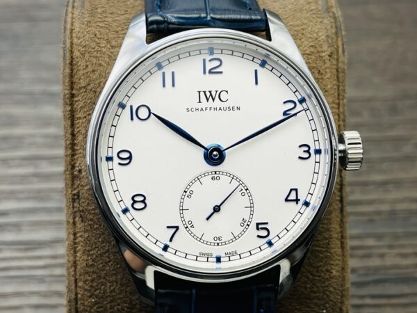 The IWC Portuguese Automatic IW358304 represents Swiss precision and refined design. Powered by the Cal.82200 automatic movement, it ensures exceptional accuracy and durability. The 40.4mm polished stainless steel case complements the white dial beautifully, while leaf-shaped hands and Arabic numerals enhance legibility. Paired with a leather strap, this timepiece perfectly combines tradition and modernity.