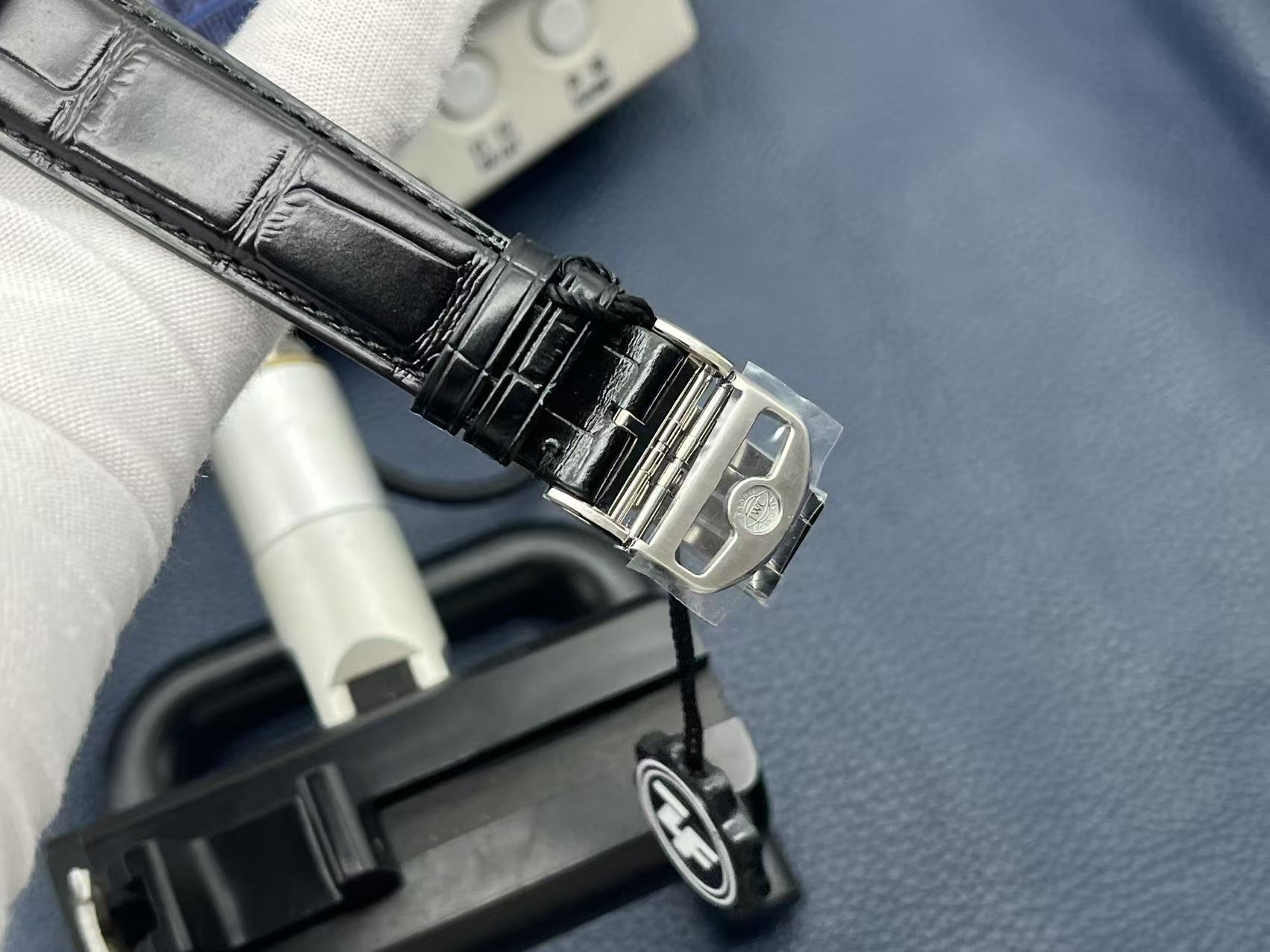 IWC Portuguese Chronograph 41mm White Dial Stainless Steel Case Leather Strap is crafted with precision using an automatic mechanical movement. Featuring premium materials, sapphire glass, and a handcrafted strap, it blends classic design with Swiss excellence. Each timepiece ensures reliable accuracy, durability, and timeless style for every occasion.