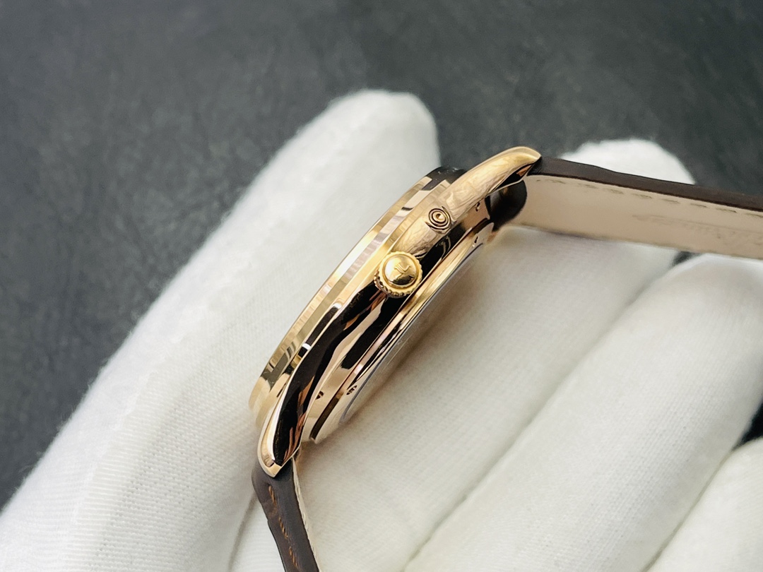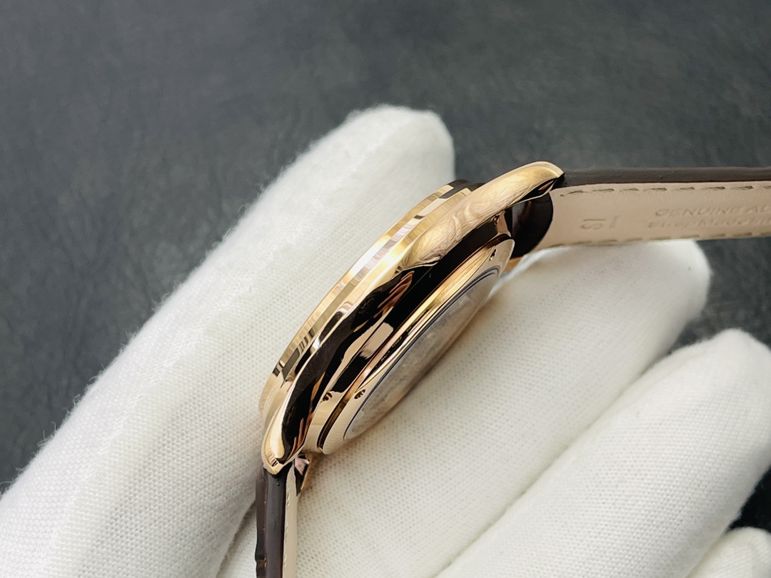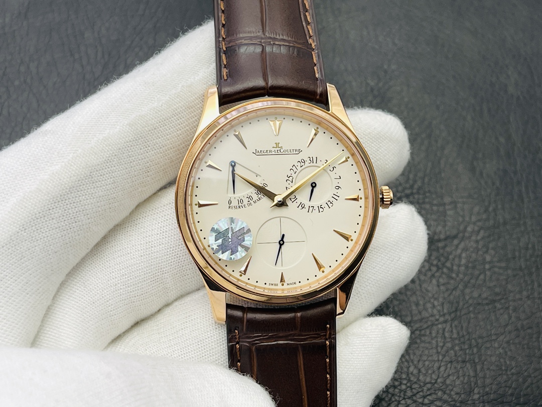 The Jaeger-LeCoultre Master Ultra Thin Q1372520 features a sleek 39mm case just 9.9mm thick. Driven by the Cal.938 movement, it offers date and power reserve functions with 28,800 vibrations per hour. The yellow sunburst dial glows with subtle warmth under sapphire crystal. Elegant and minimalist, this timepiece represents the pinnacle of slim automatic design.