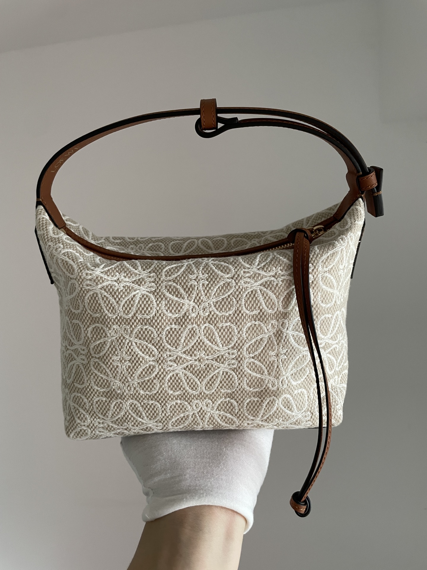 LOEWE Cubi Anagram small tote in jacquard and calfskin — practical and chic.
