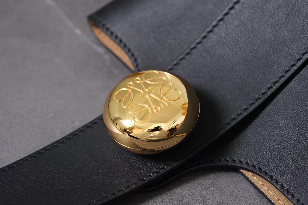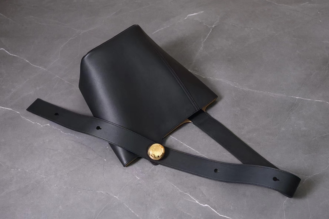 LOEWE Pebble Bucket Calfskin Crossbody Bag with Anagram Hardware – Black