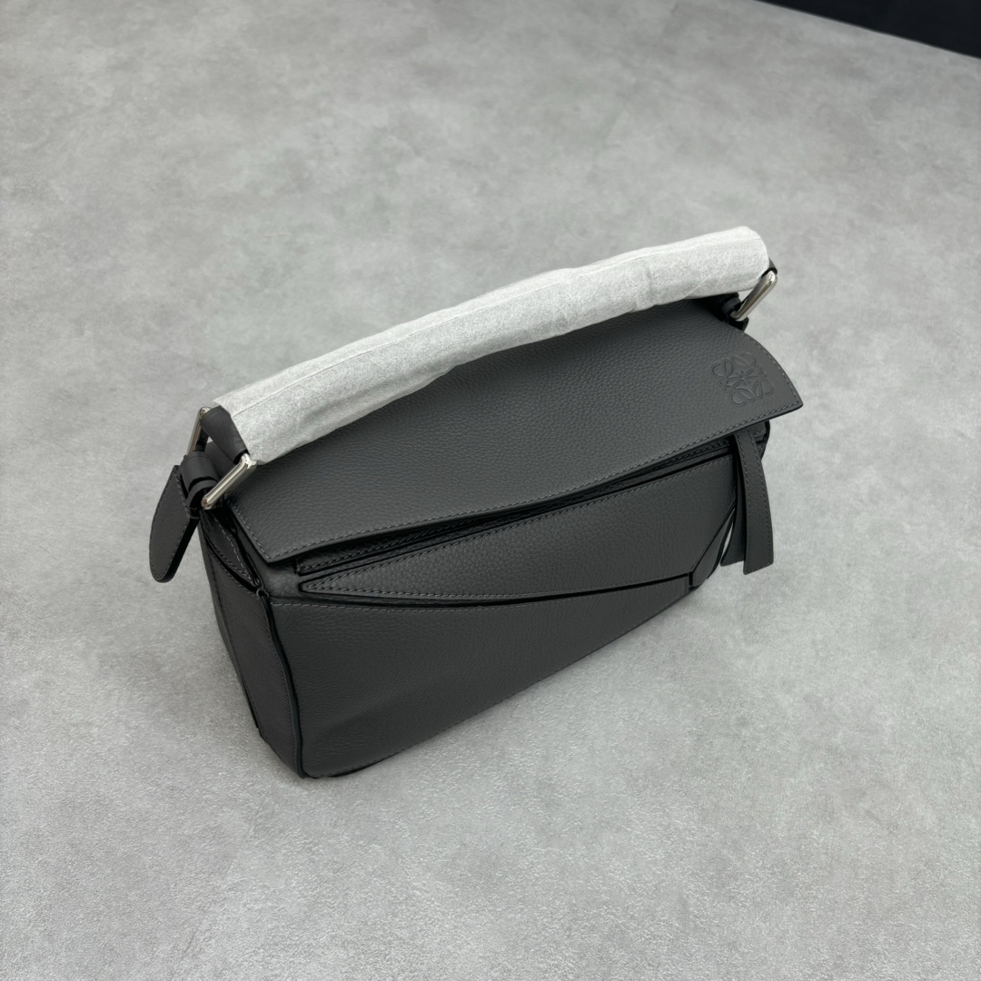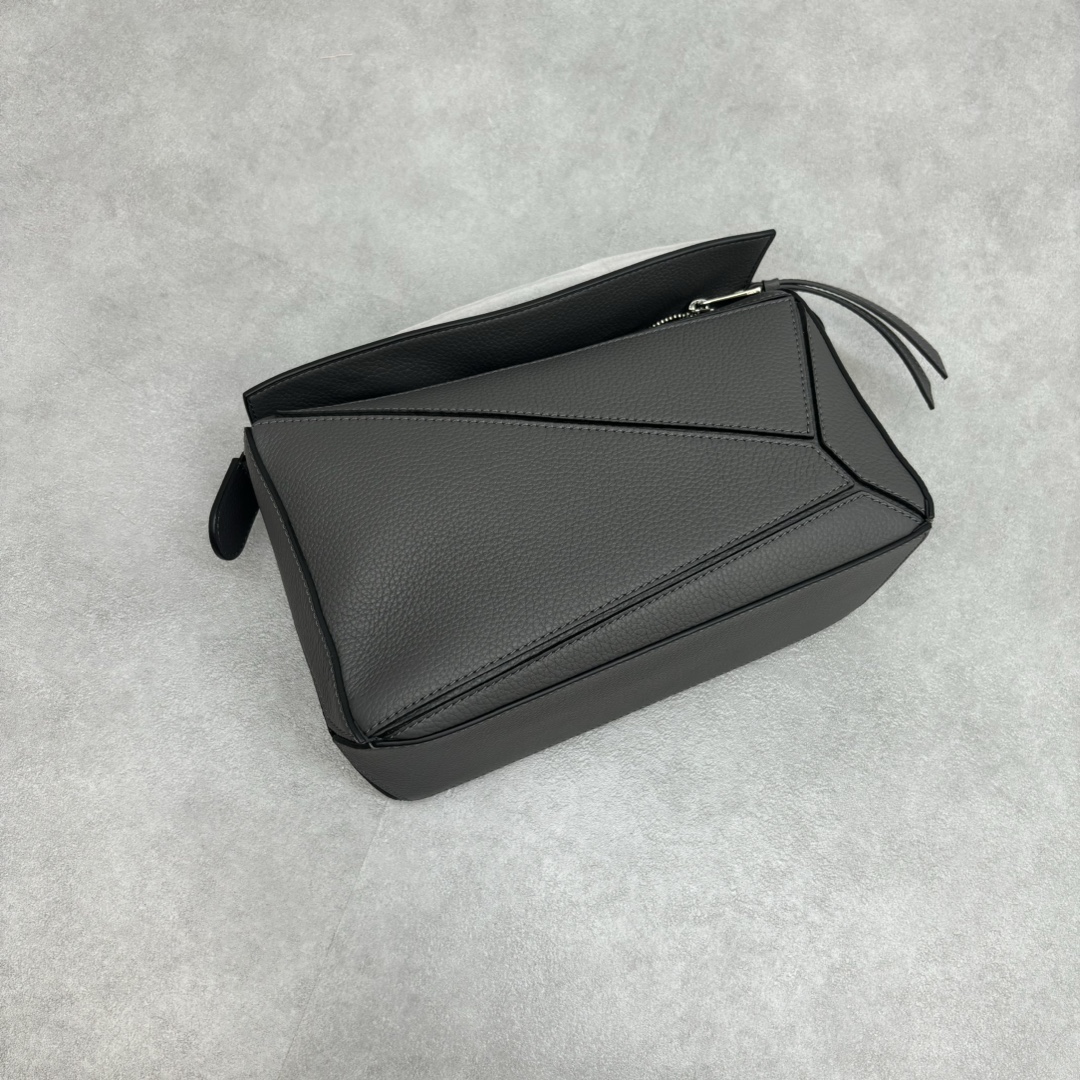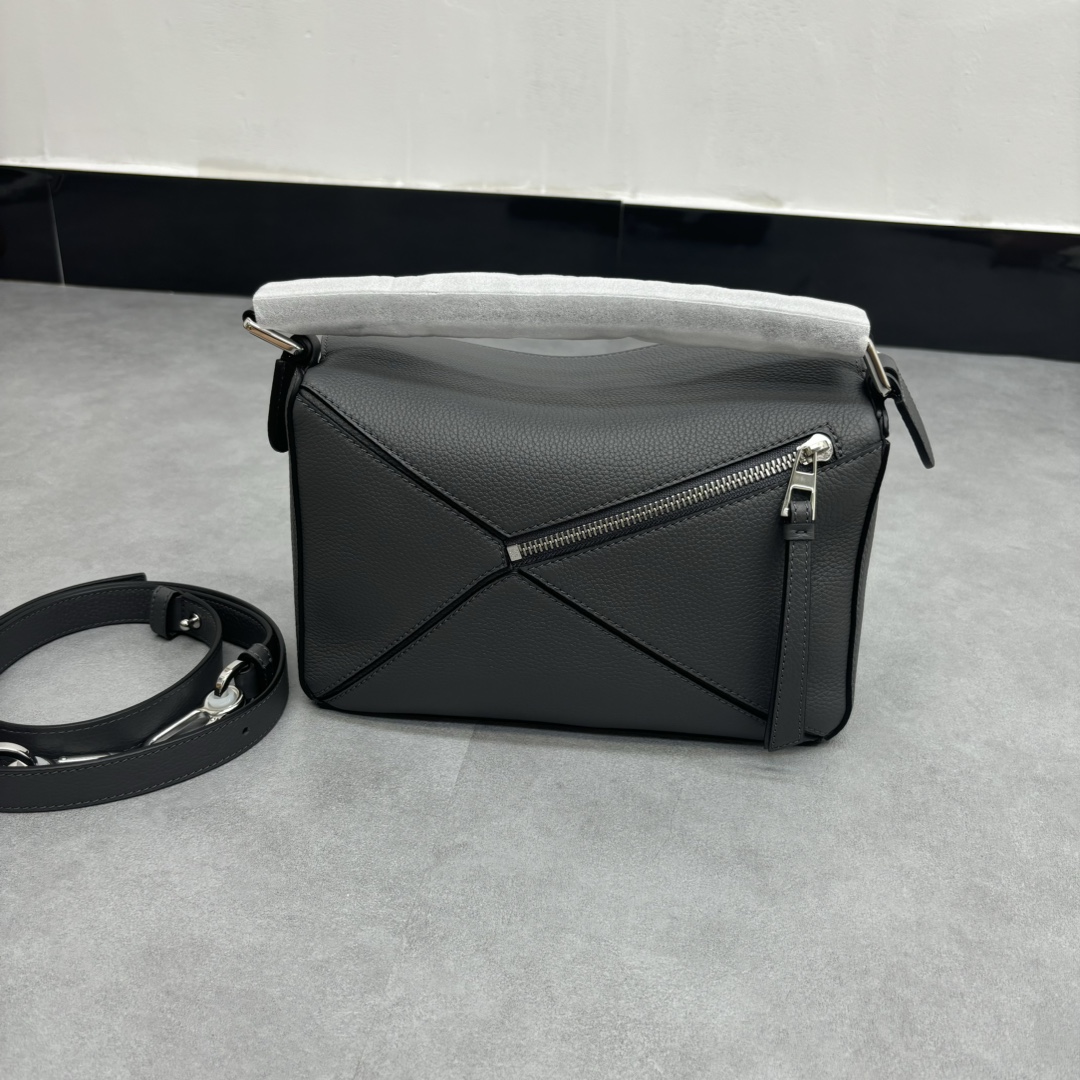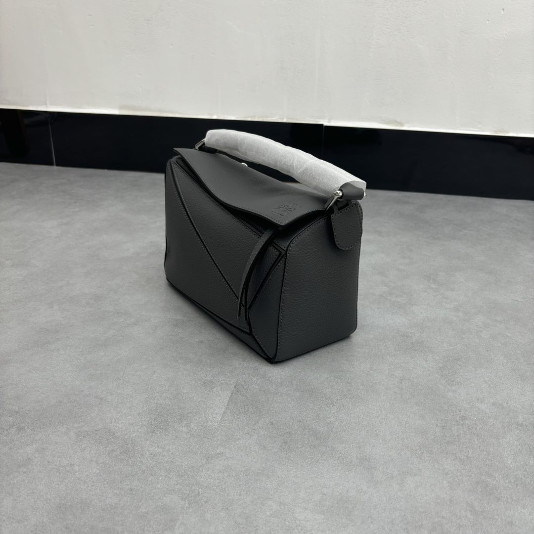 LOEWE Puzzle Small 2024 Spring/Summer Grained Calfskin Shoulder Crossbody Bag – Dark Gray
