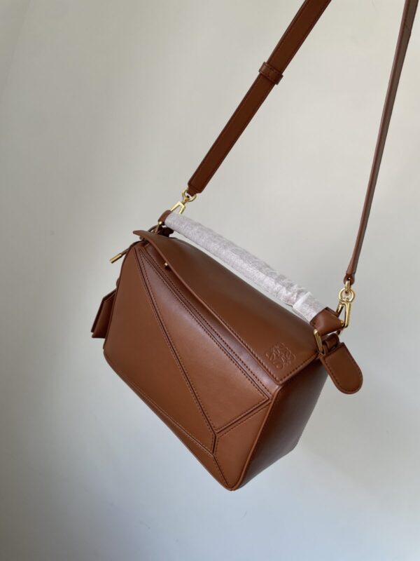 LOEWE Puzzle Small Lambskin Bag made from soft lambskin with geometric design and adjustable strap. Dimensions: 24×10.5×16.5cm.