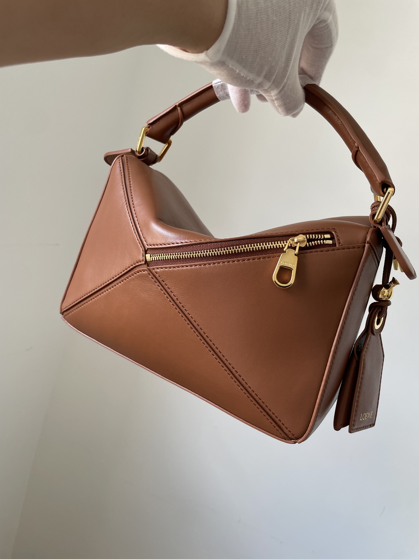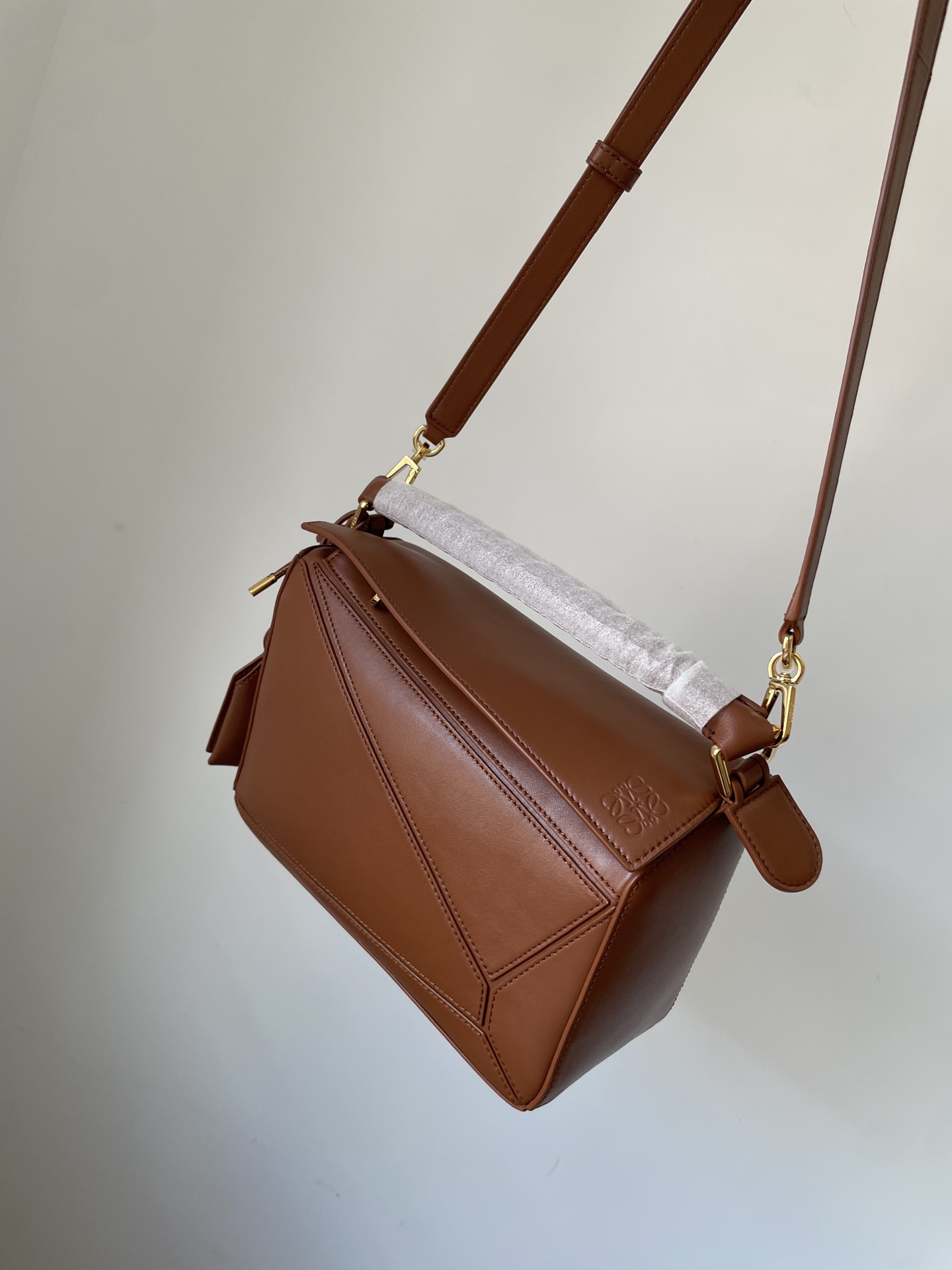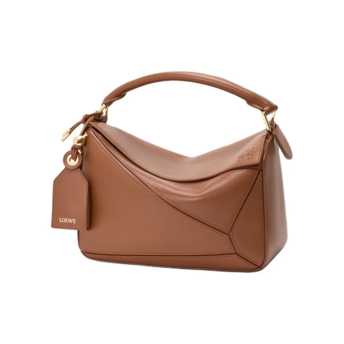 LOEWE Puzzle Small Geometric Shoulder Crossbody Bag in Lambskin – Brown