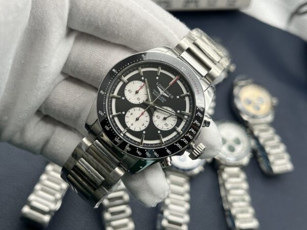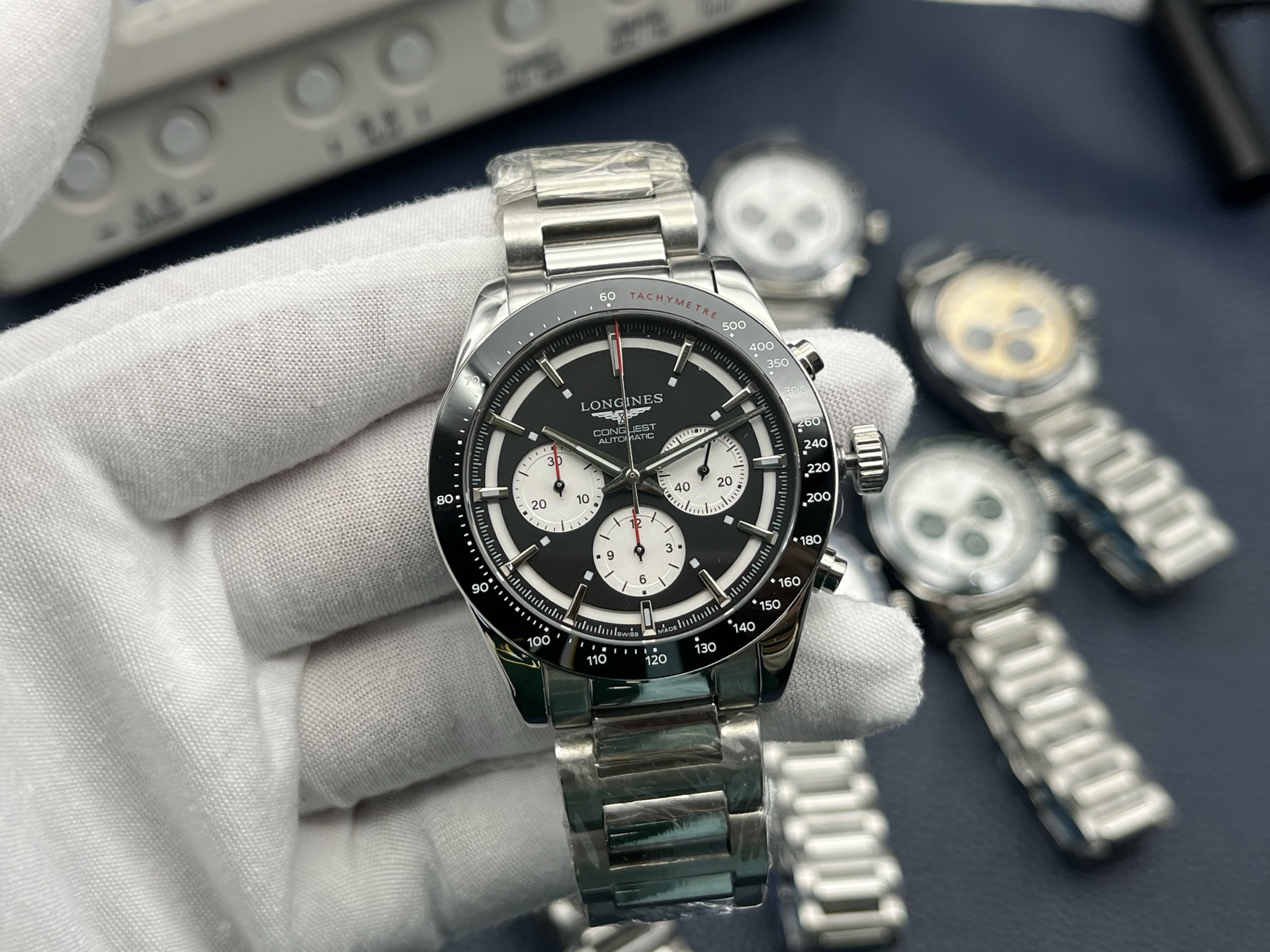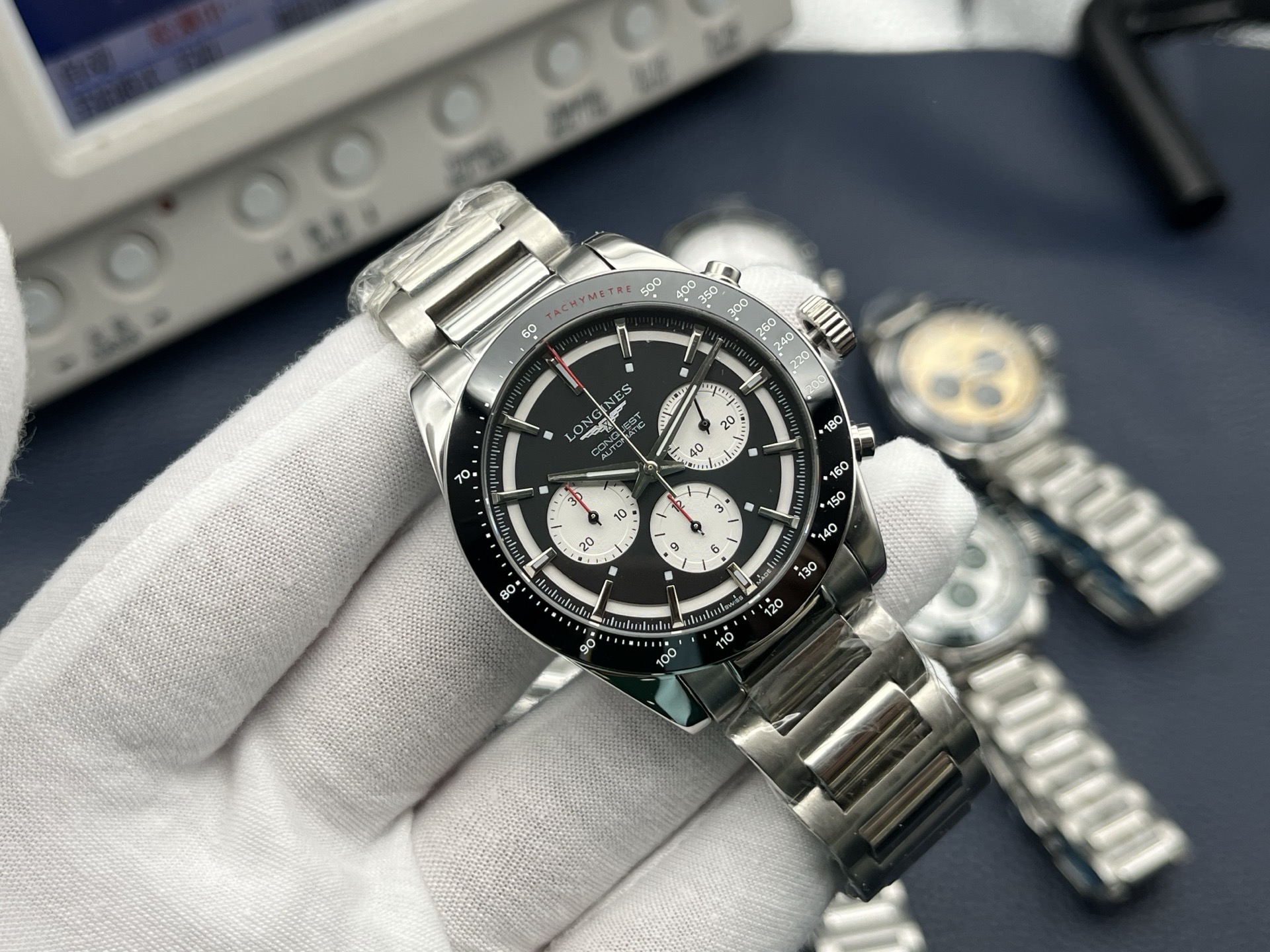 **Movement:** Automatic Longines Caliber L398.5 with chronograph function and 59-hour power reserve.