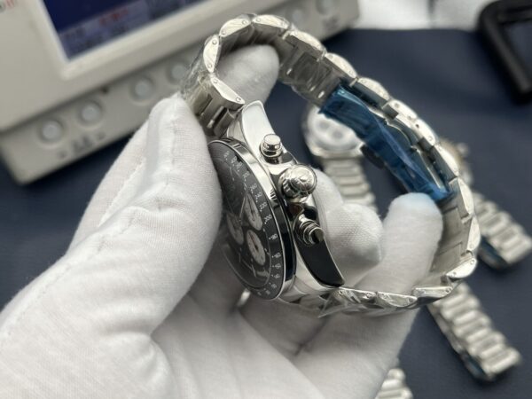 **Dial:** Black dial with luminous hands, indices, and three chronograph sub-dials.