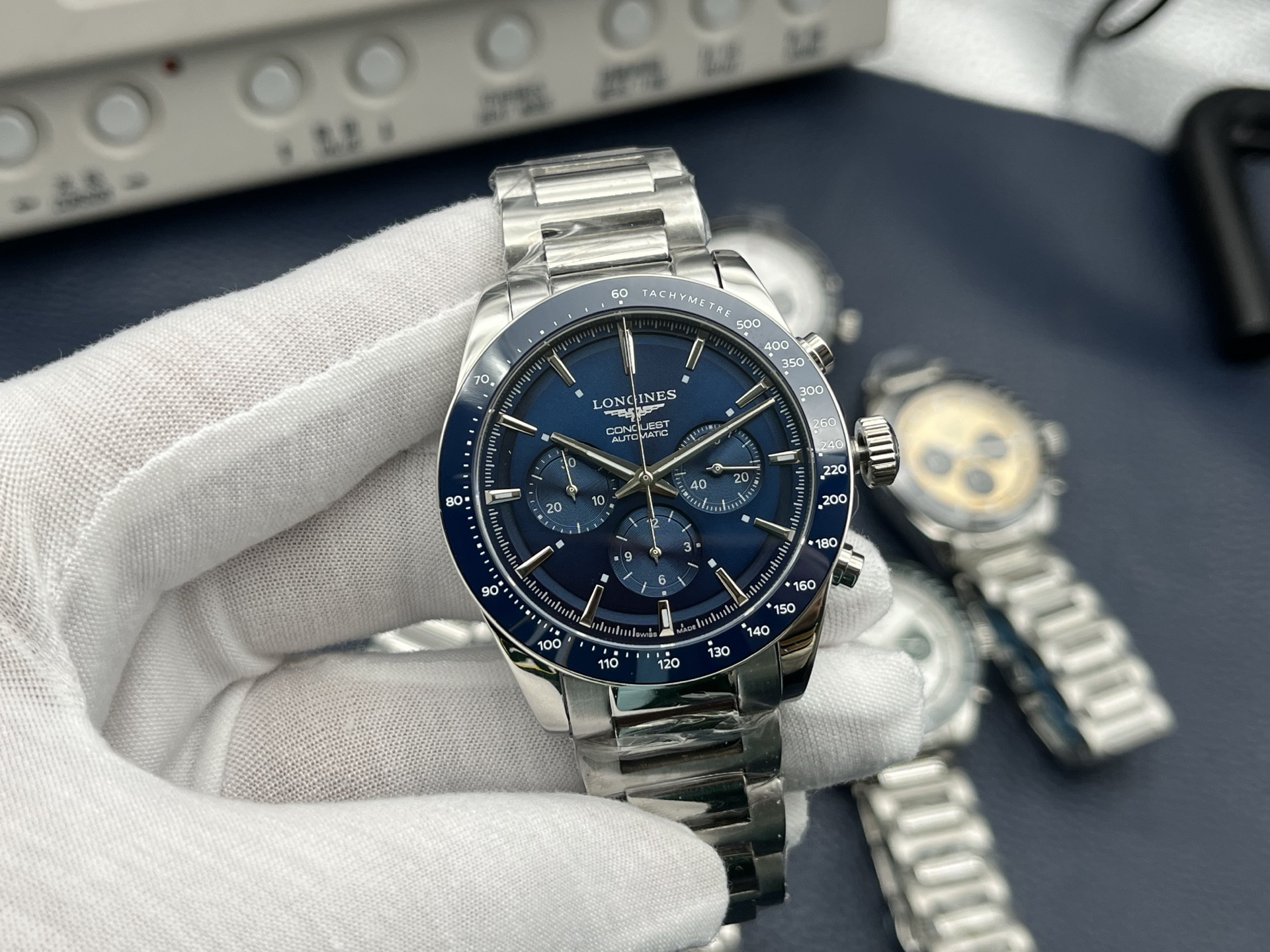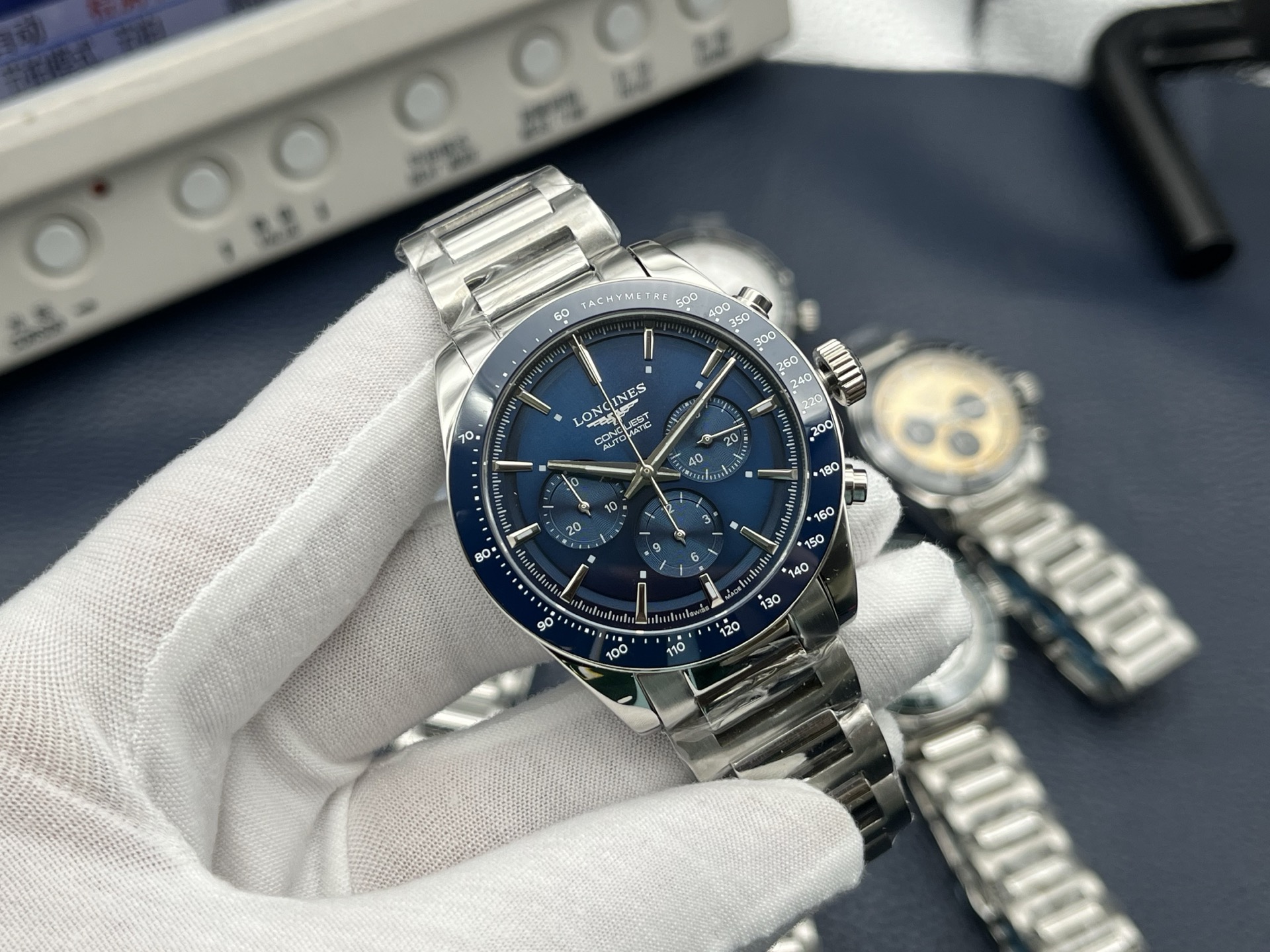 **Movement:** Automatic Longines Caliber L398.5 with chronograph function and 59-hour power reserve.