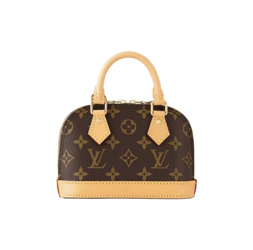 The Louis Vuitton Nano Alma bag miniaturizes the iconic Alma design. Made from Monogram canvas with leather trim, it includes a double zip closure, dual handles, and detachable strap. Measuring 12 x 8 x 18 cm, it carries small essentials in style.