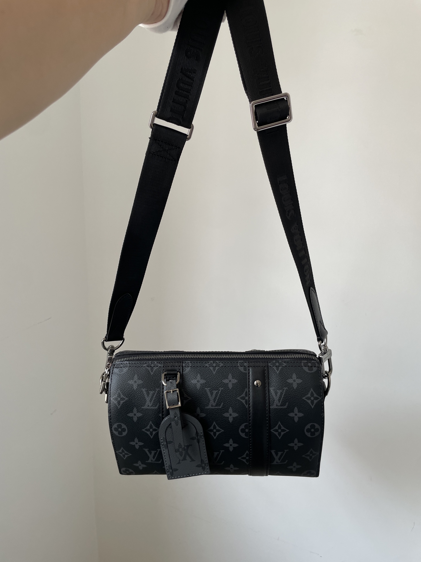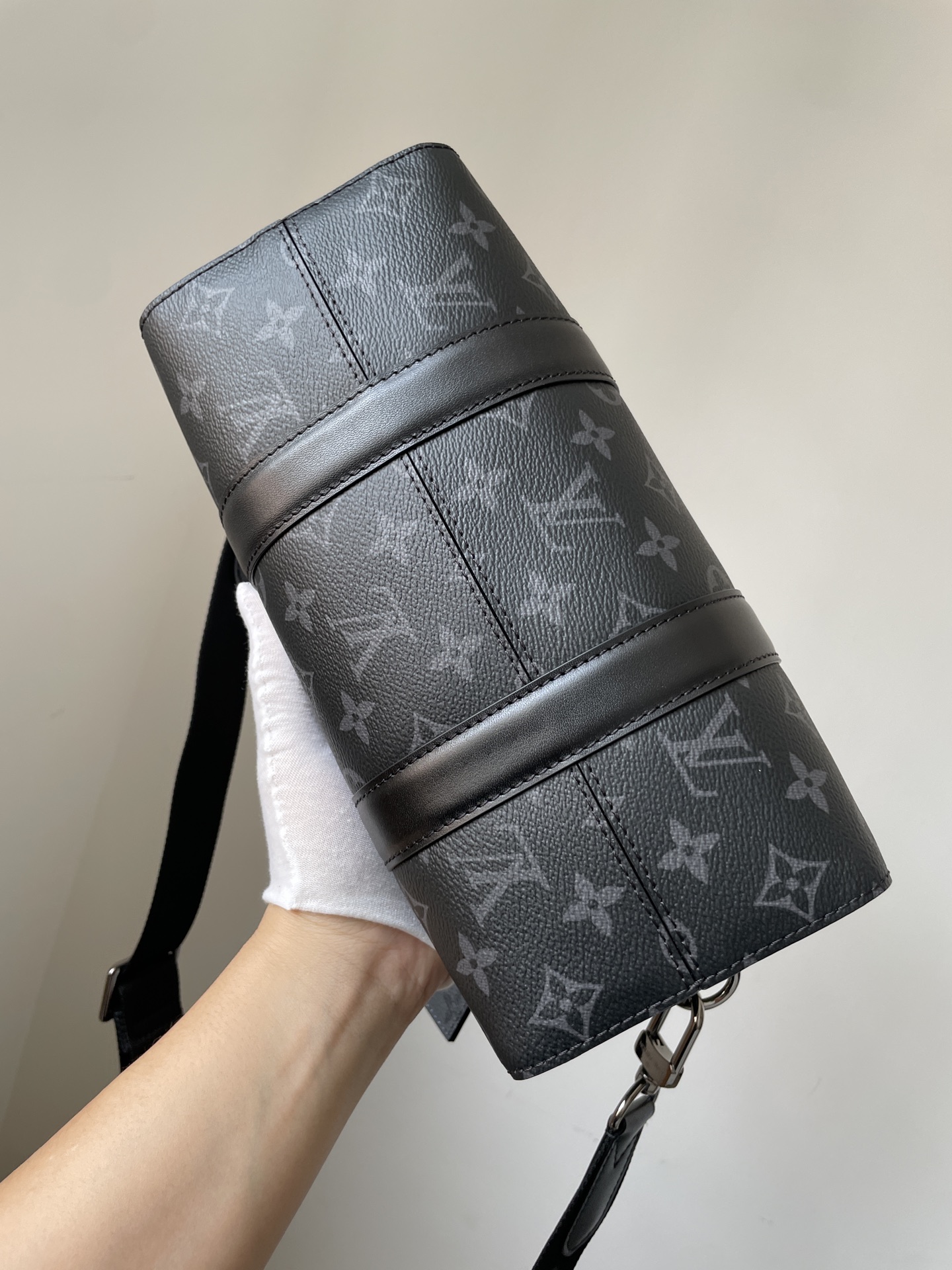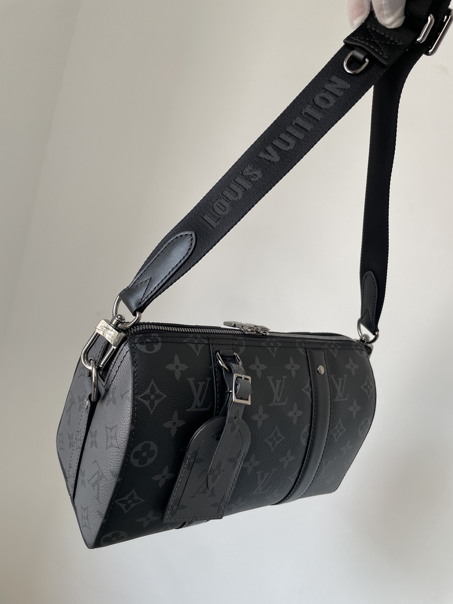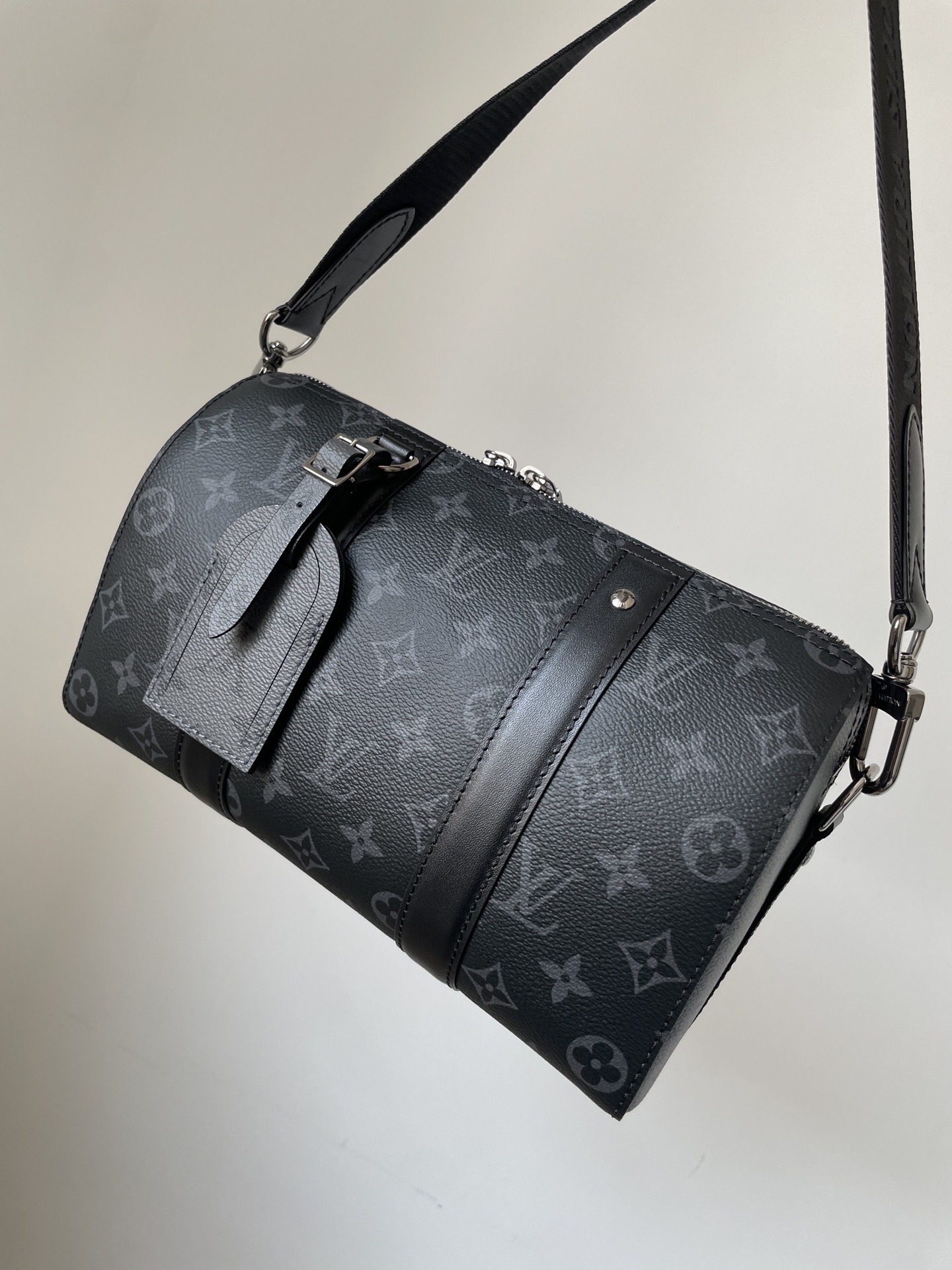 Louis Vuitton City Keepall bag in Monogram Eclipse canvas with reversible design.