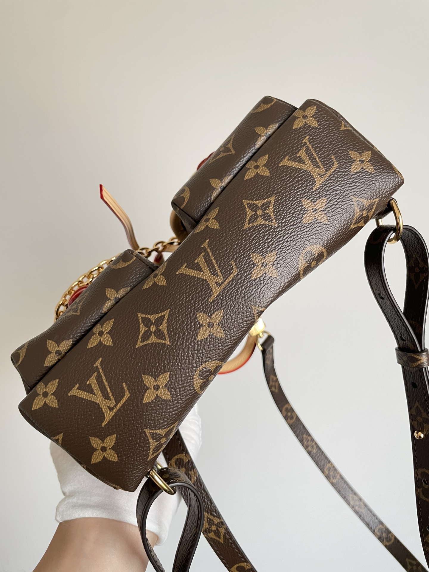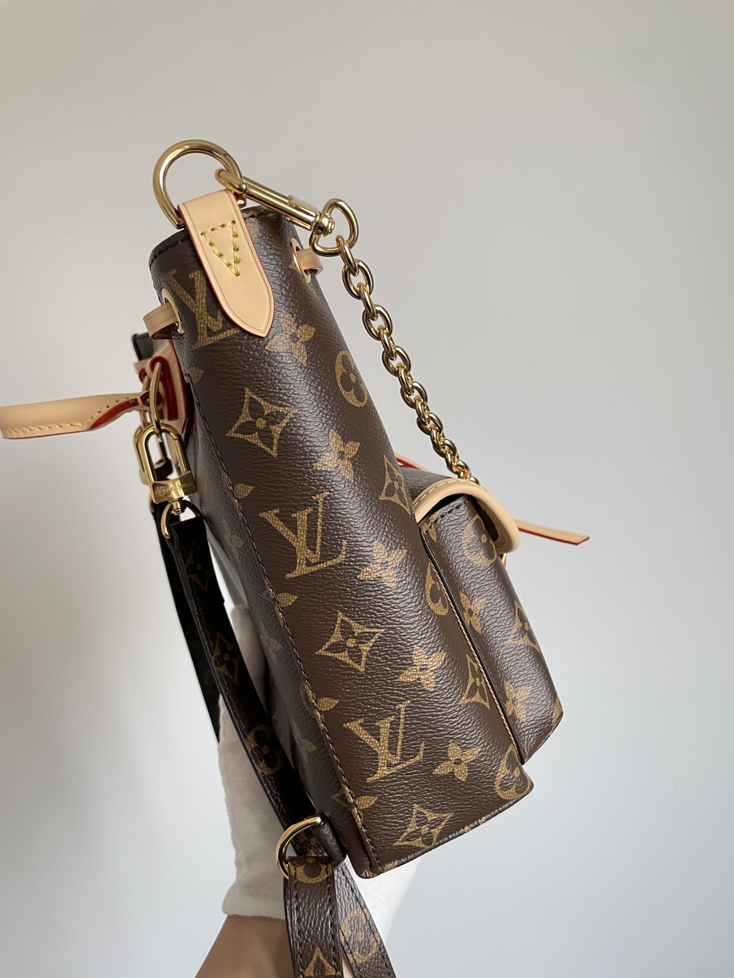 • Materials: Monogram coated canvas; leather trim; textile lining; gold-tone hardware