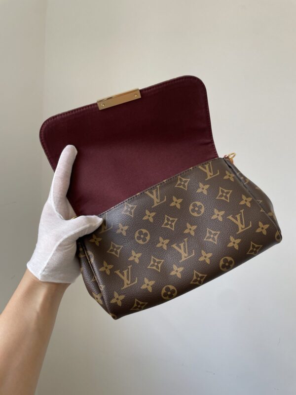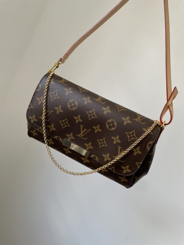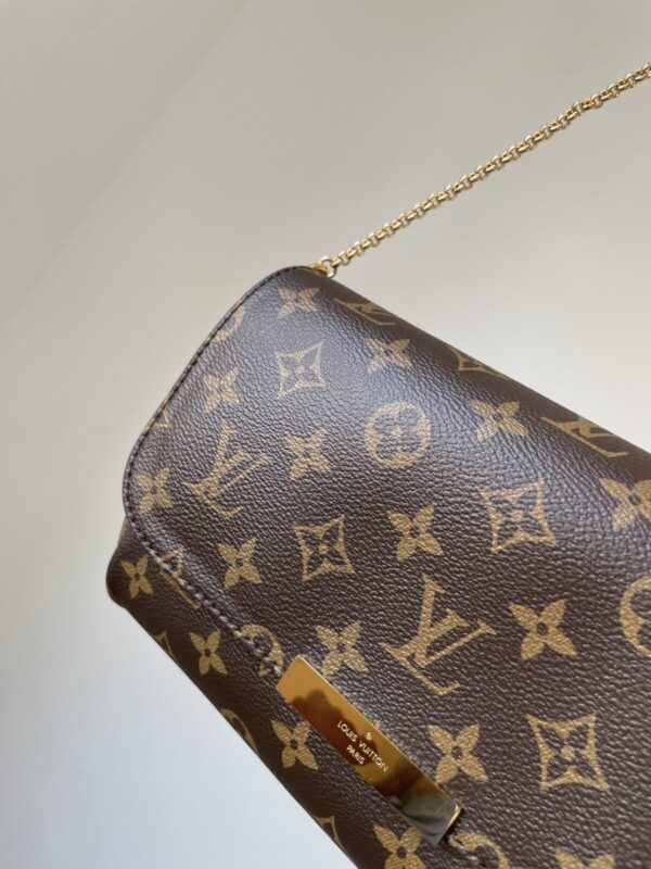 The Louis Vuitton Favorite (M40717) is a timeless shoulder and crossbody bag crafted from the iconic Monogram coated canvas. With its sleek flap closure and polished golden chain strap, this piece embodies both elegance and versatility.