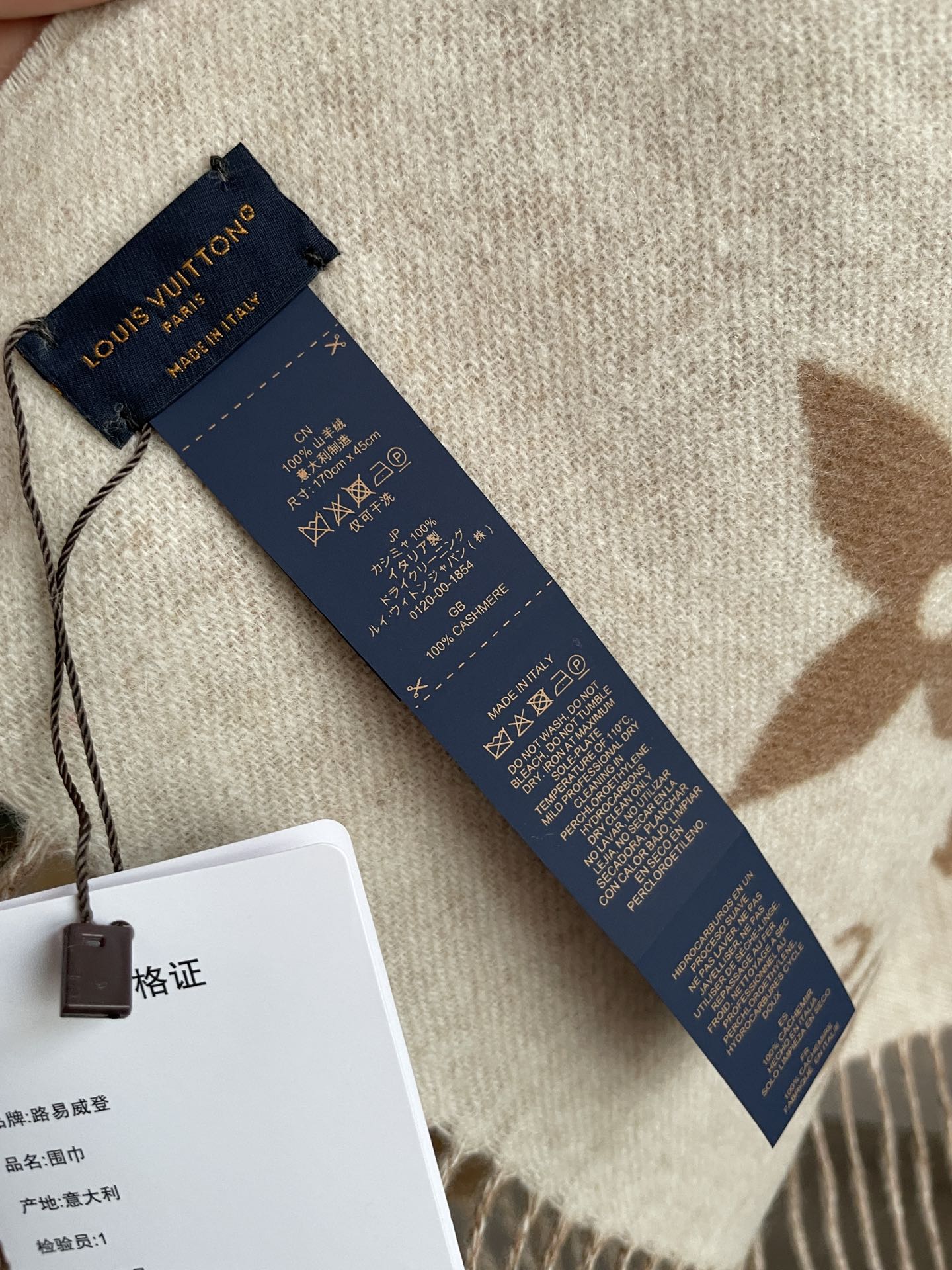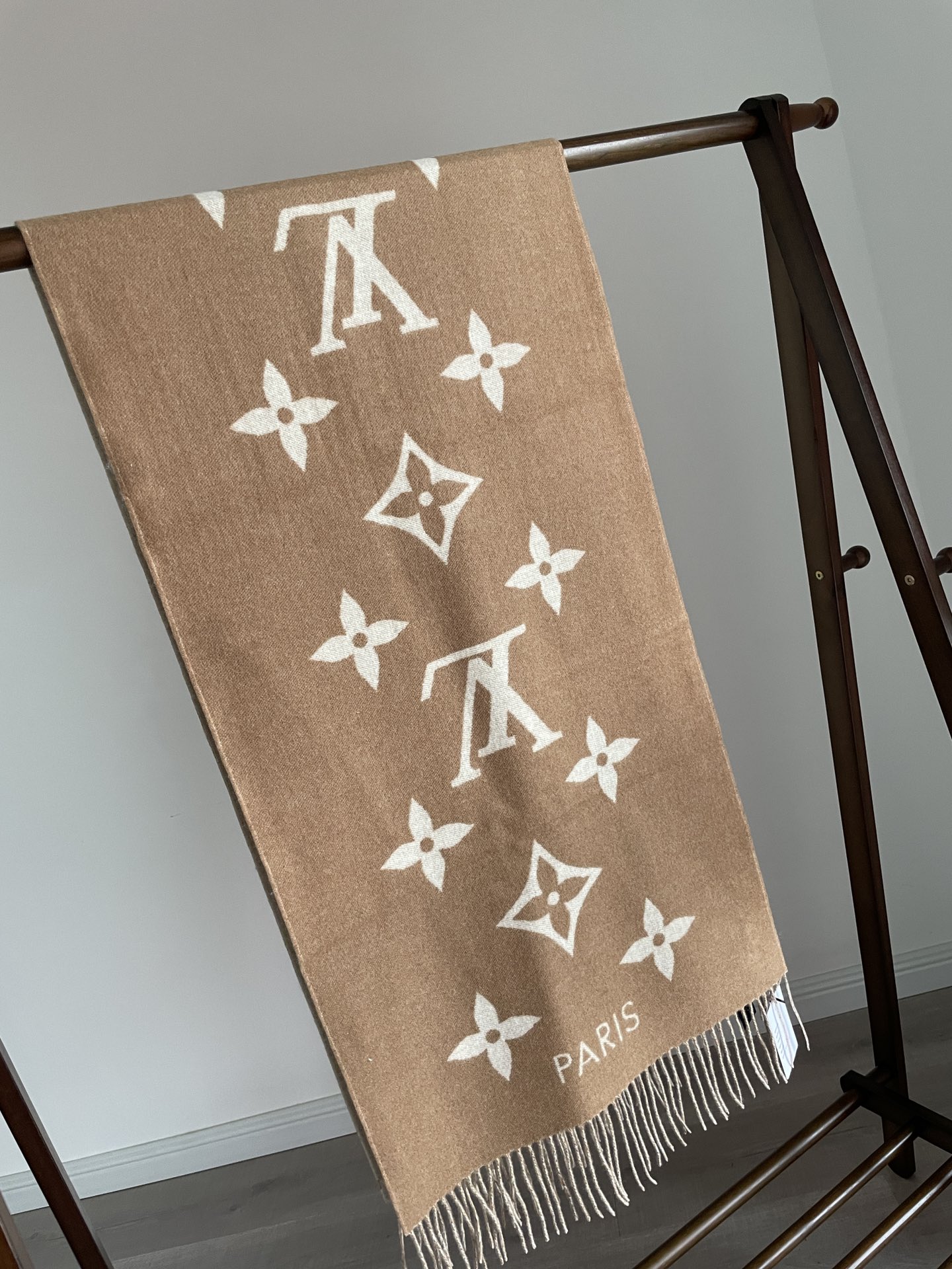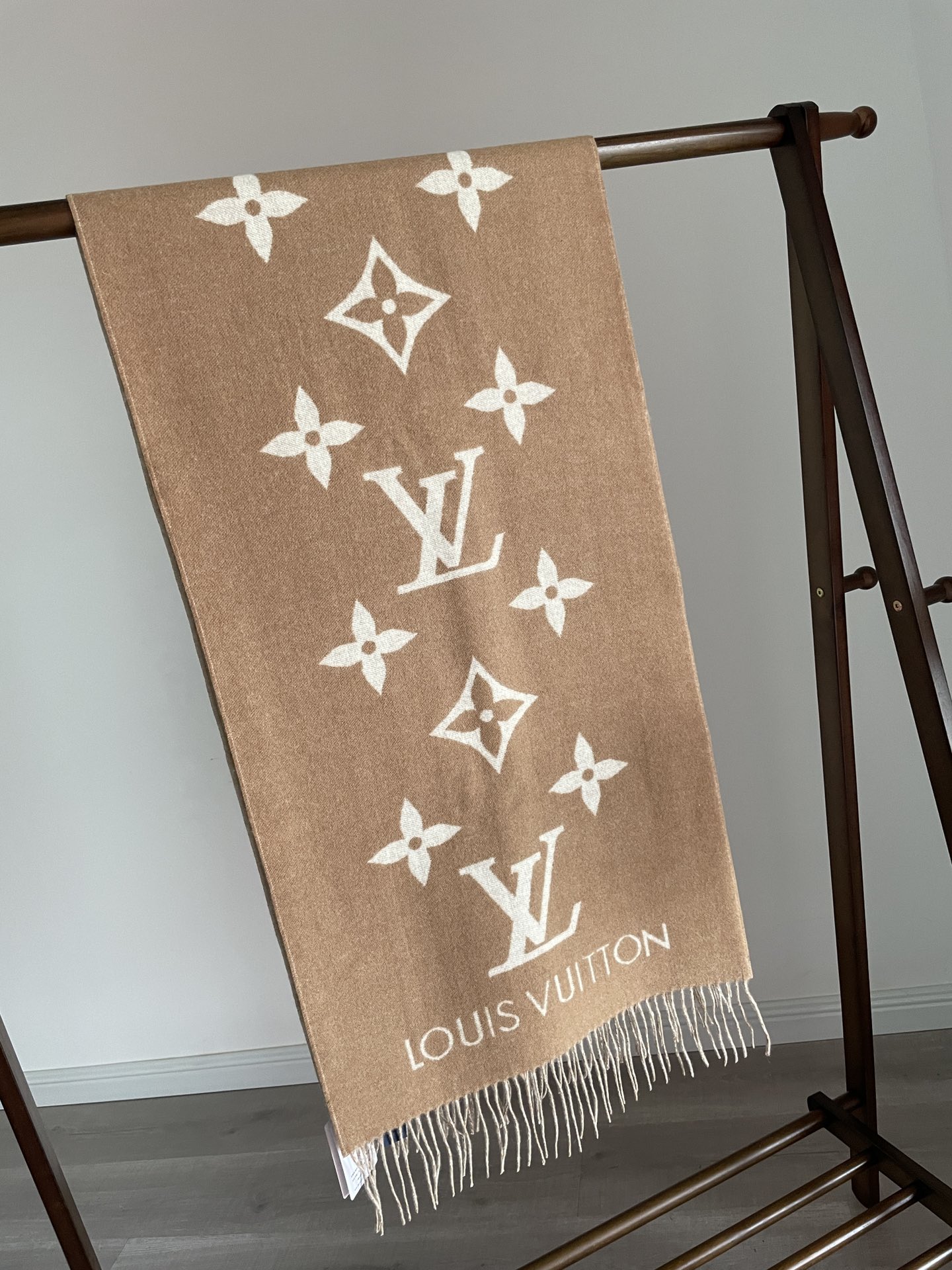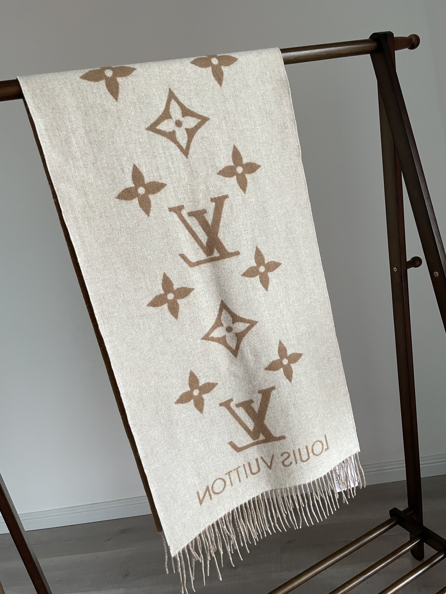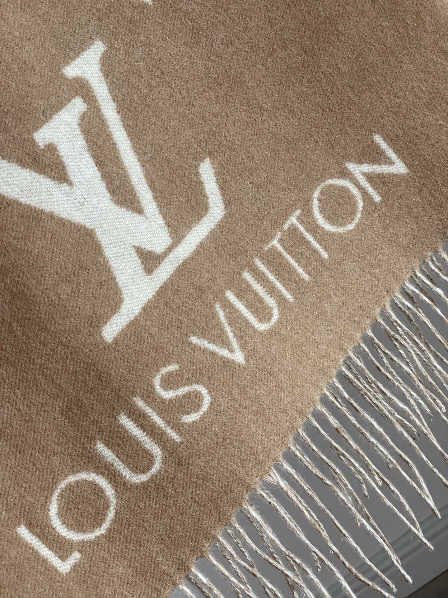 Louis Vuitton Jacquard Woven Cashmere Tassel Scarf Milk Tea