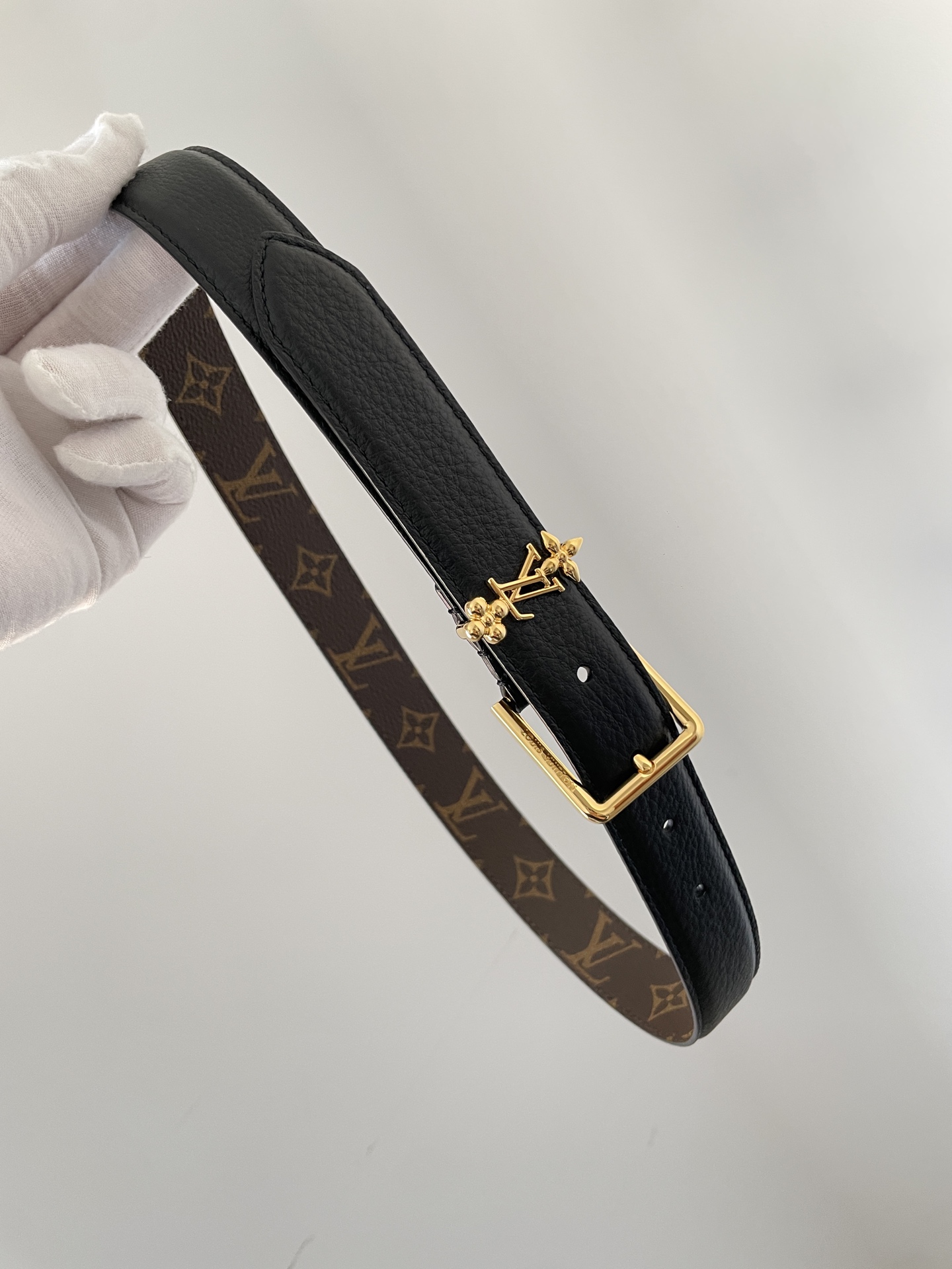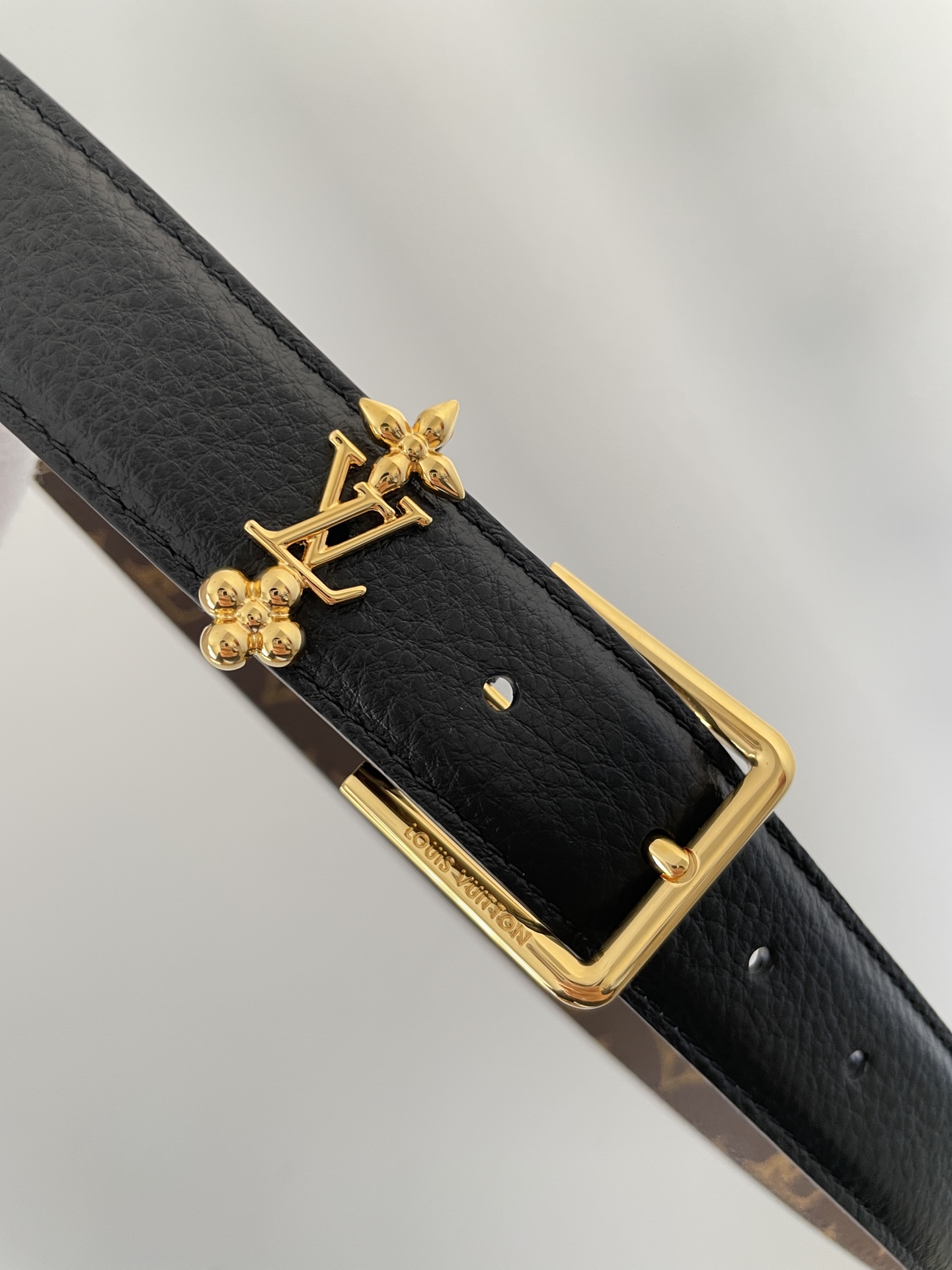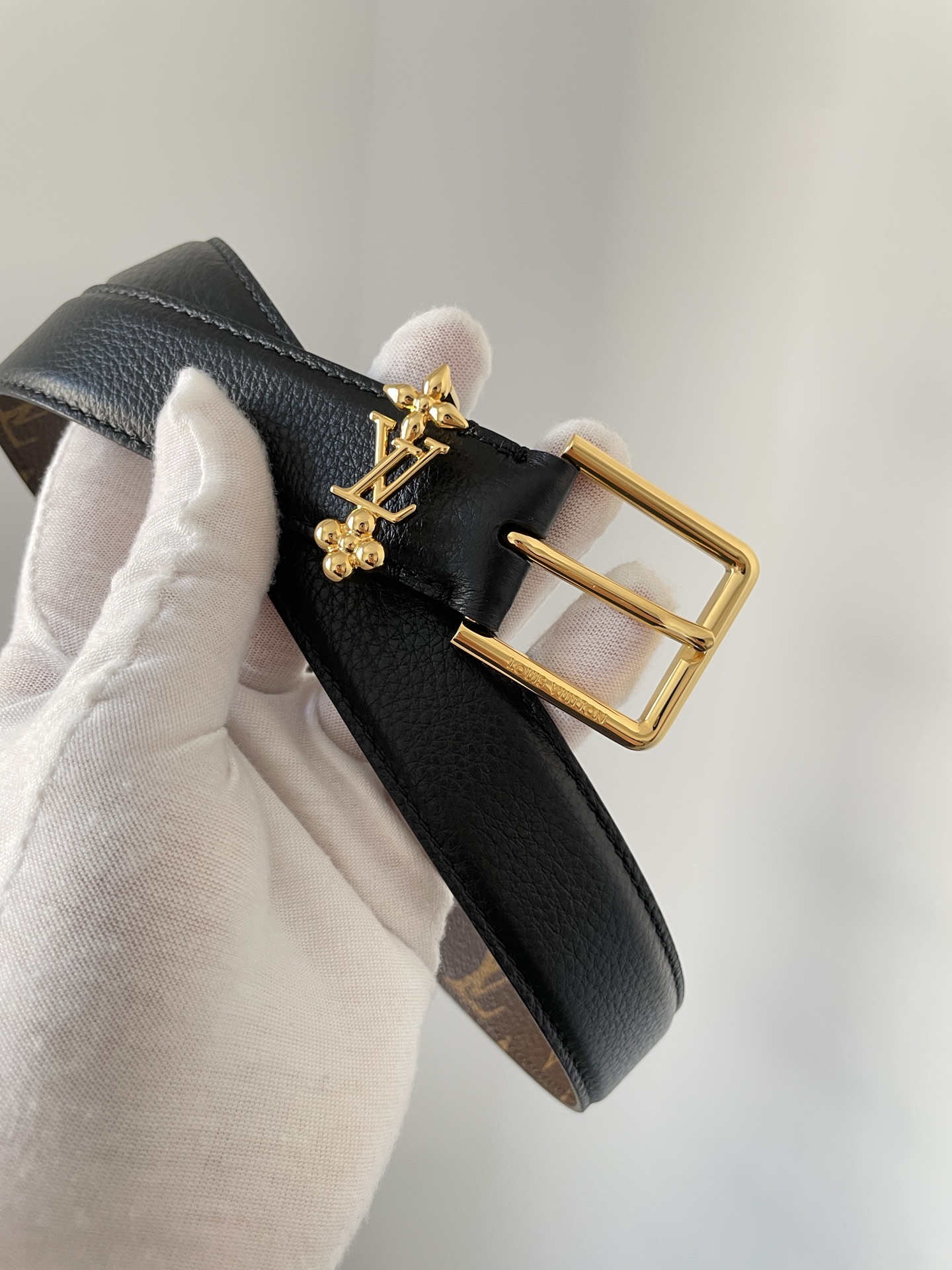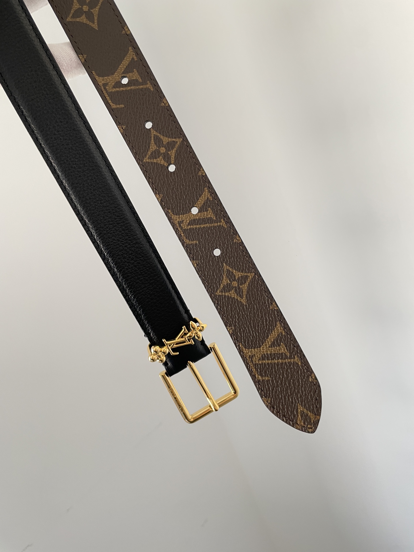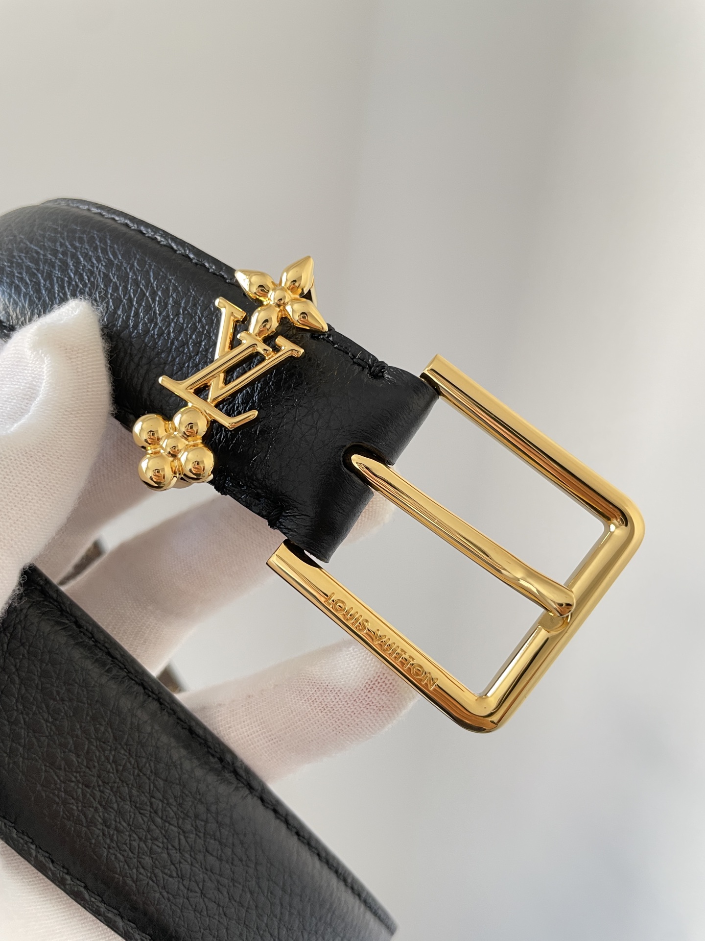 Crafted from premium leather with metallic logo buckle detailing, this Louis Vuitton belt (3cm width) exudes timeless style. Designed for women, it complements both casual and formal outfits effortlessly.