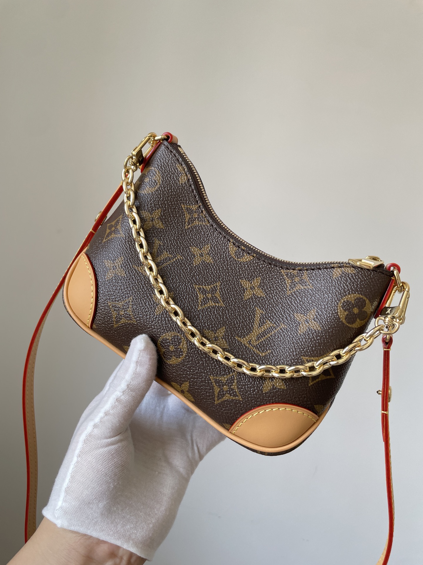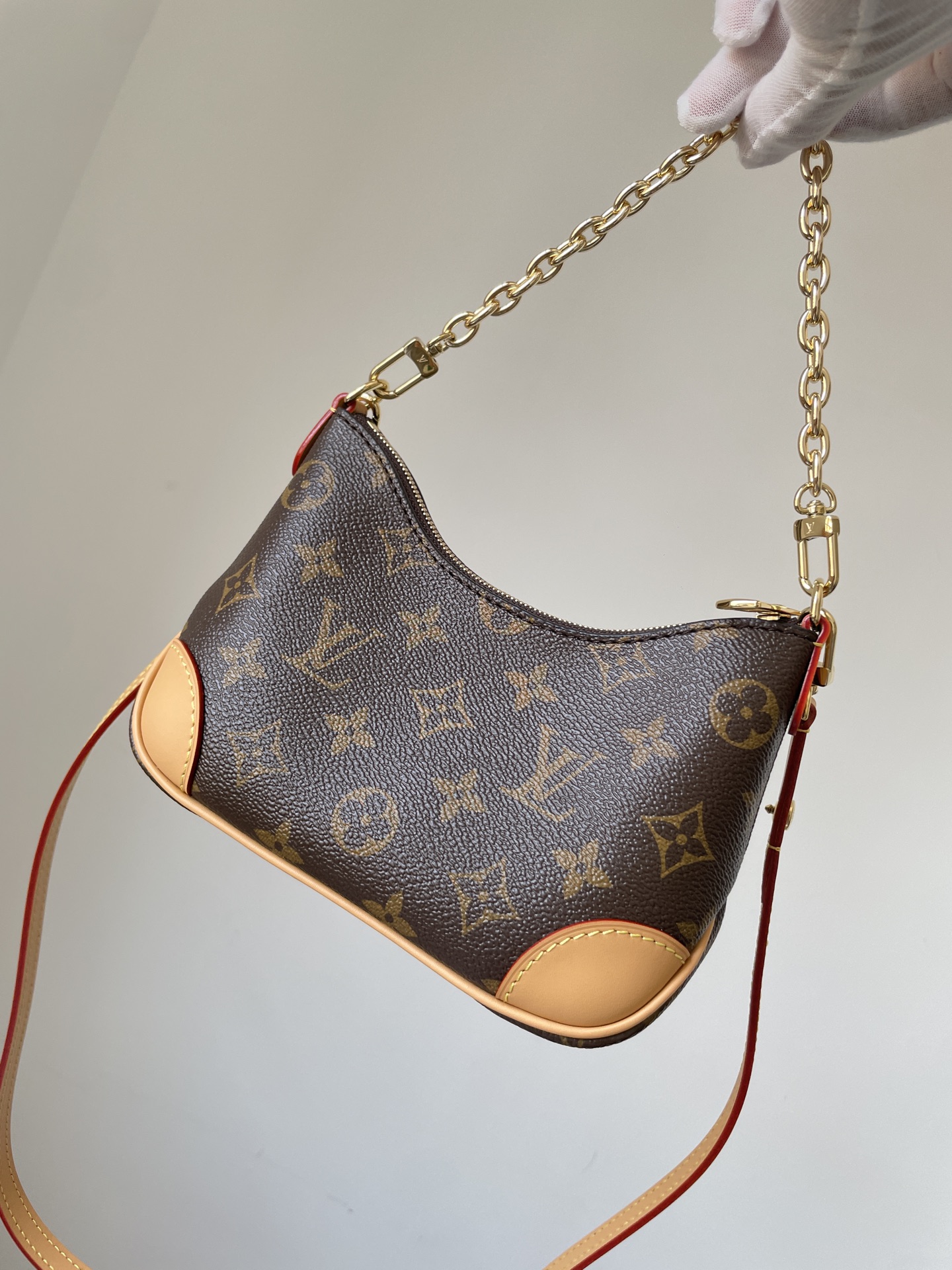 Nano Boulogne in Monogram canvas with compact silhouette, zipper closure, detachable strap, and removable chain.
