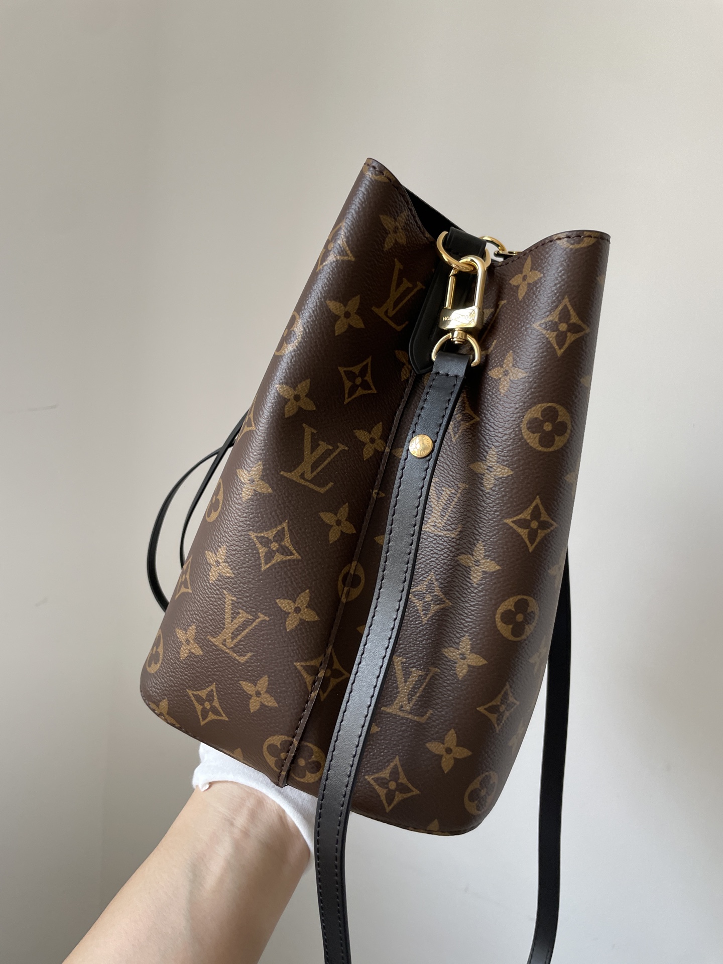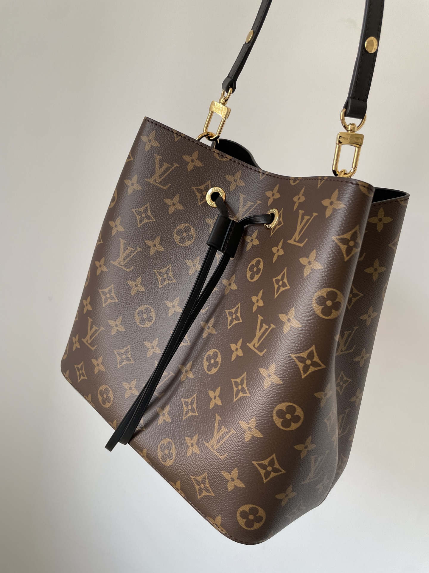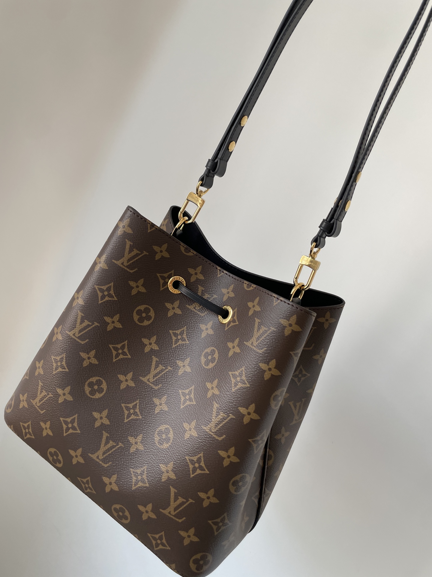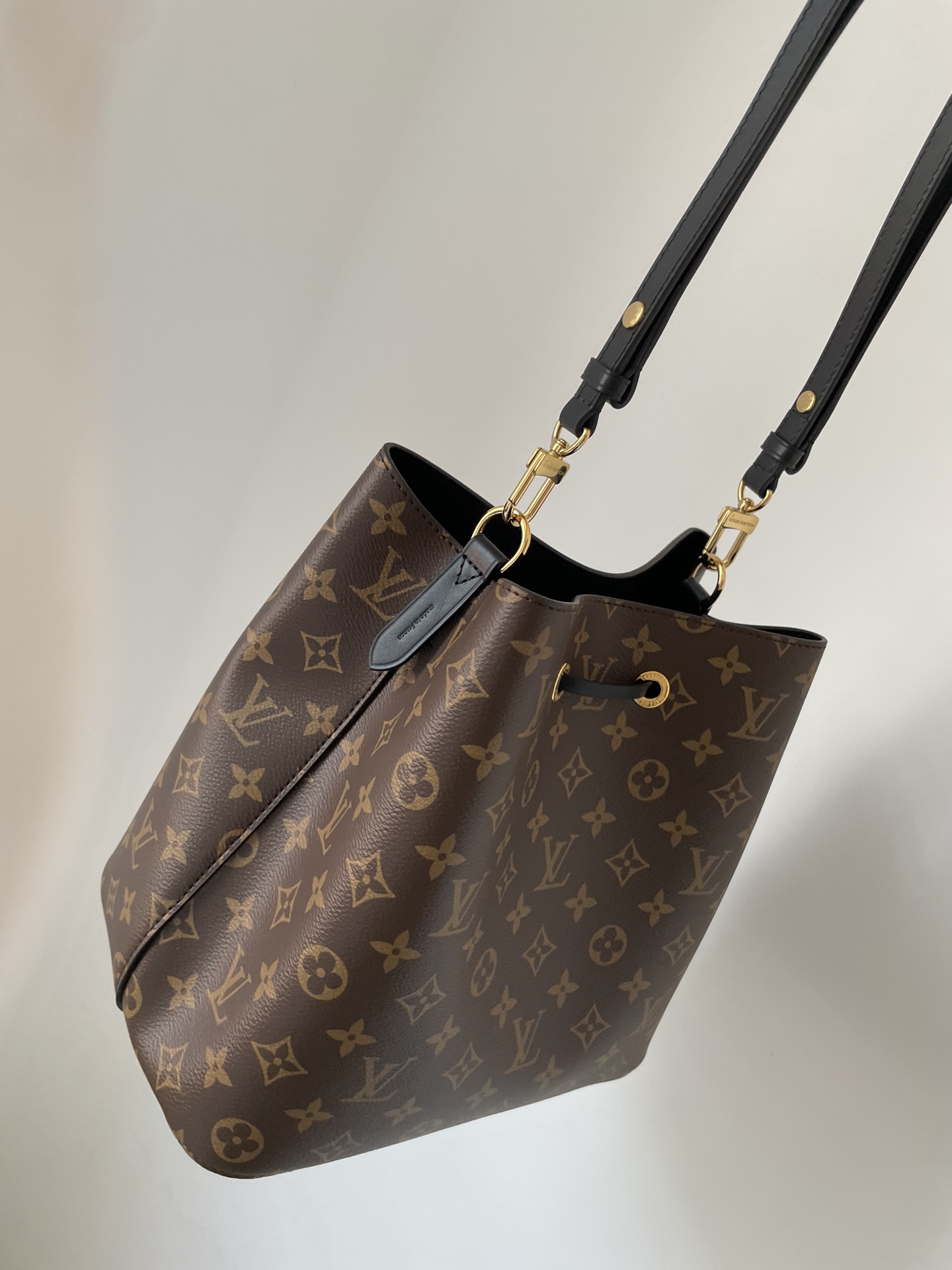 Inspired by the 1932 champagne carrier, the NéoNoé MM (M44020) updates an archival concept for today. Monogram coated canvas and cowhide leather trim frame a sleek bucket silhouette with bonded lining and gleaming hardware.
