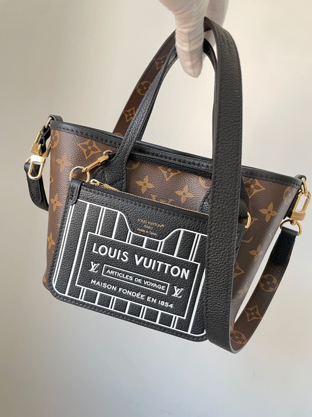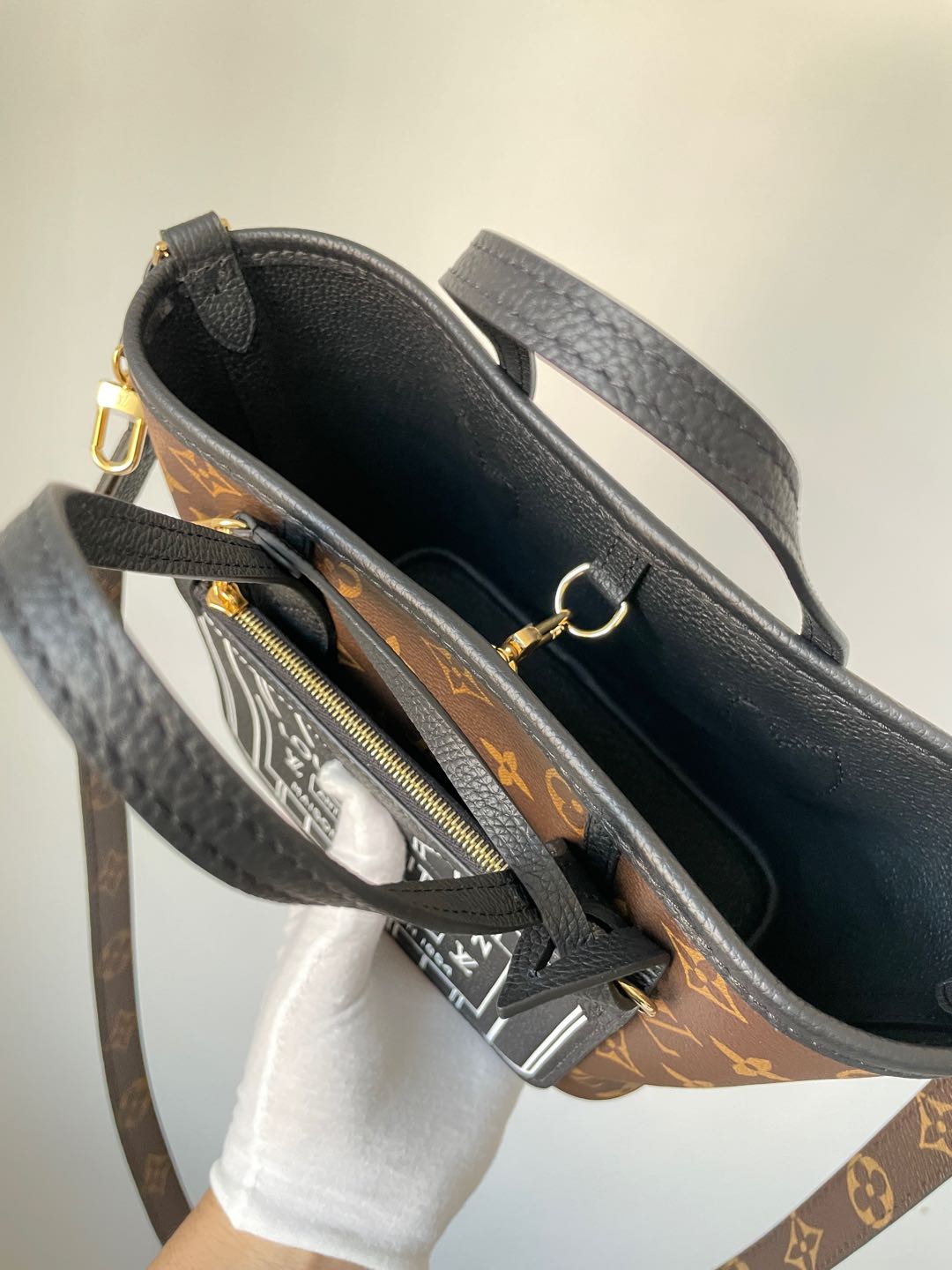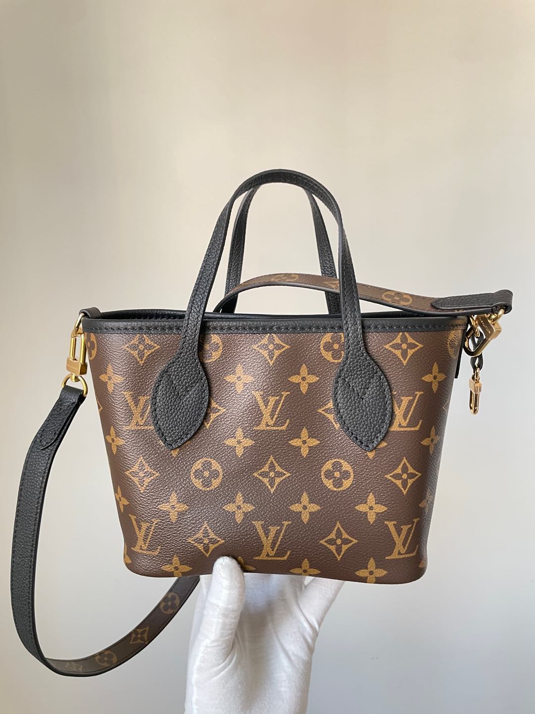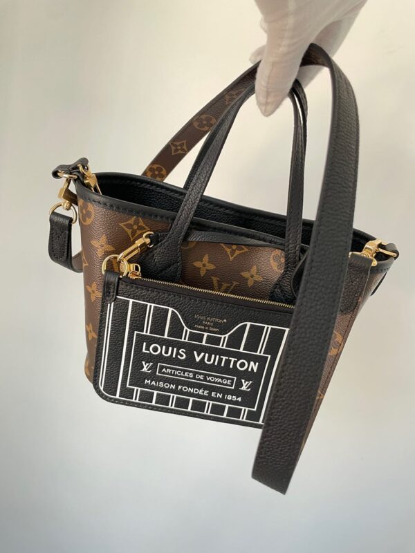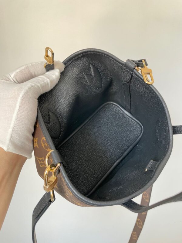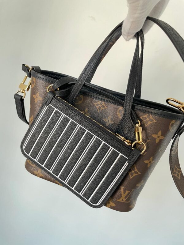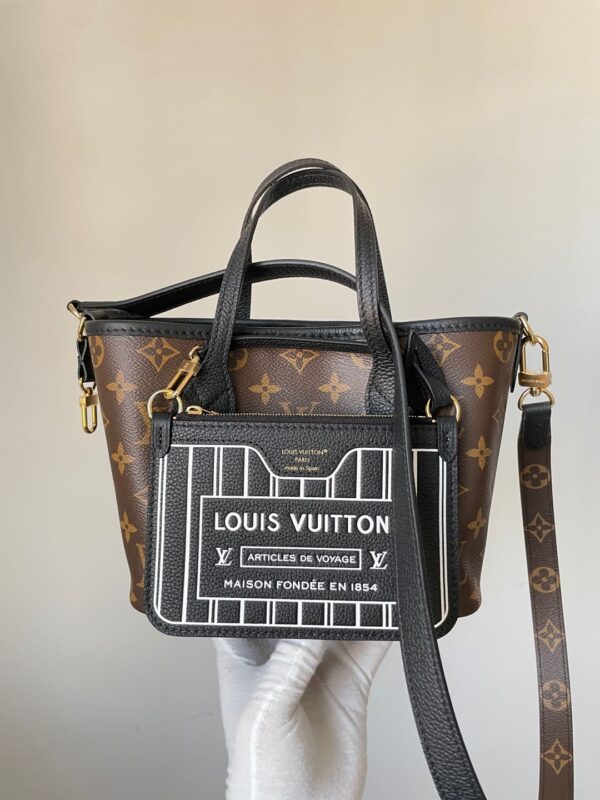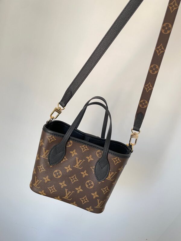 A modern reinvention of the house icon, the Neverfull Inside Out BB (M12099) features a reversible build that flips between sleek leather and Monogram-accented detailing for two distinct looks in one compact tote.