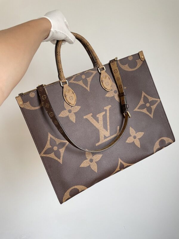 • Materials: Giant Monogram & Monogram Reverse coated canvas; cowhide trim; twill lining; gold-tone hardware