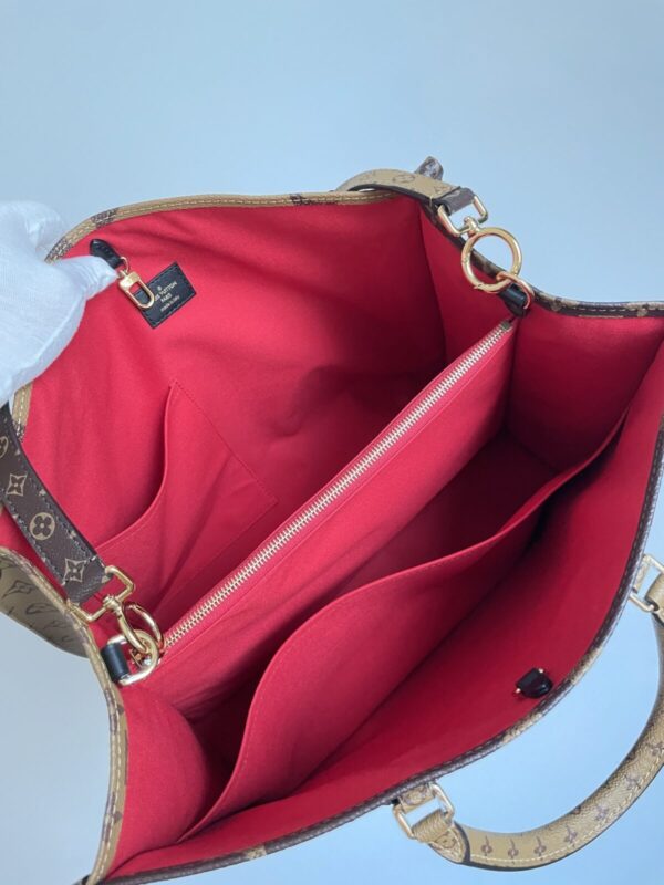 Designed for modern travel, the OnTheGo Voyage Tote (M46823) is crafted from Giant Monogram and Monogram Reverse coated canvas with natural cowhide trim. Its spacious architecture includes multiple interior pockets and a large removable zip pouch that converts into a waist bag for hands-free convenience.