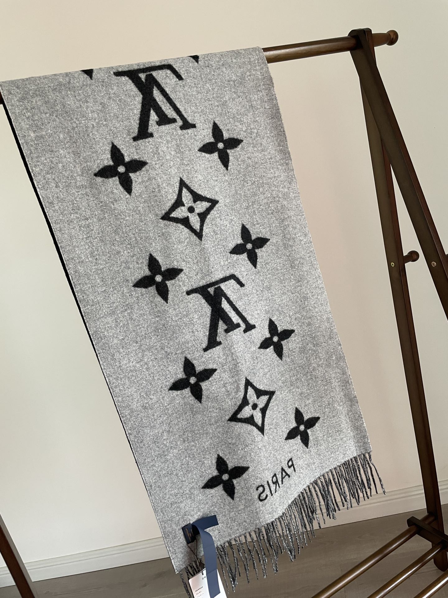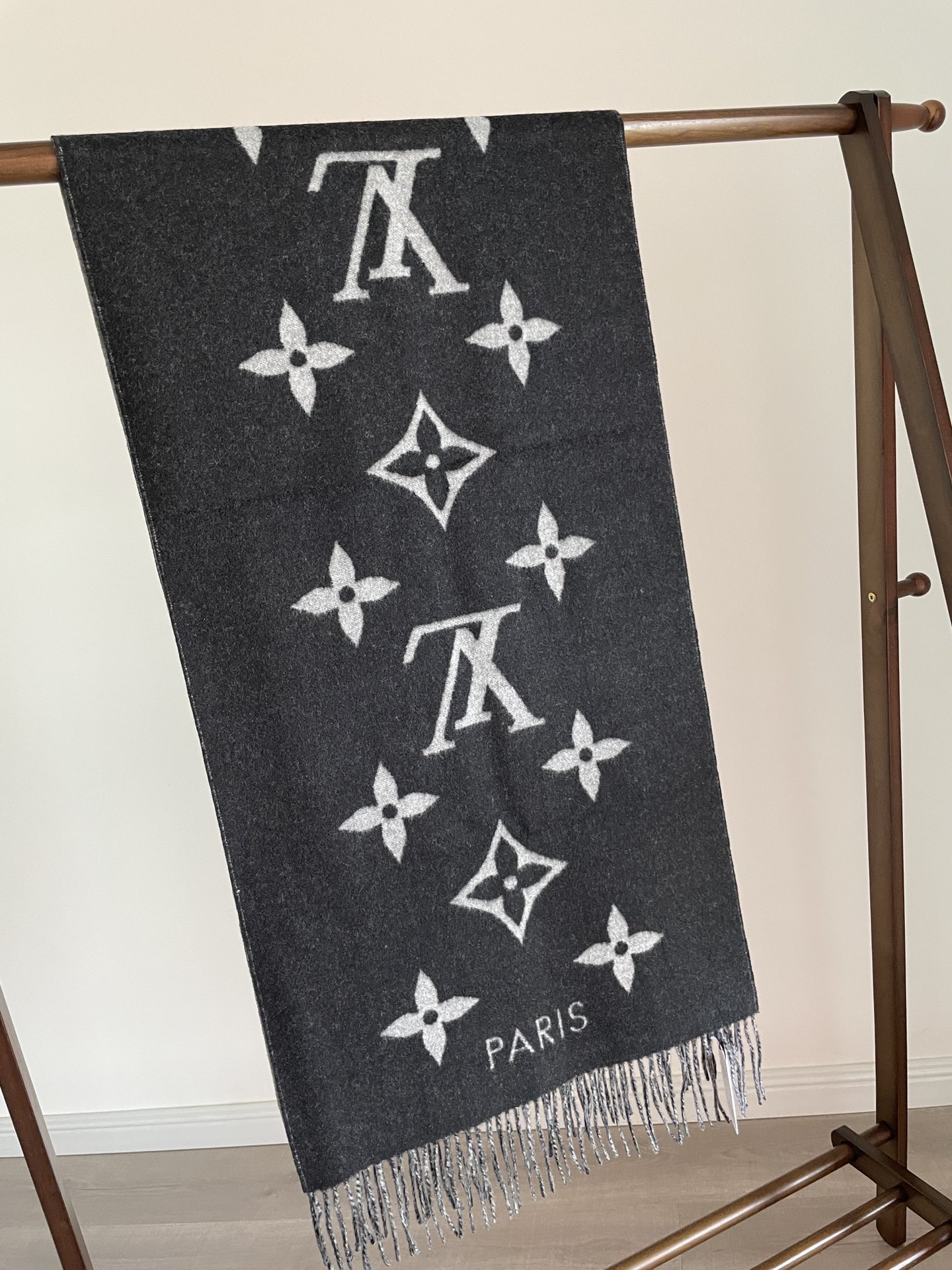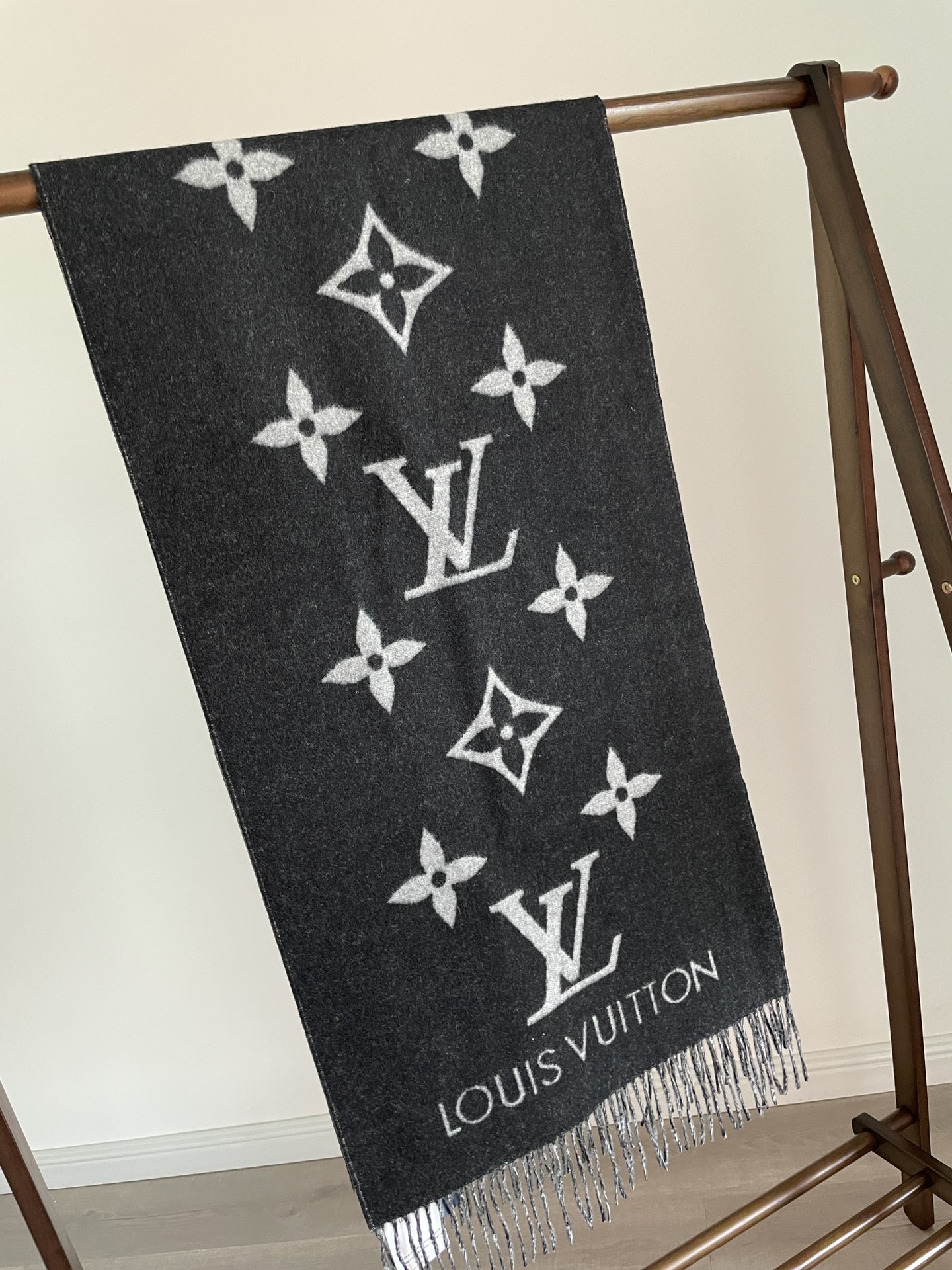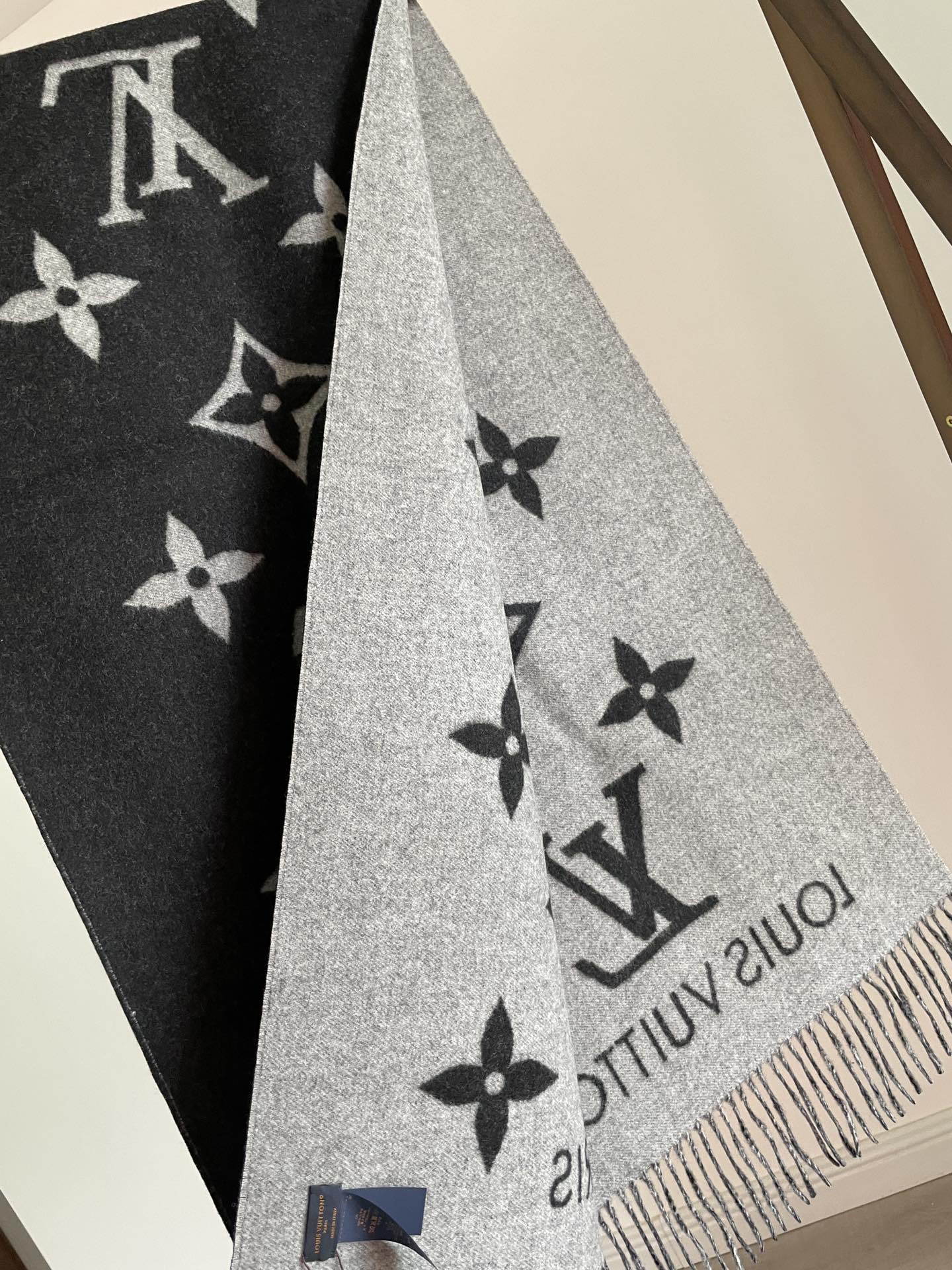 Louis Vuitton Reykjavik Double-Sided Cashmere Tassel Scarf Grey-Black
