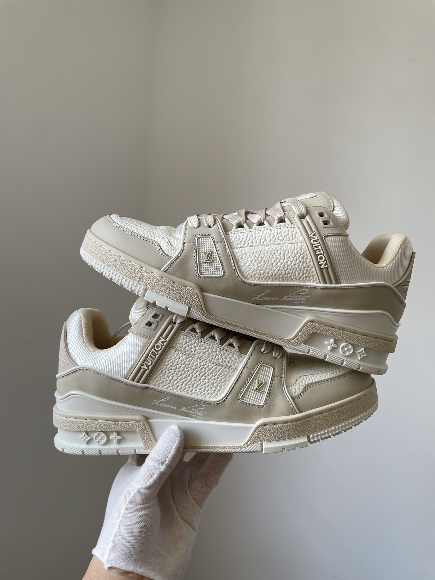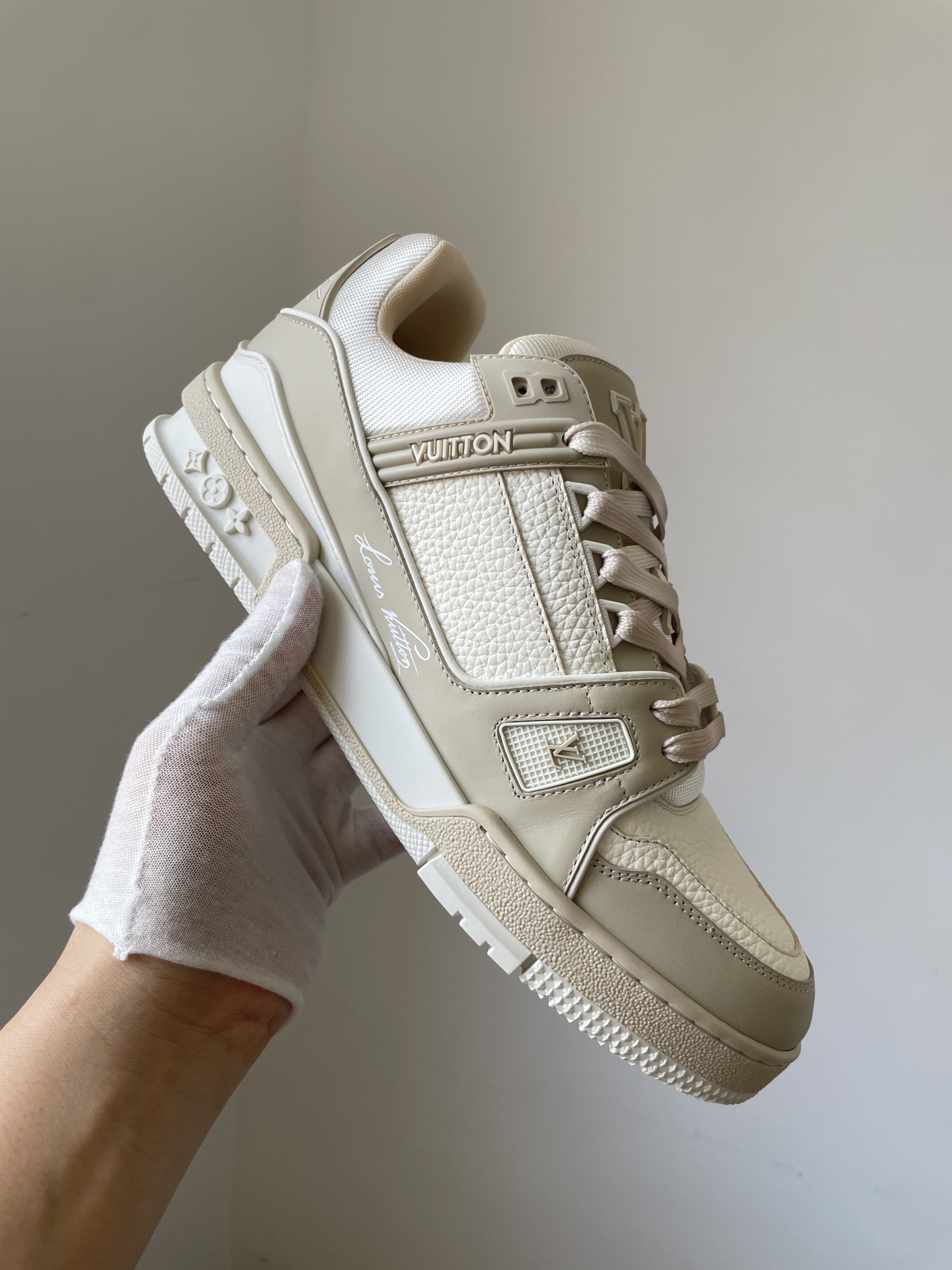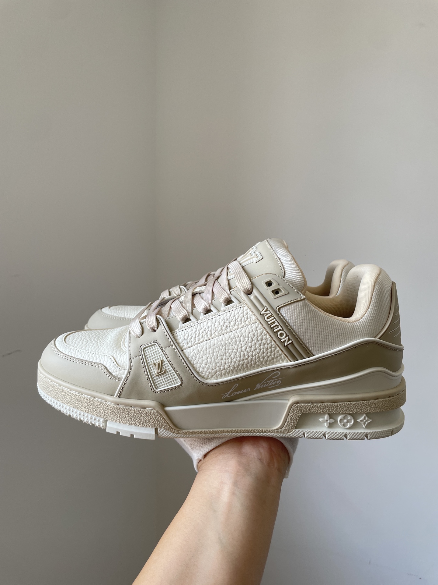 The Louis Vuitton Trainer Light Green Leather Low-Top Sneakers showcases Louis Vuitton’s master craftsmanship and timeless design. Made from high-quality leather and modern materials, it offers durability, comfort, and a refined aesthetic suitable for both casual and fashionable wear.