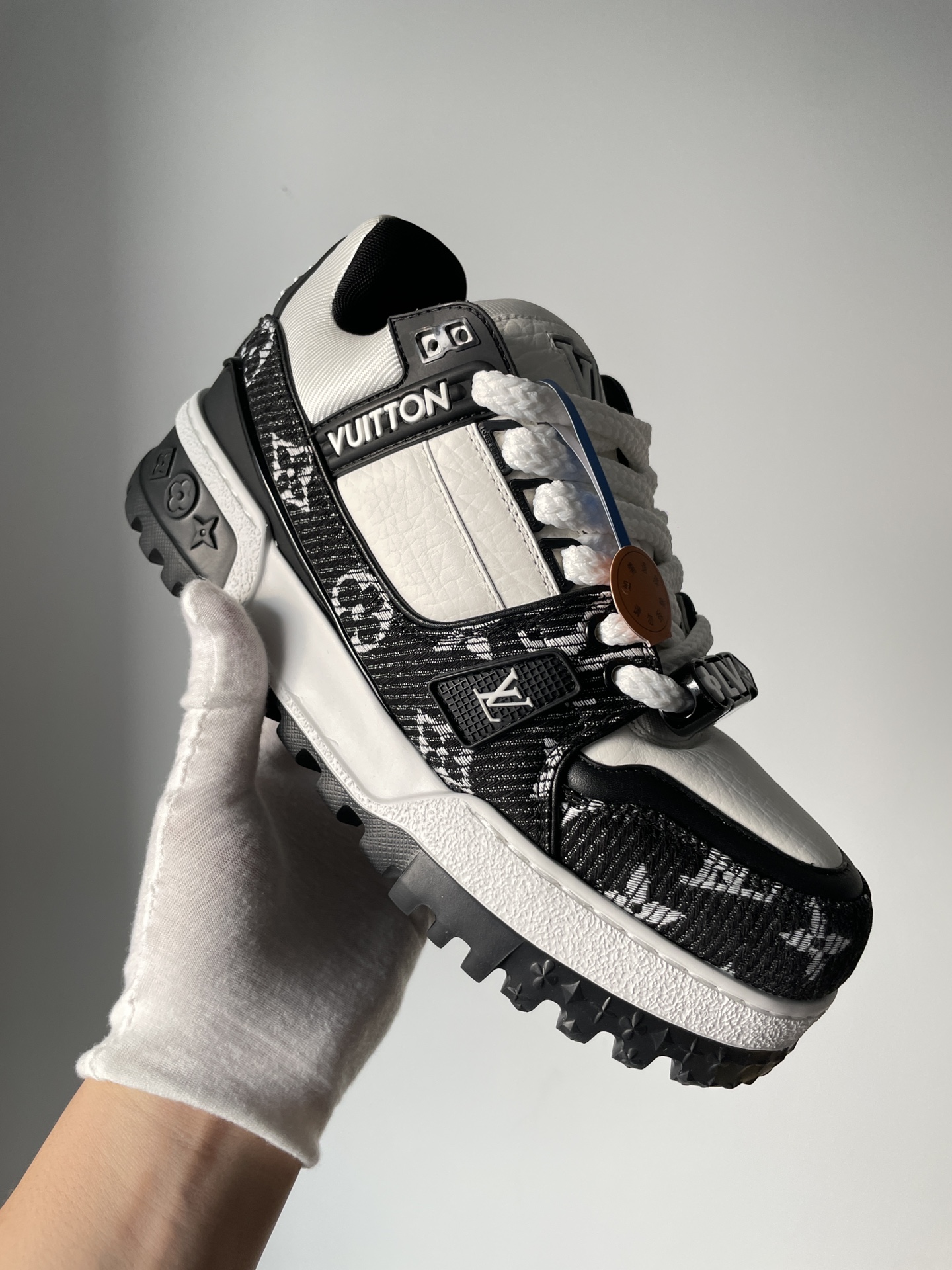 The Louis Vuitton Trainer Maxi Black White Embossed Low-Top Sneakers showcases Louis Vuitton’s master craftsmanship and timeless design. Made from high-quality leather and modern materials, it offers durability, comfort, and a refined aesthetic suitable for both casual and fashionable wear.