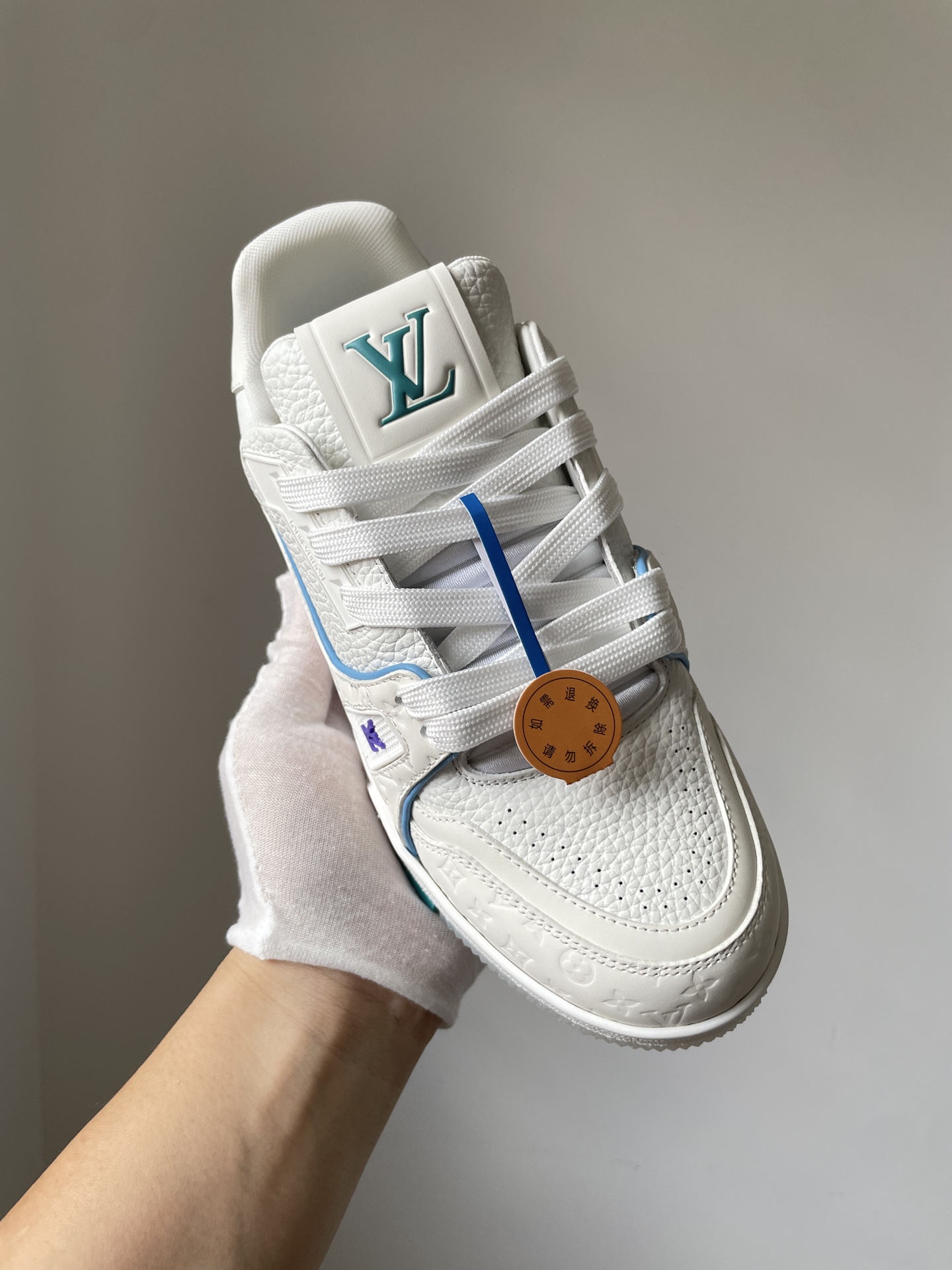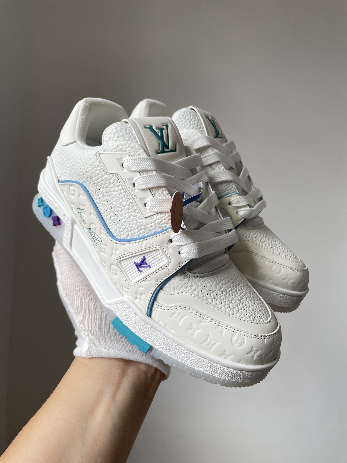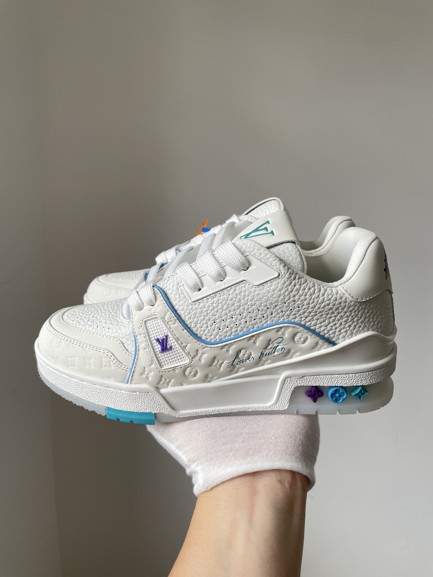 The Louis Vuitton Trainer White Blue Purple Leather Low-Top Sneakers Shanghai Cruise Limited Edition showcases Louis Vuitton’s master craftsmanship and timeless design. Made from high-quality leather and modern materials, it offers durability, comfort, and a refined aesthetic suitable for both casual and fashionable wear.