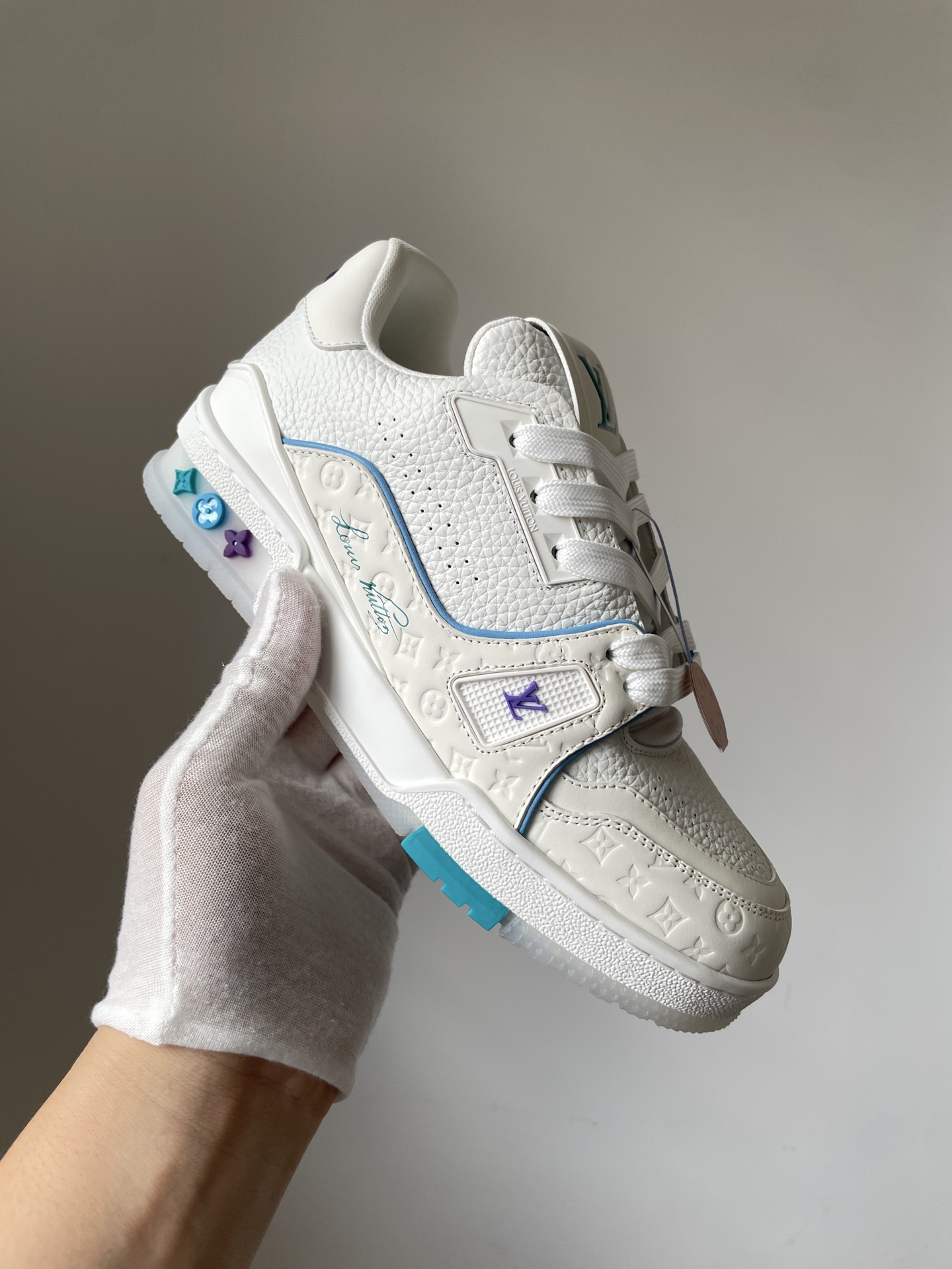 Louis Vuitton Trainer White Blue Purple Leather Low-Top Sneakers Shanghai Cruise Limited Edition