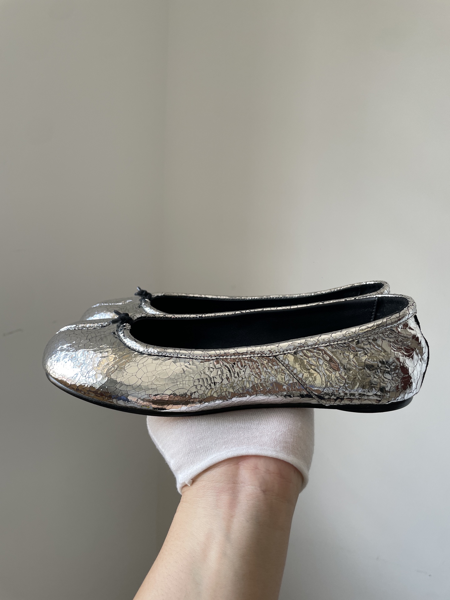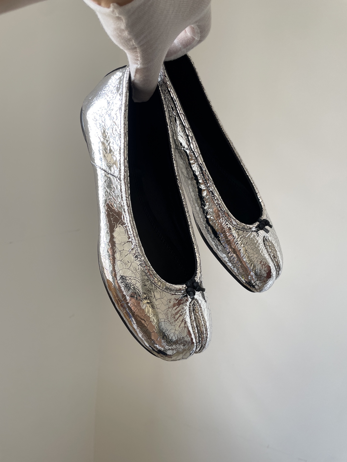 Maison Margiela Tabi Metallic Leather Split-Toe Flats Women Silver crafted from high-quality materials with Maison Margiela’s signature minimalist aesthetic, offering comfort, elegance, and contemporary style for everyday wear.