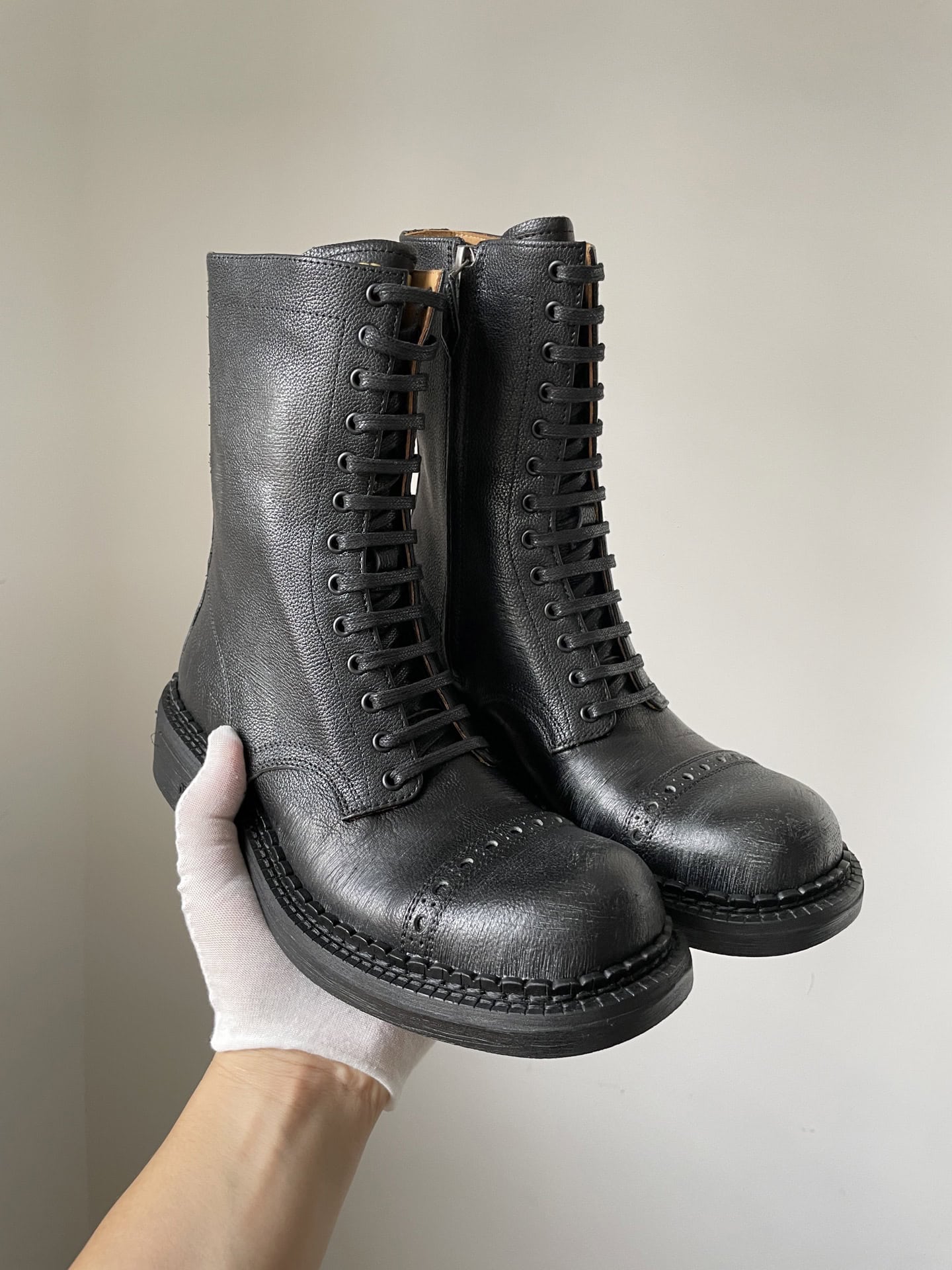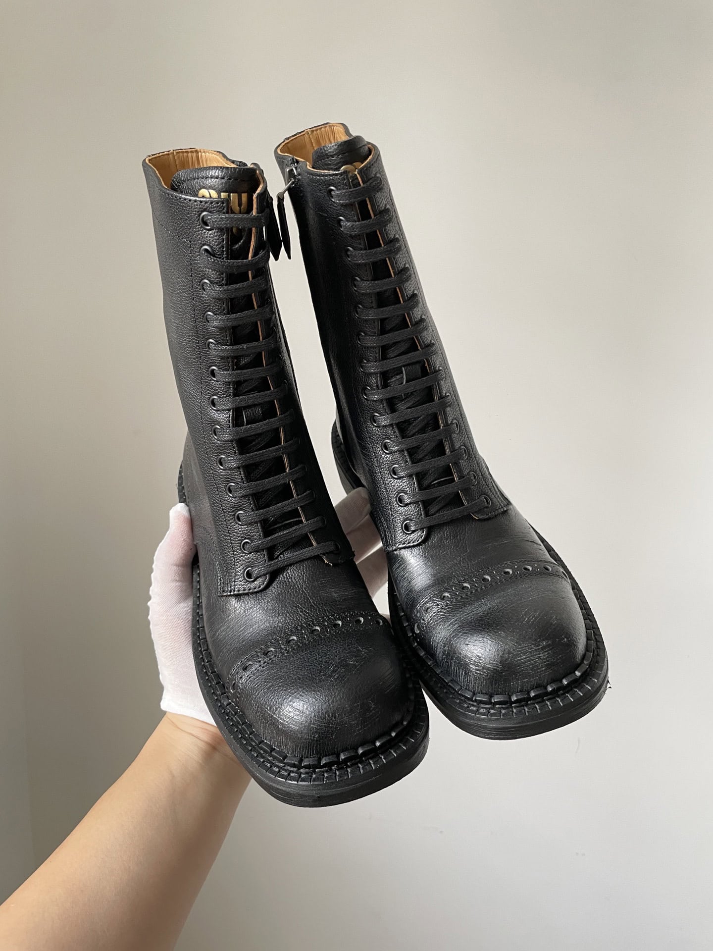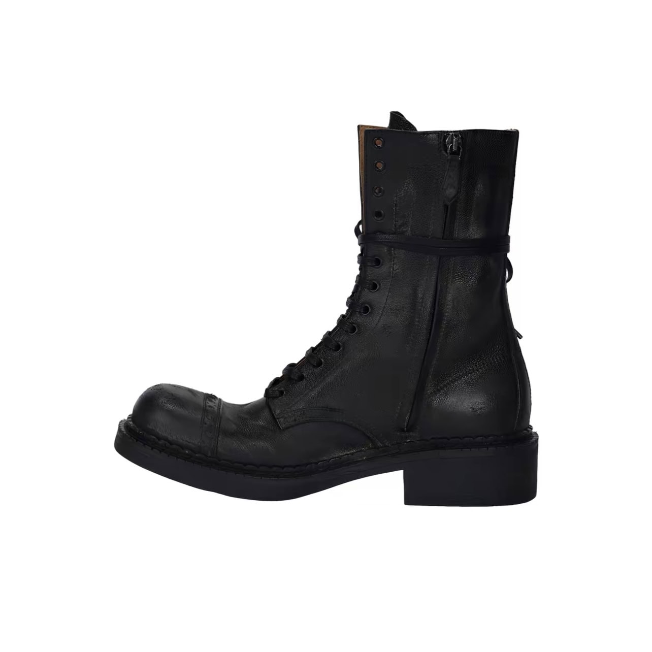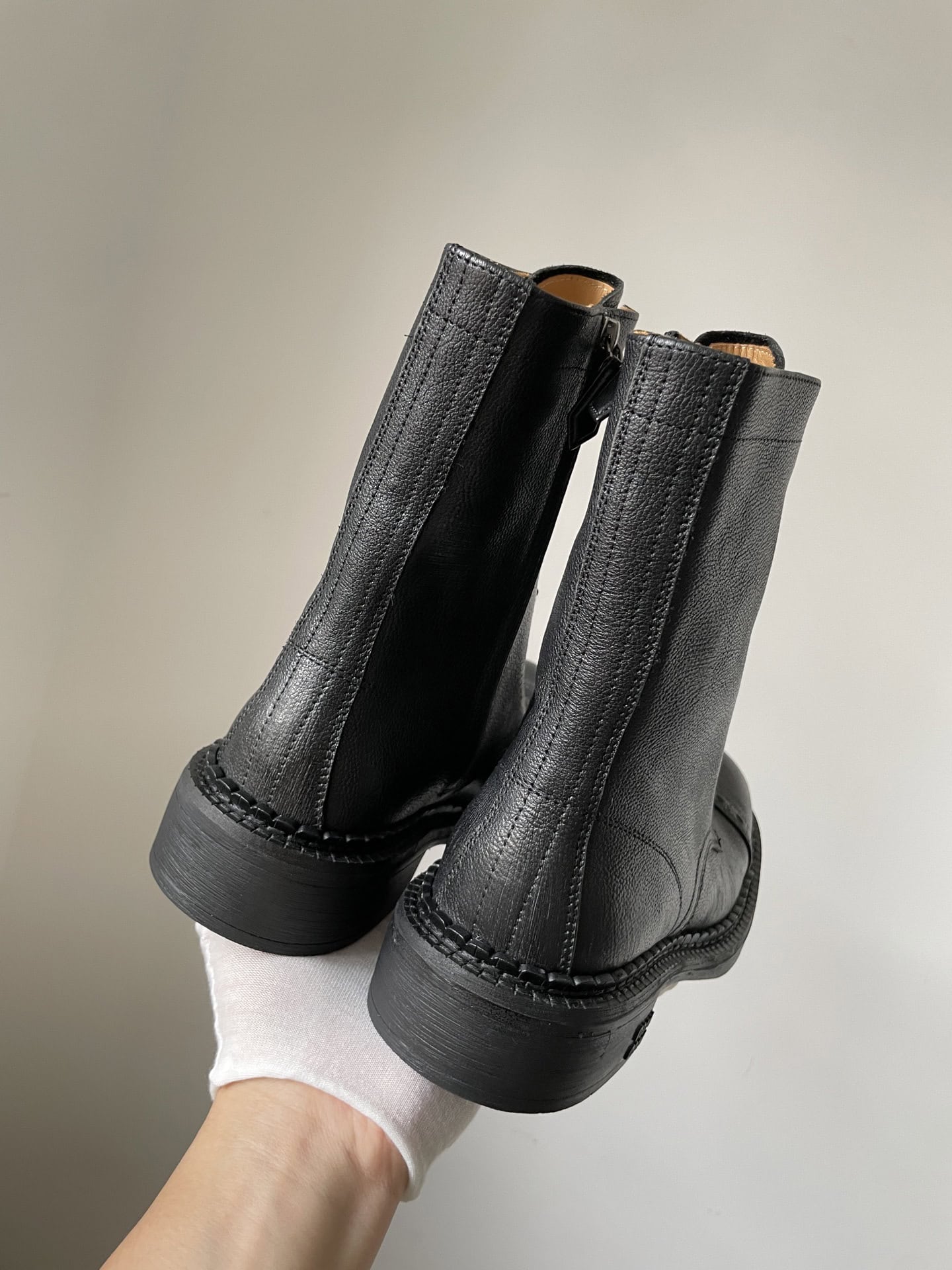 Miu Miu FW24 Leather Round Toe Lace-Up Block Heel Boots Women Black