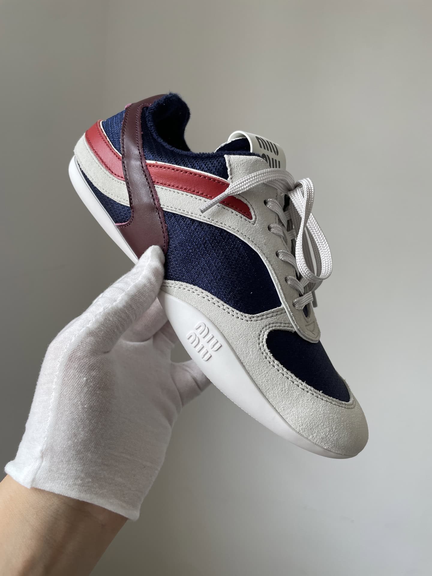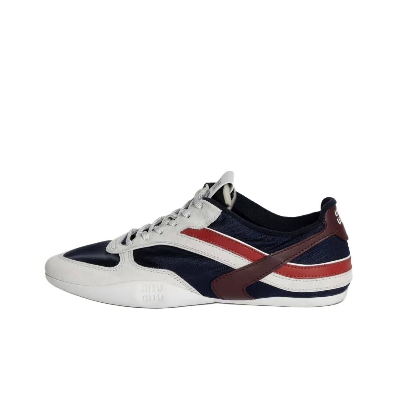 Miu Miu Gymnasium Suede Color Strap Logo Embossed Lace-Up Trainers Women Blue White crafted from premium materials with refined detailing, delivering sophistication, comfort, and timeless elegance for everyday wear.