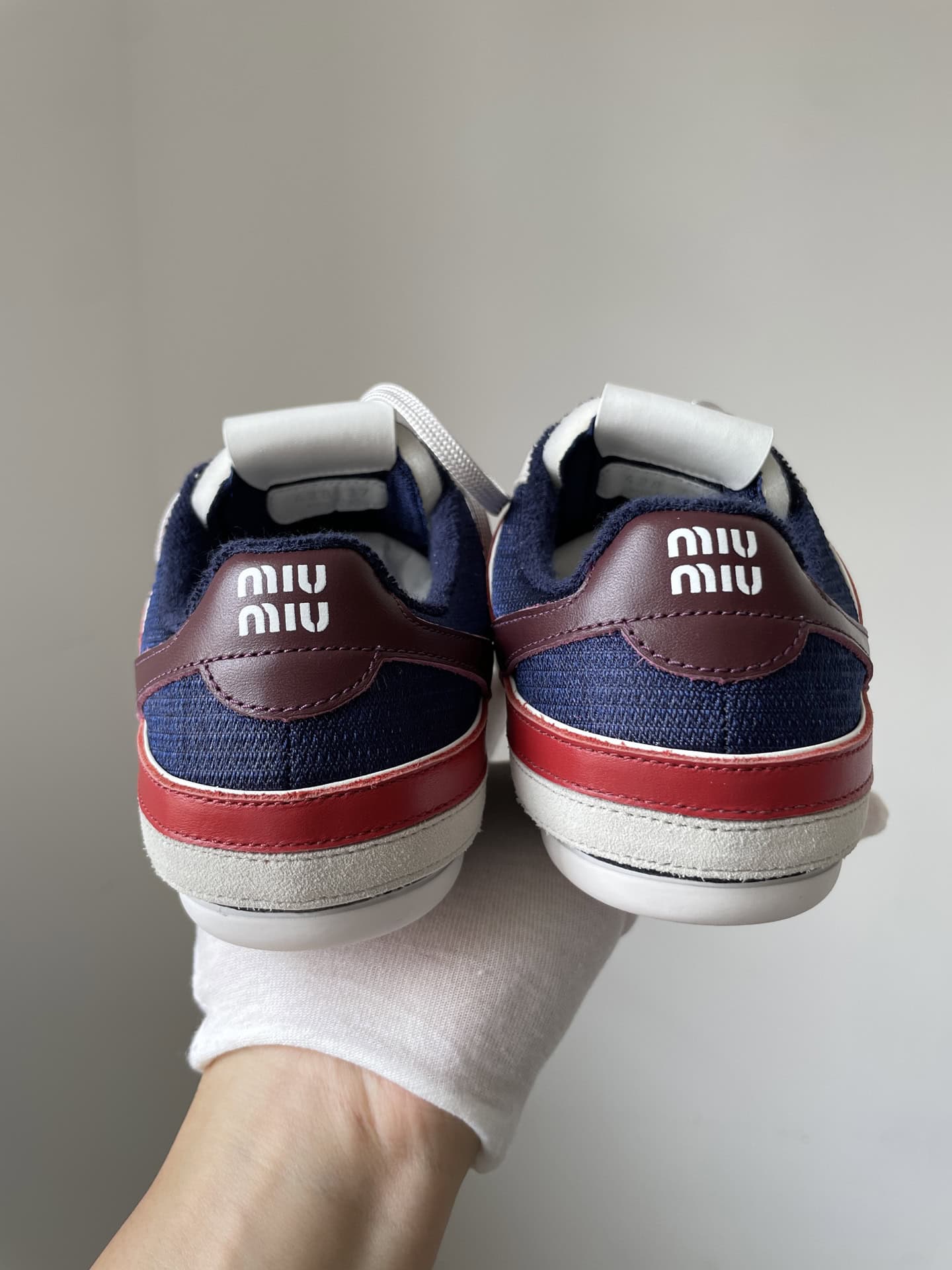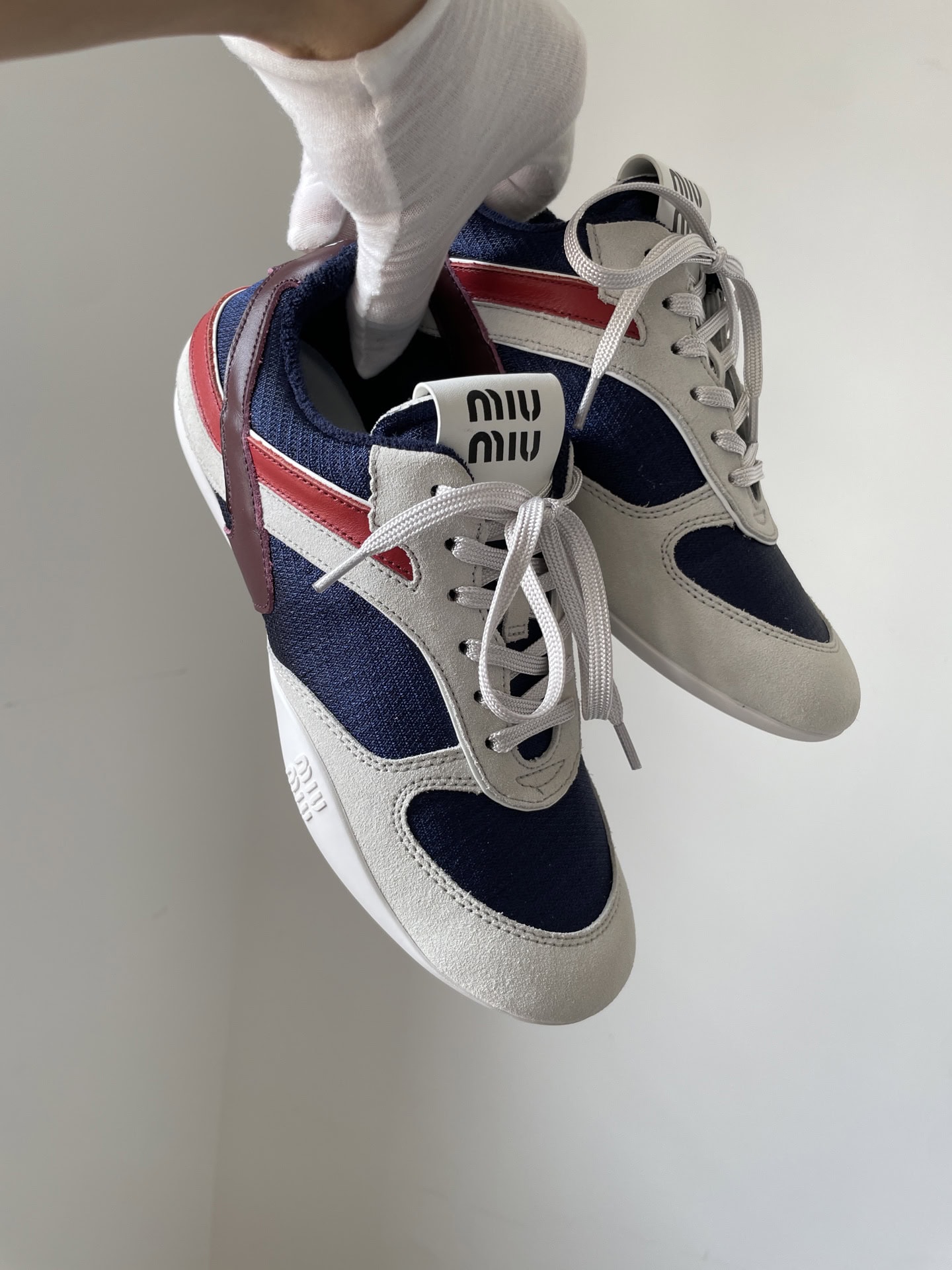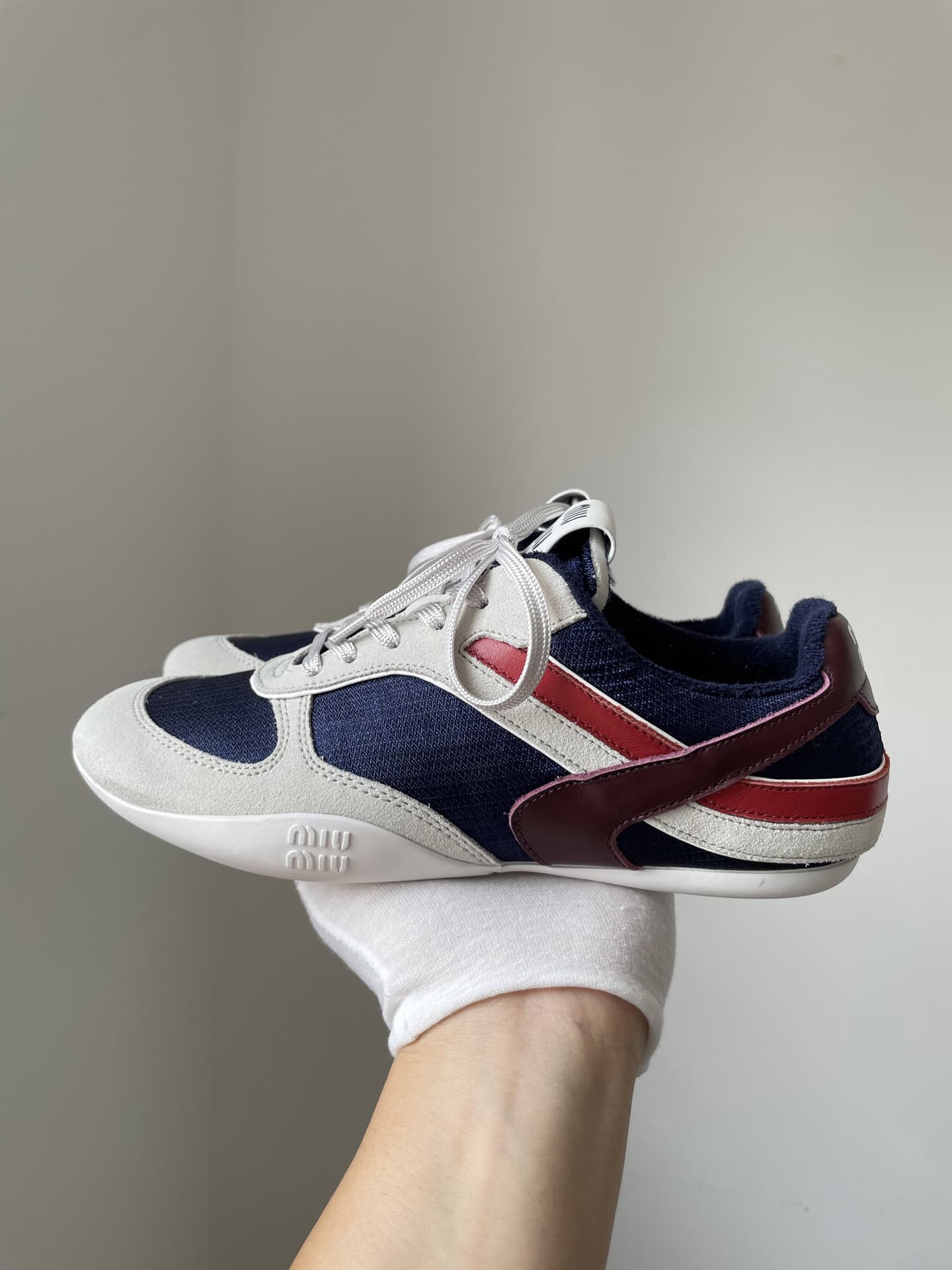 Miu Miu Gymnasium Suede Color Strap Logo Embossed Lace-Up Trainers Women Blue White