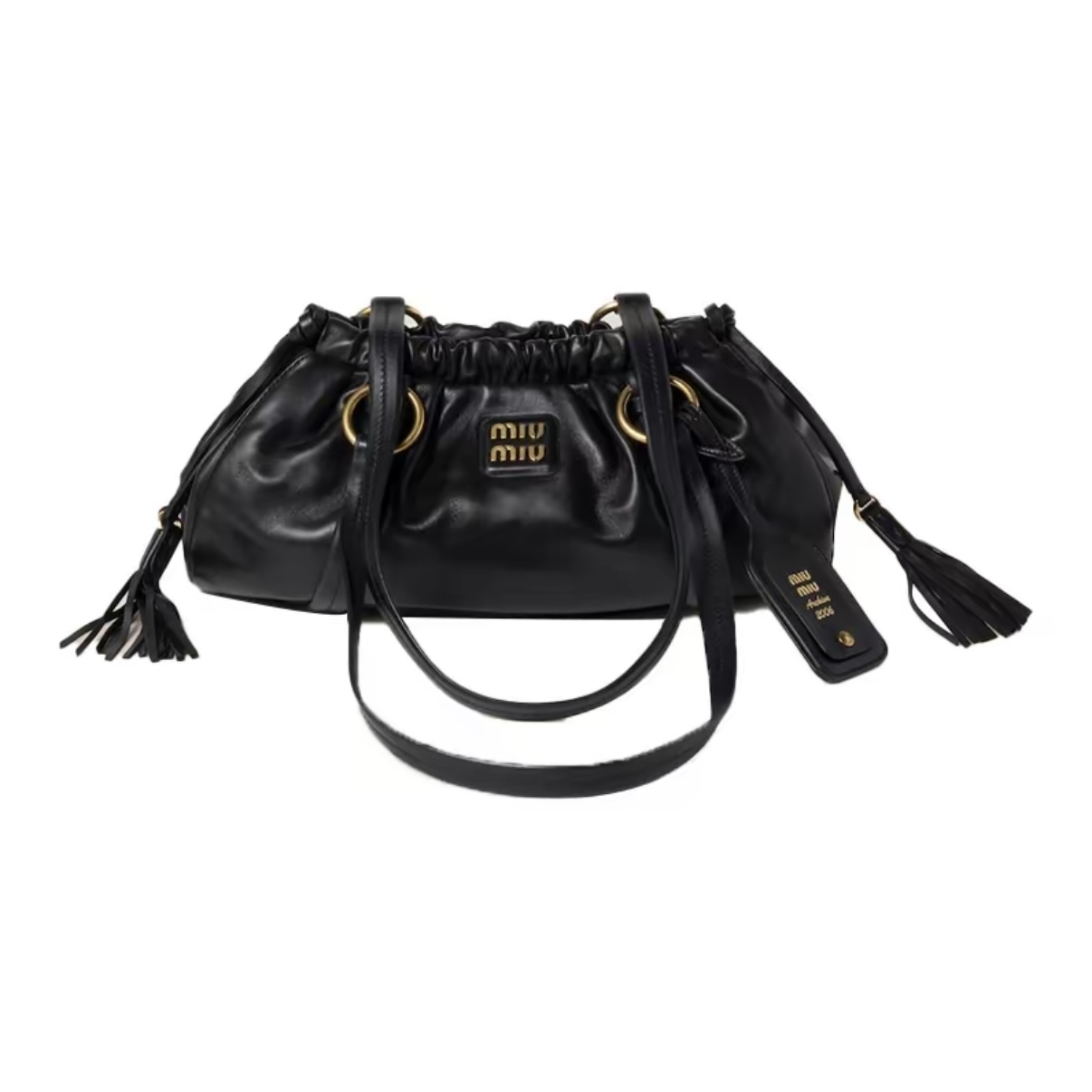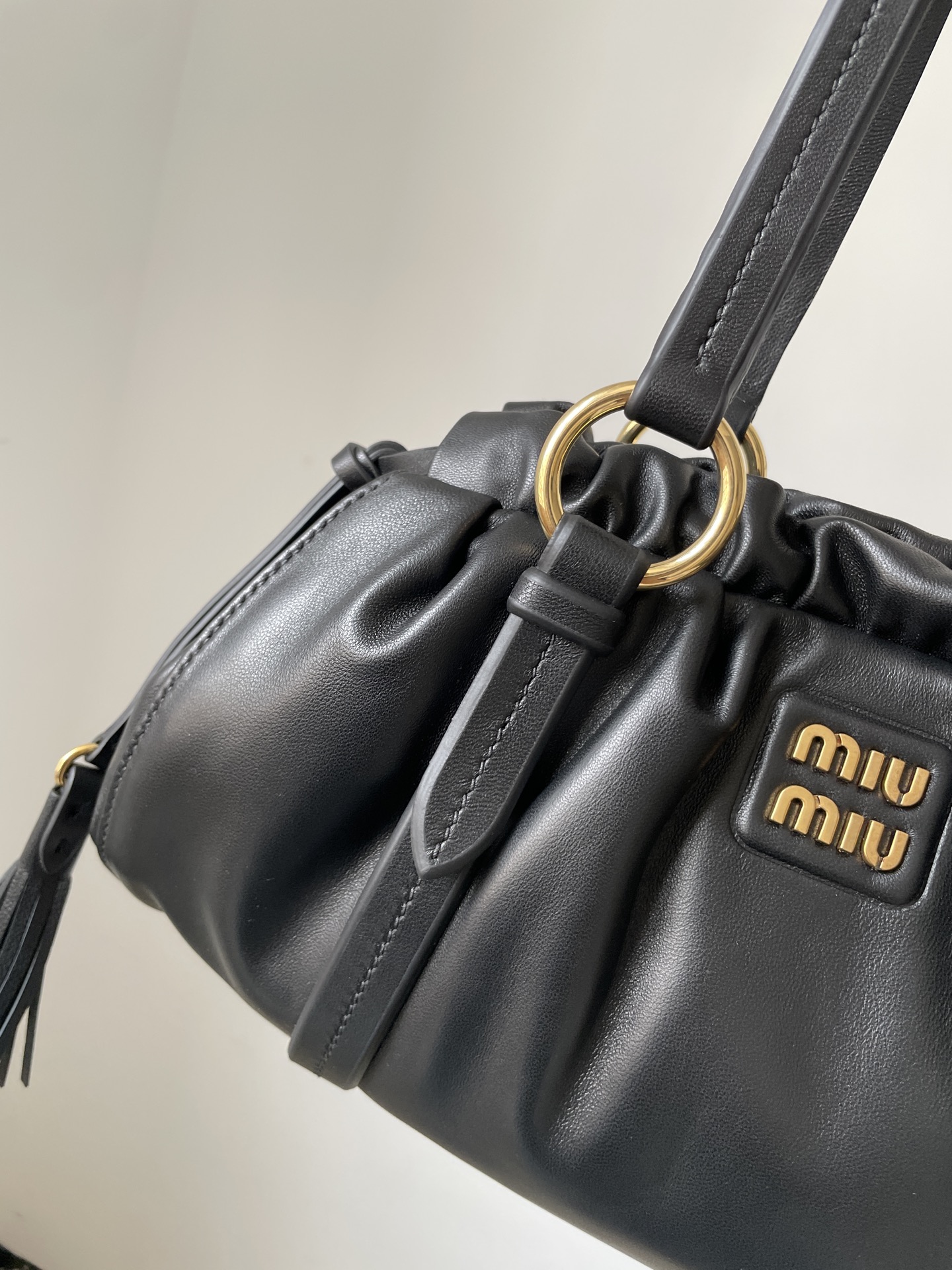 MIU MIU Joie Nappa Leather Drawstring Handbag – Black