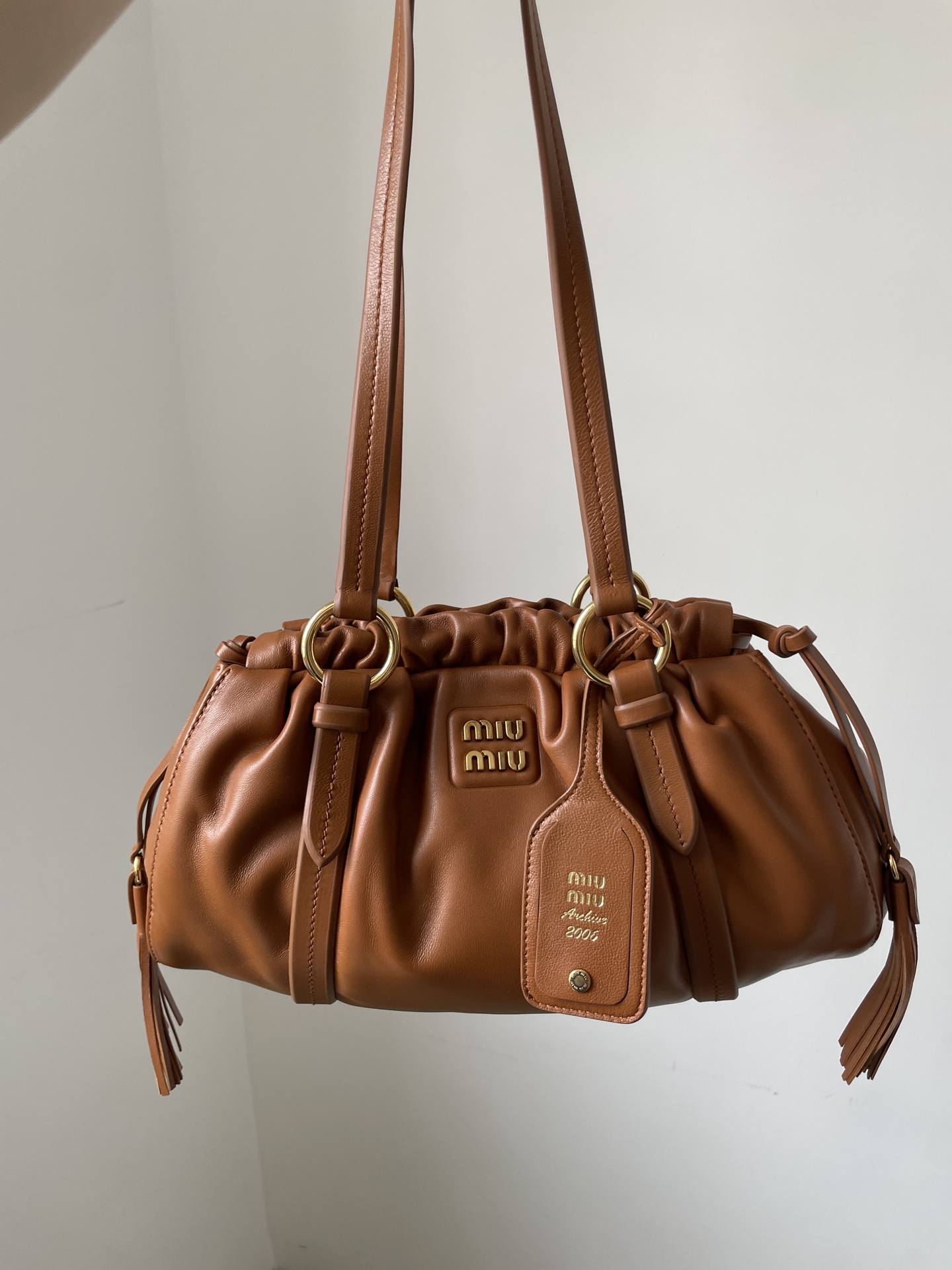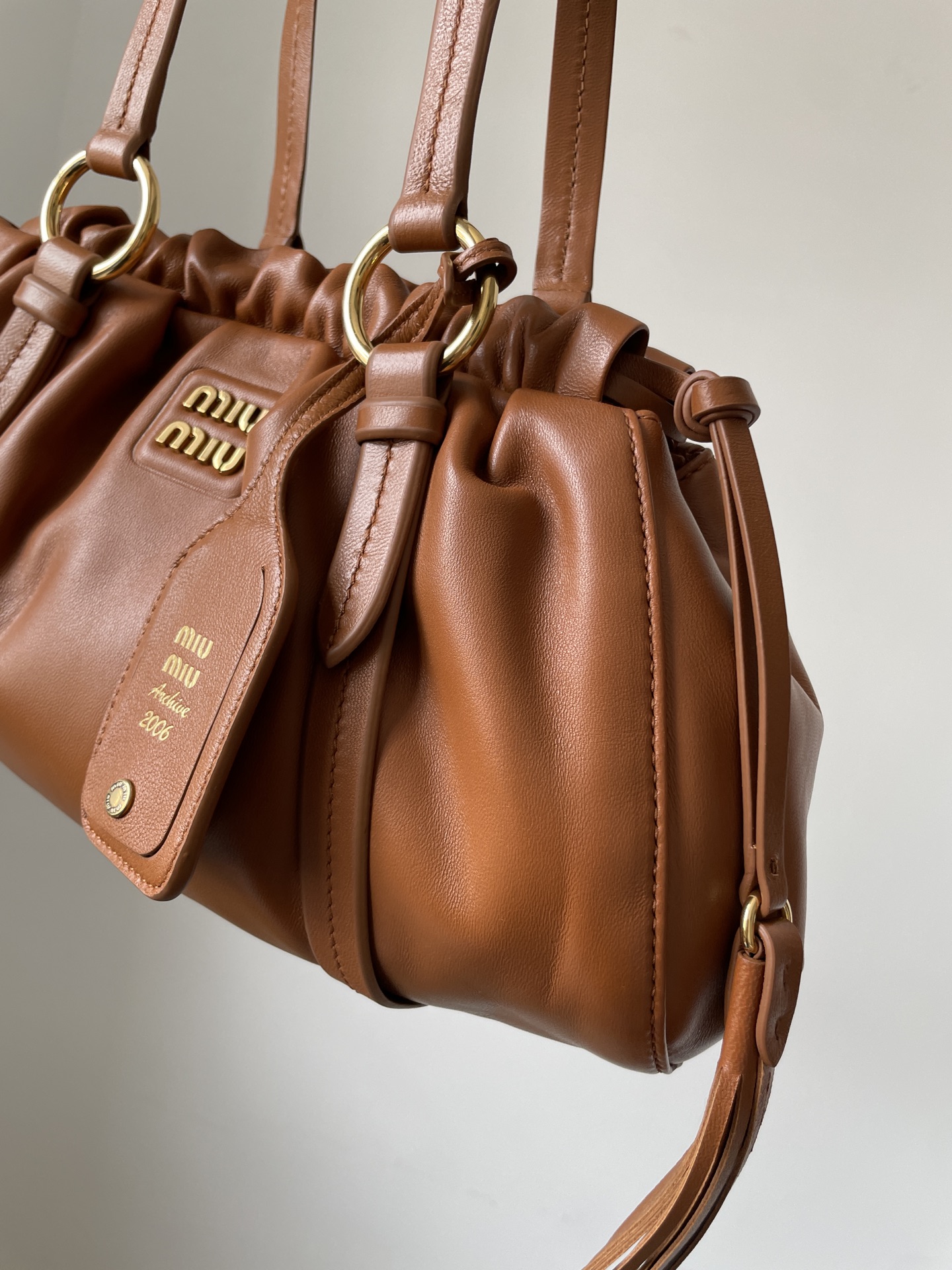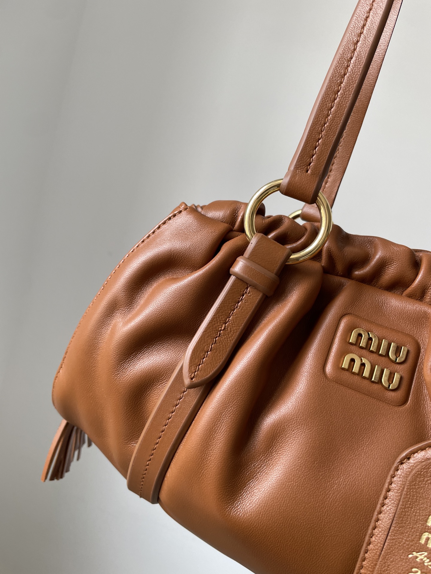 MIU MIU Joie Nappa Leather Shoulder Handbag – Cognac