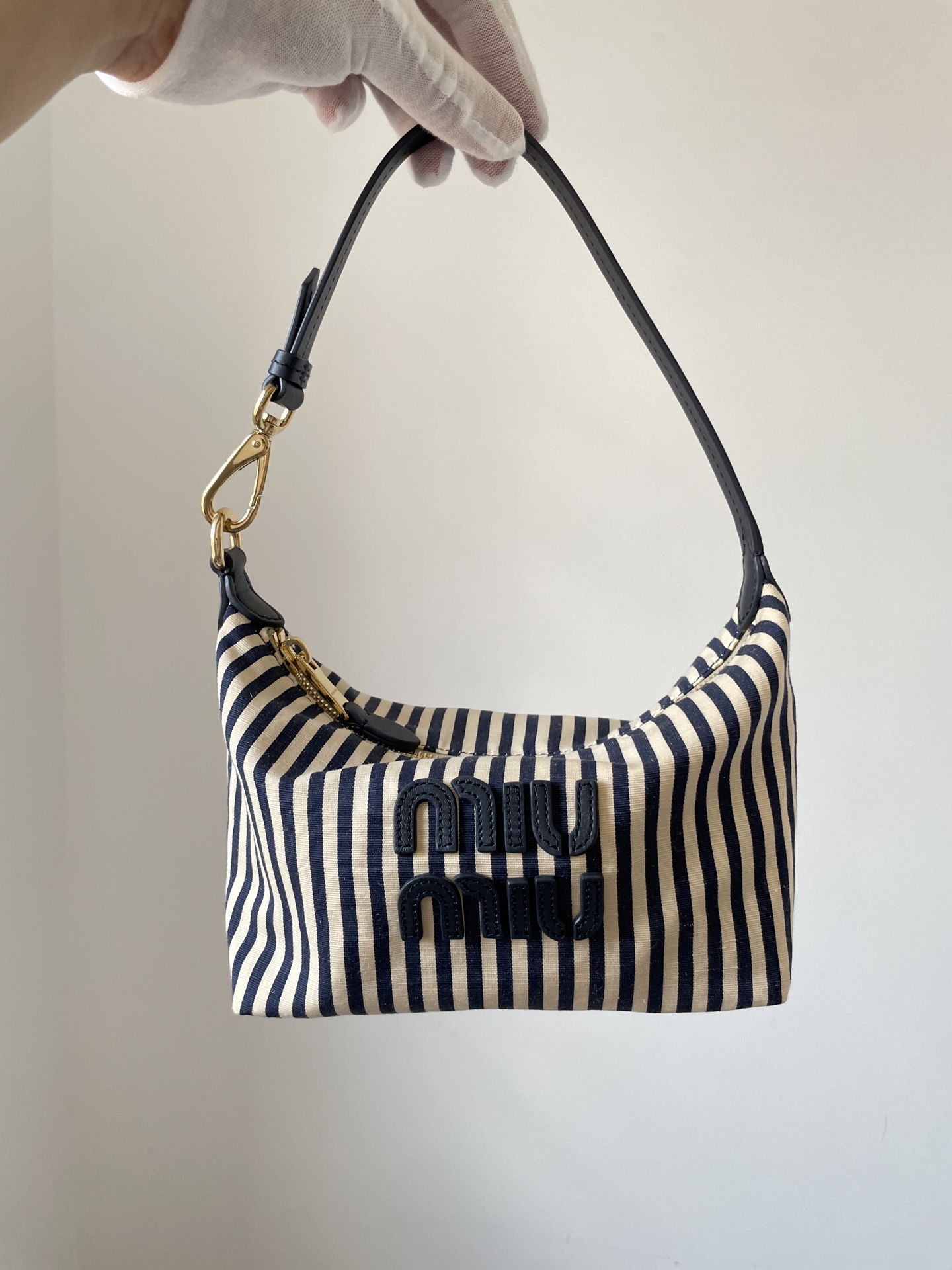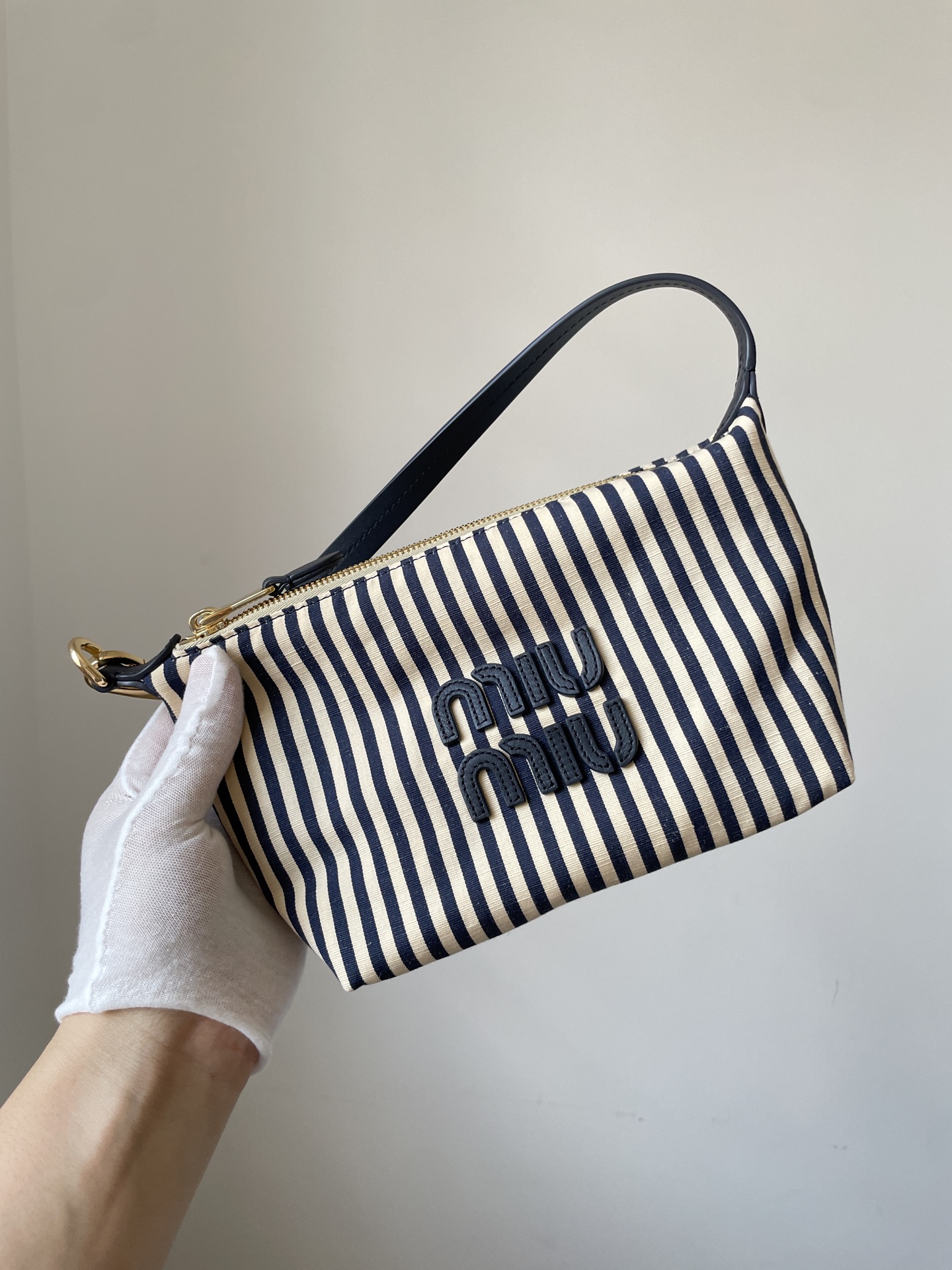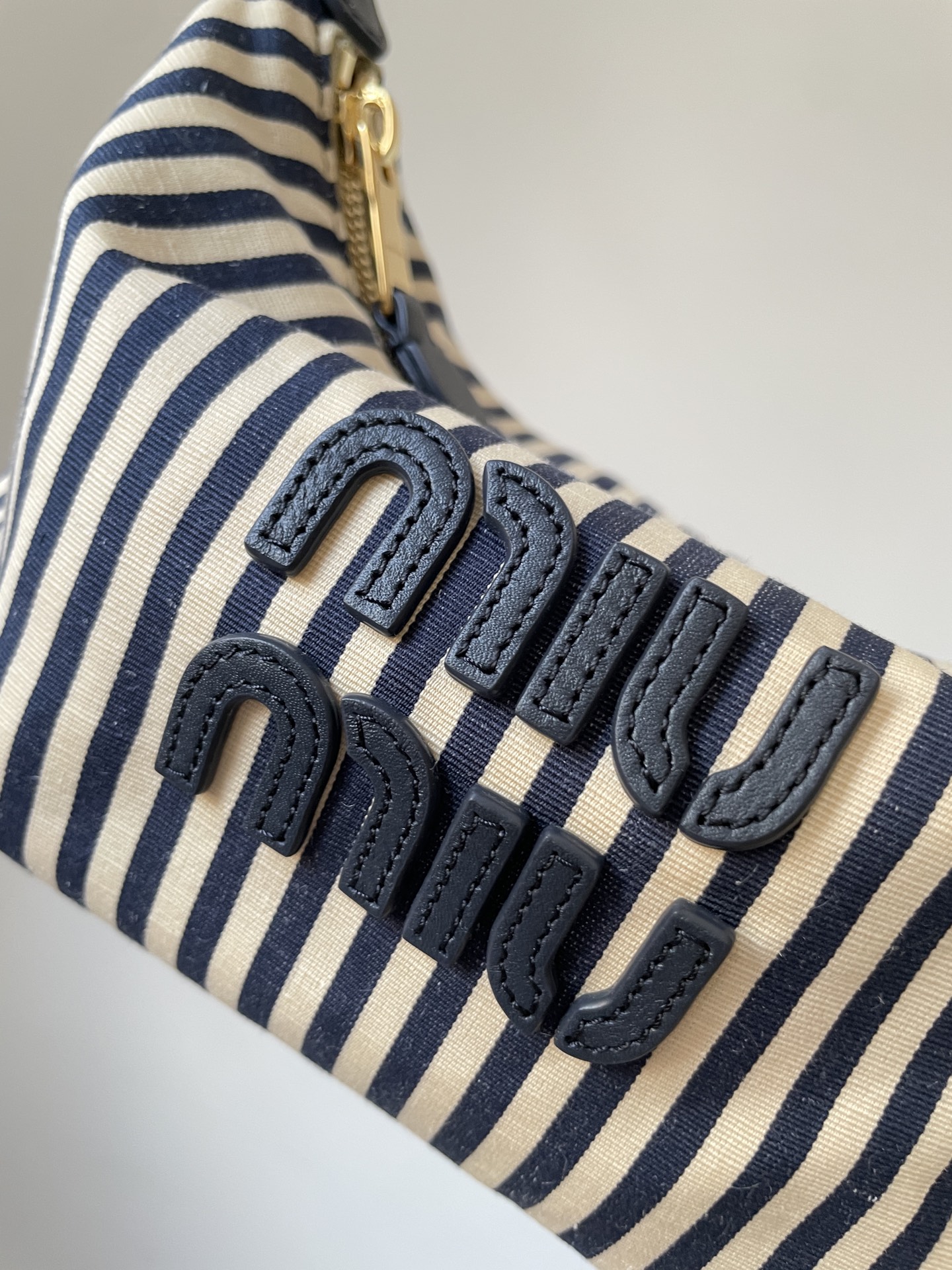 MIU MIU Spirit Logo Fabric Mini Handbag – Beige & Blue