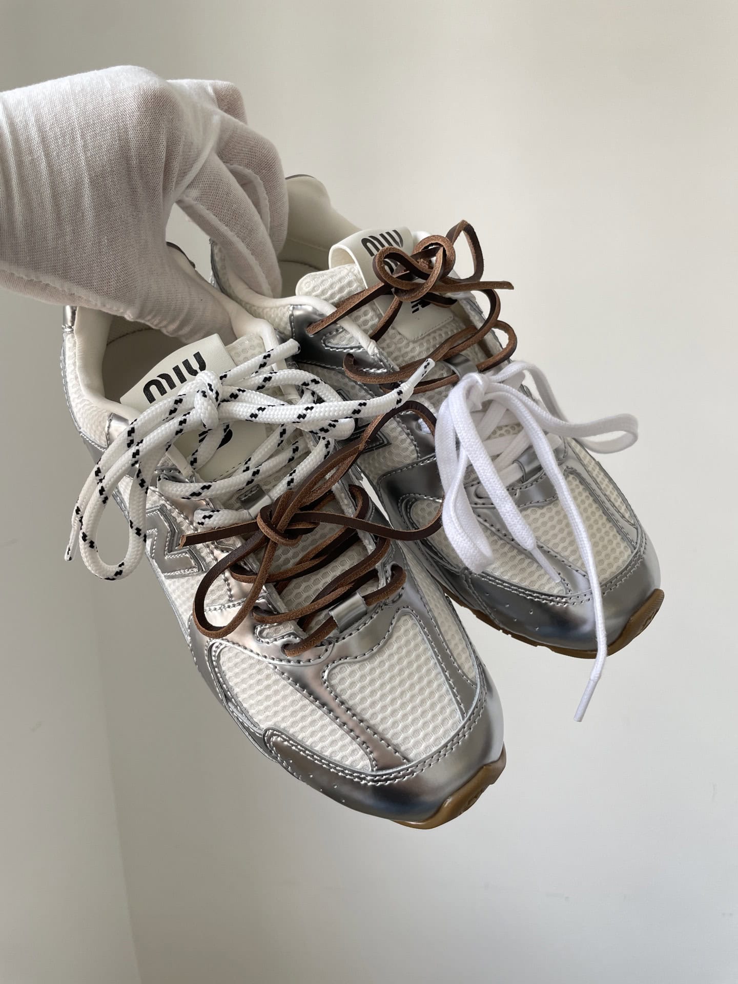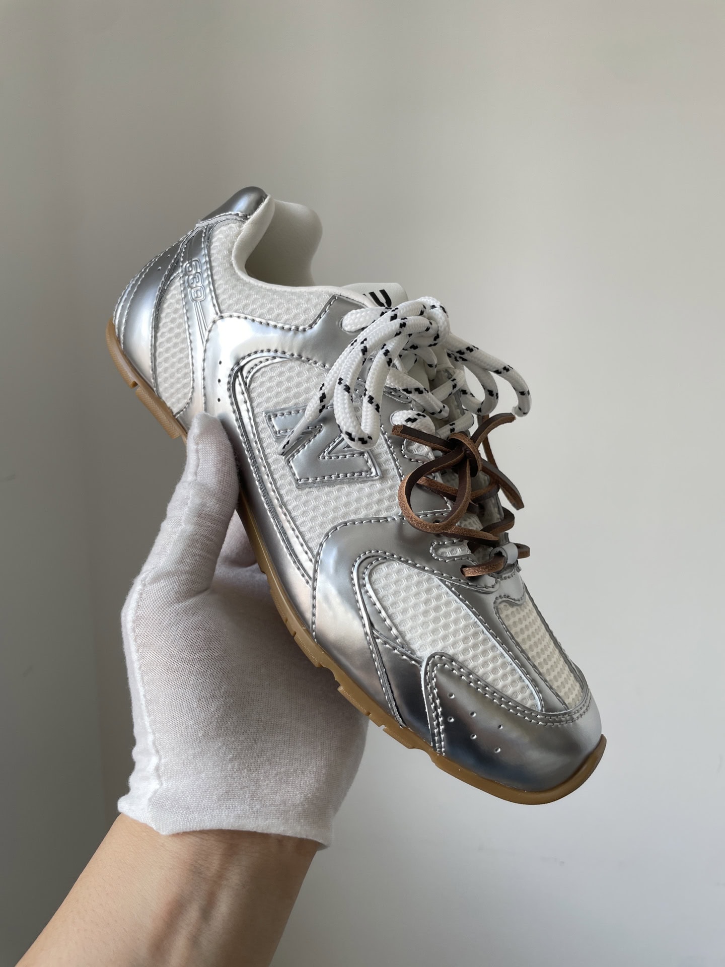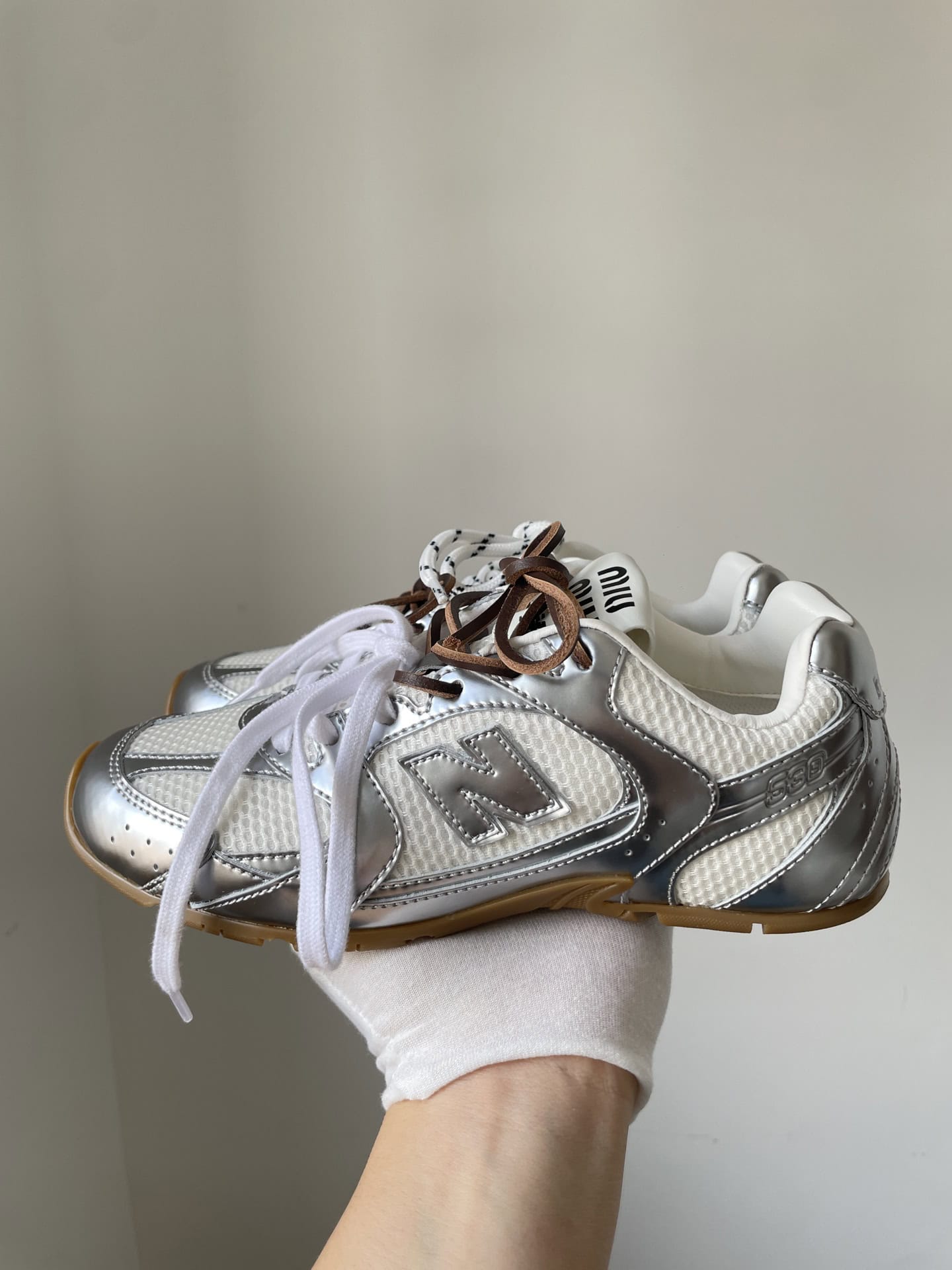 New Balance x Miu Miu NB 530 Lunar Silver Leather Lace-Up Trainers Women Silver