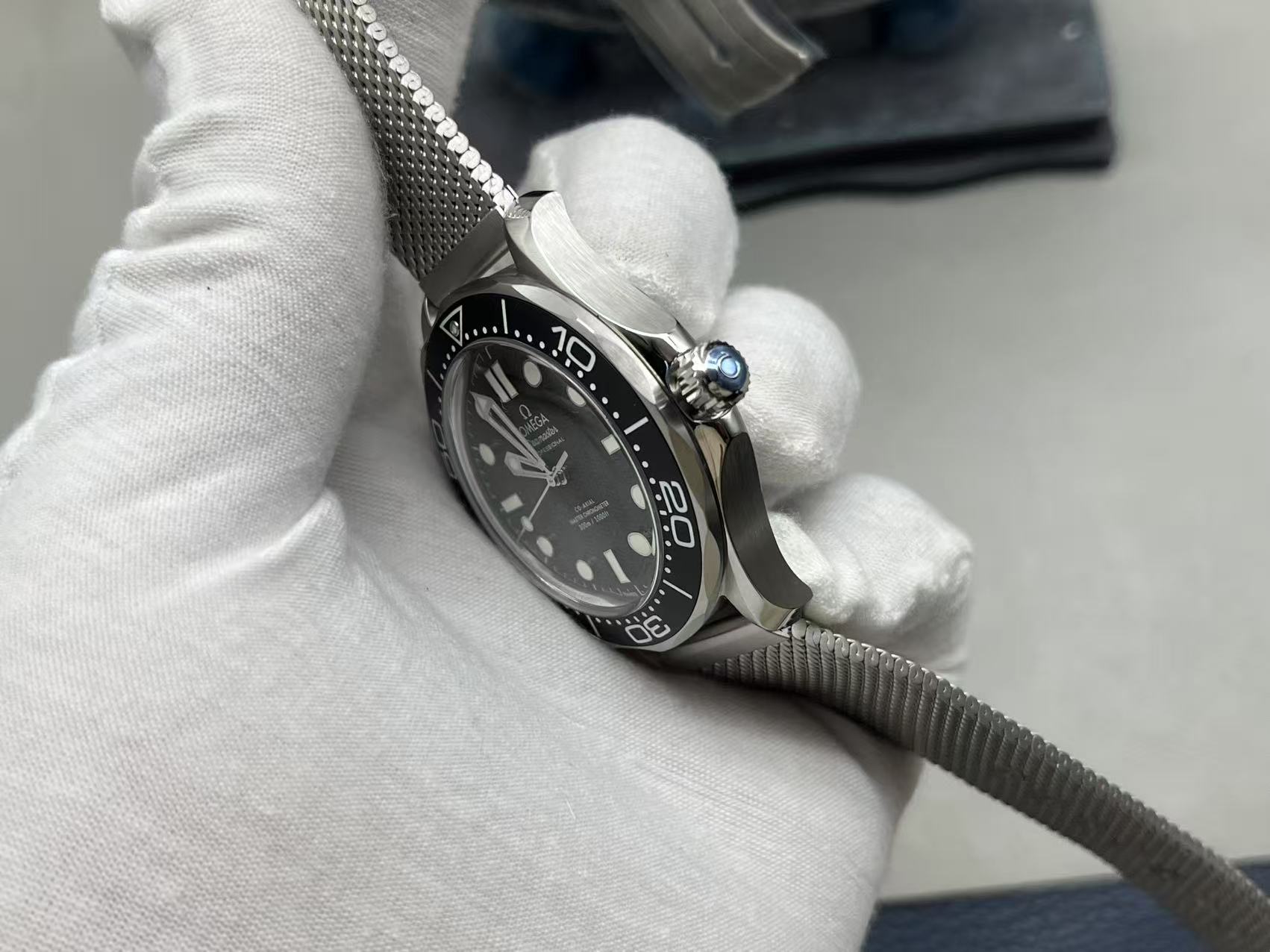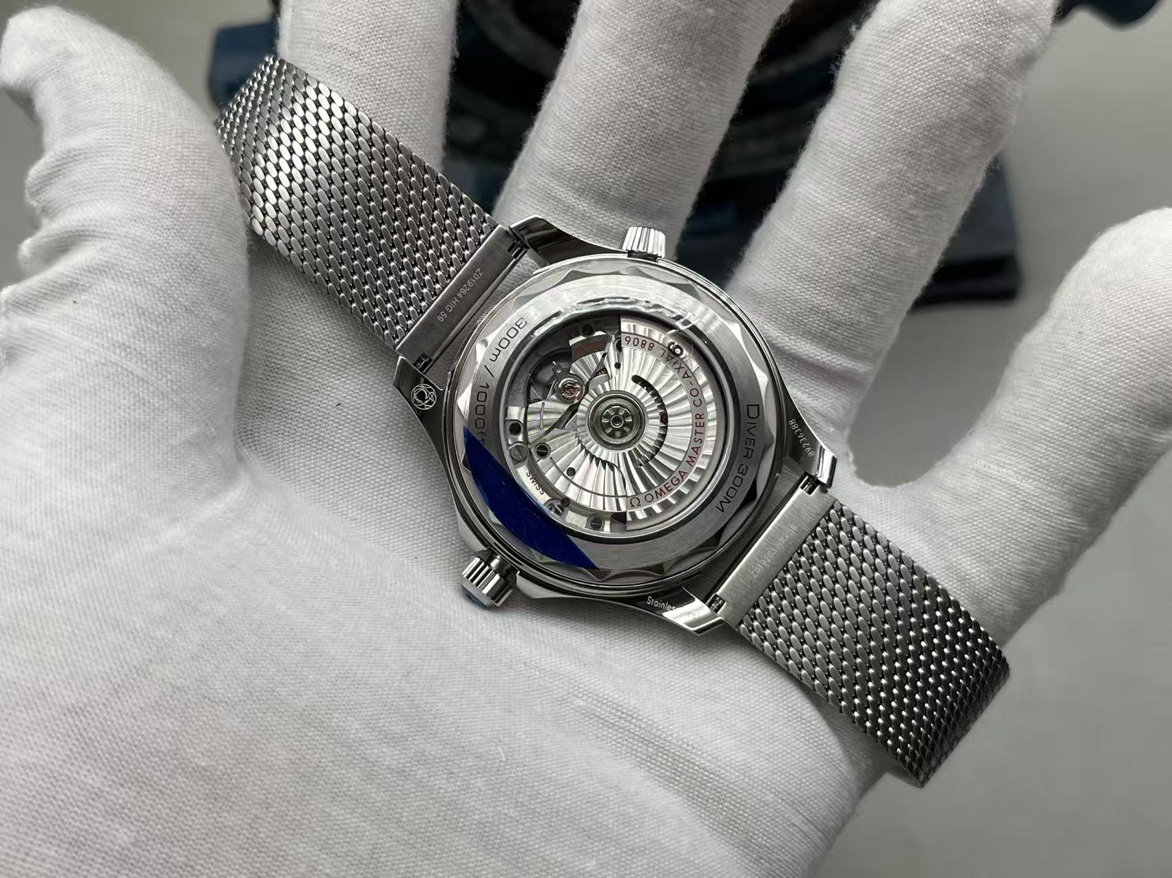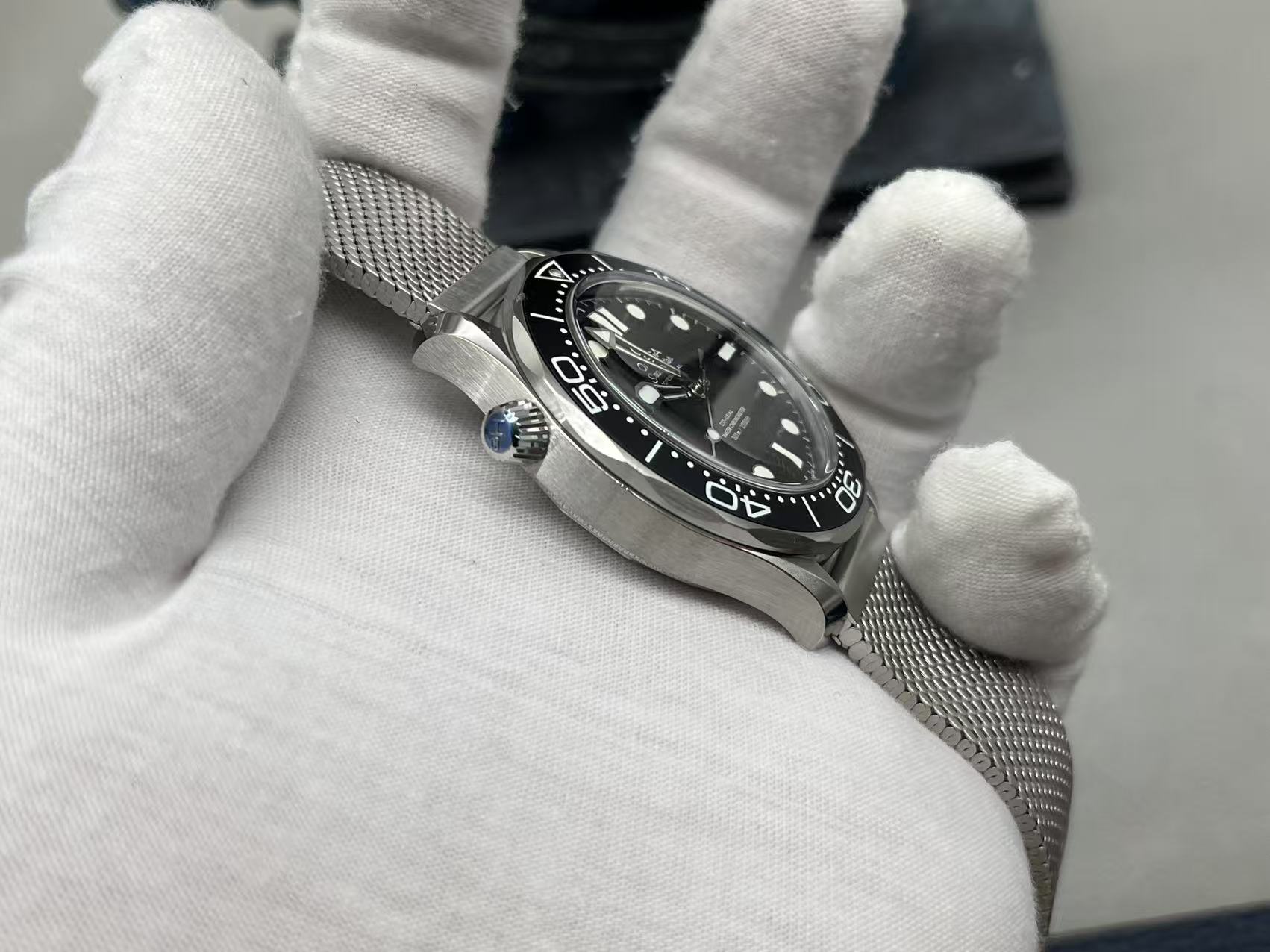OMEGA Seamaster 300M Diver 42mm with automatic 8806 movement, sapphire crystal, 300M water resistance, stainless steel case and bracelet.