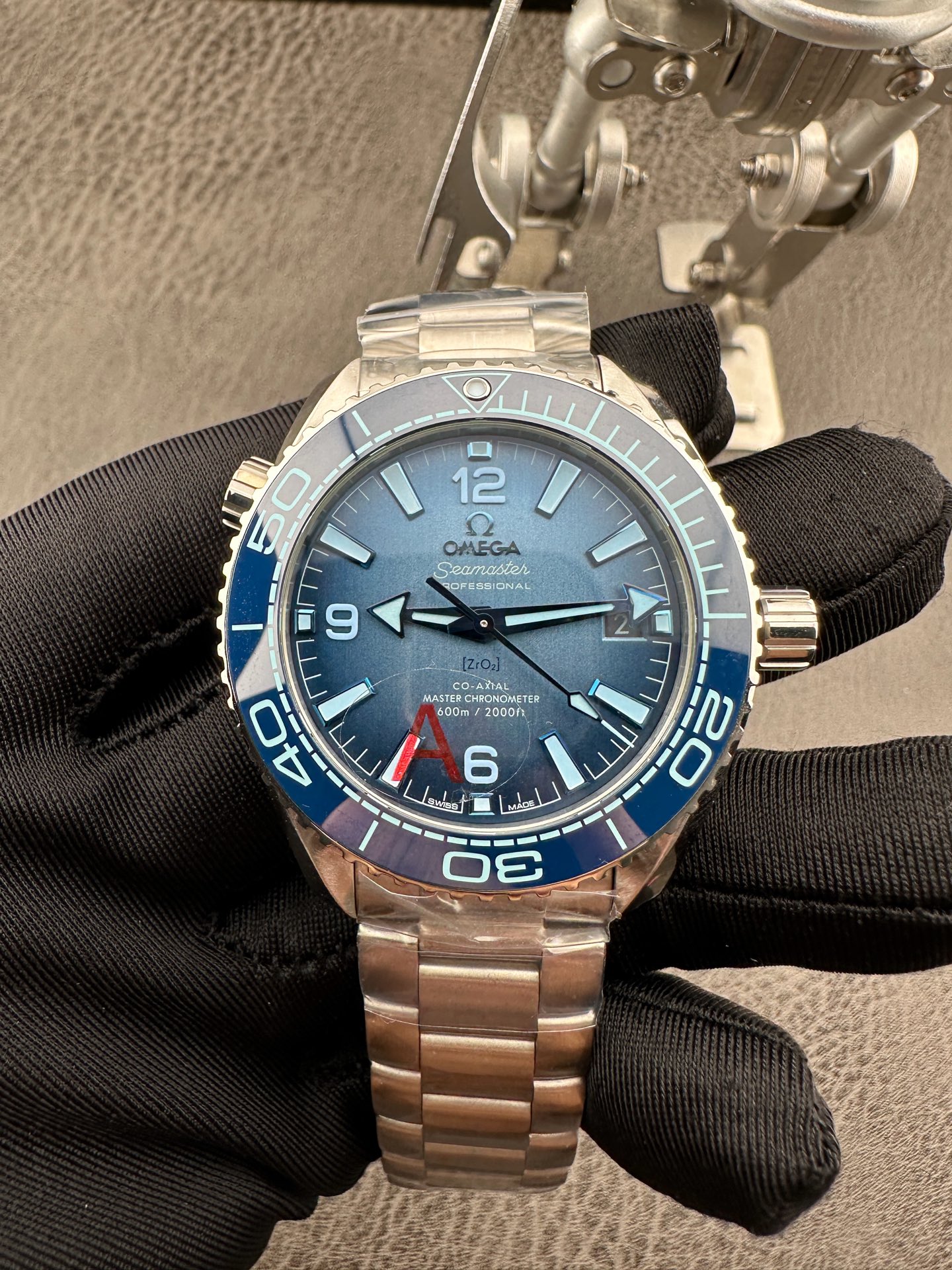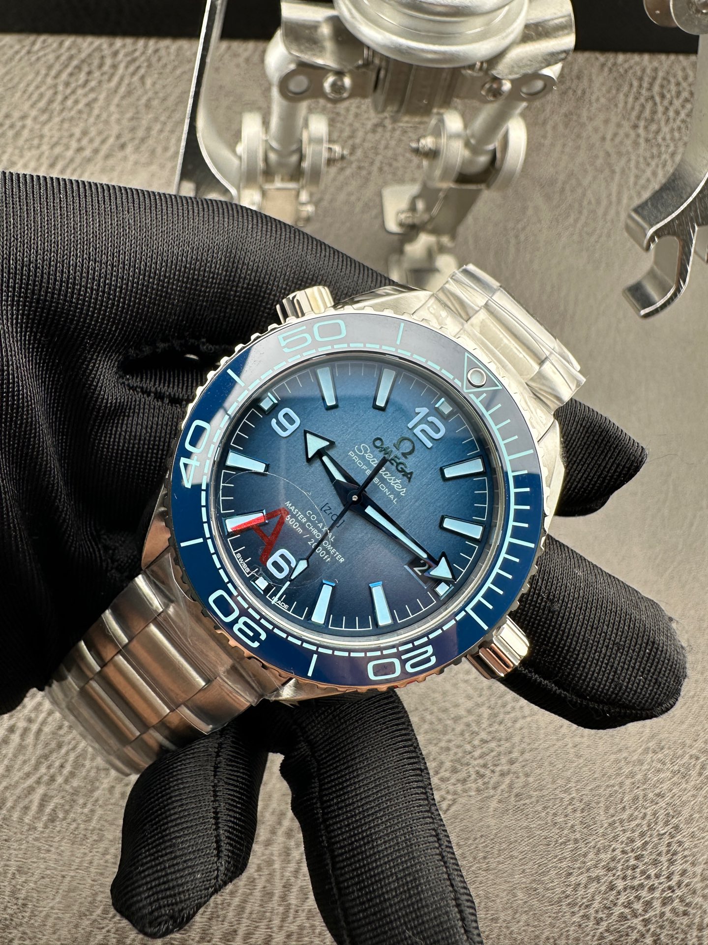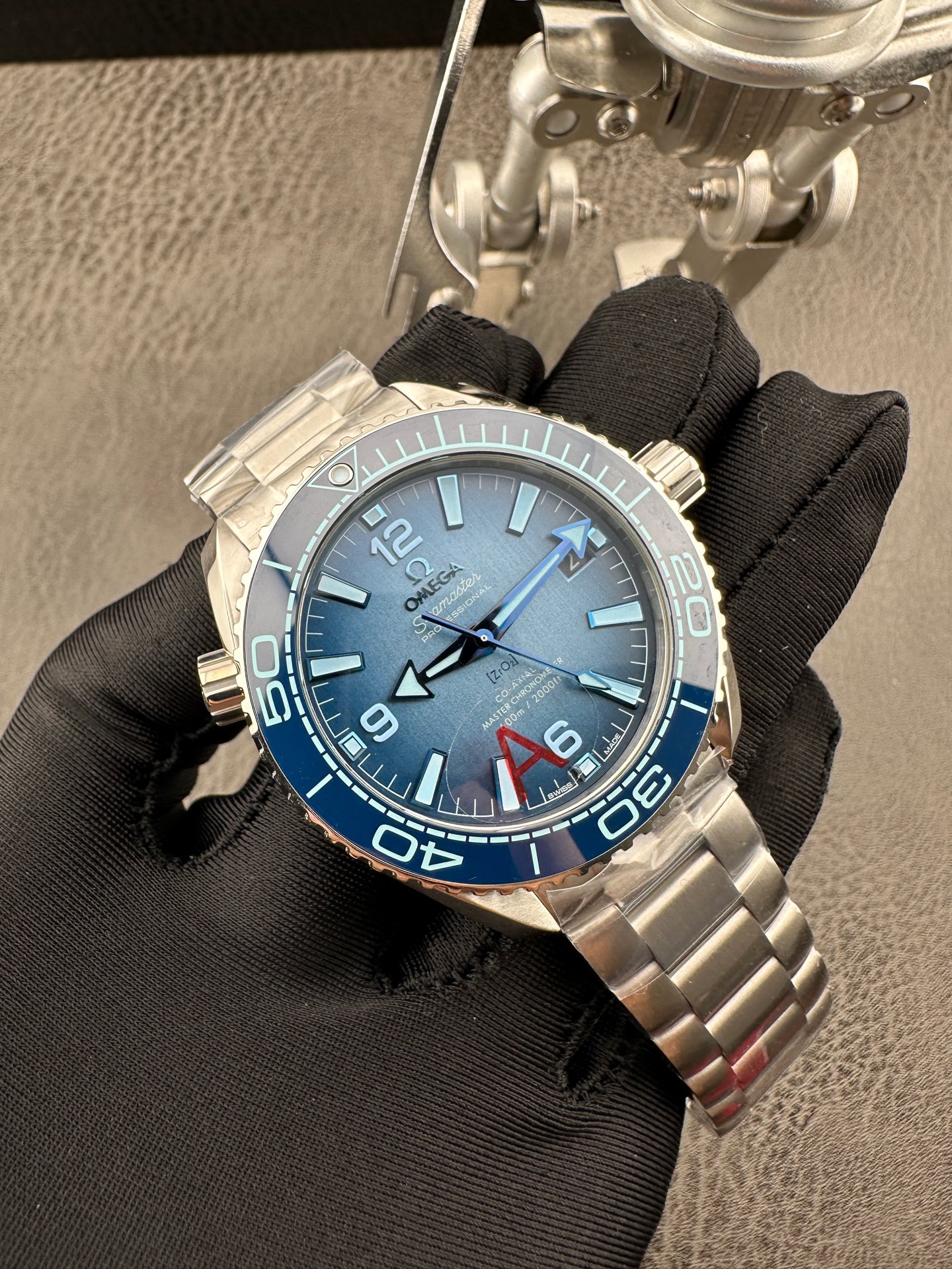 Experience deep‑sea elegance with the OMEGA Seamaster Planet Ocean 600M “Summer Blue.”