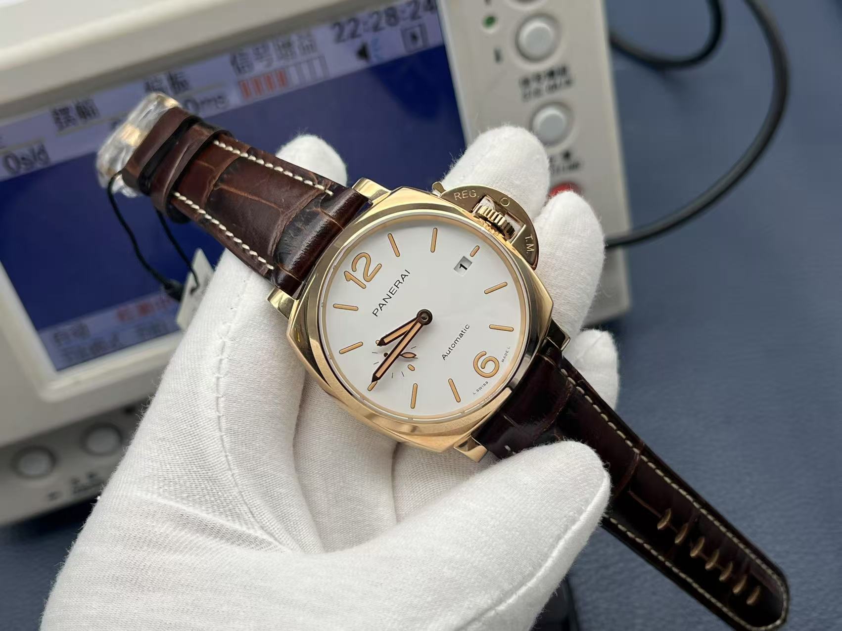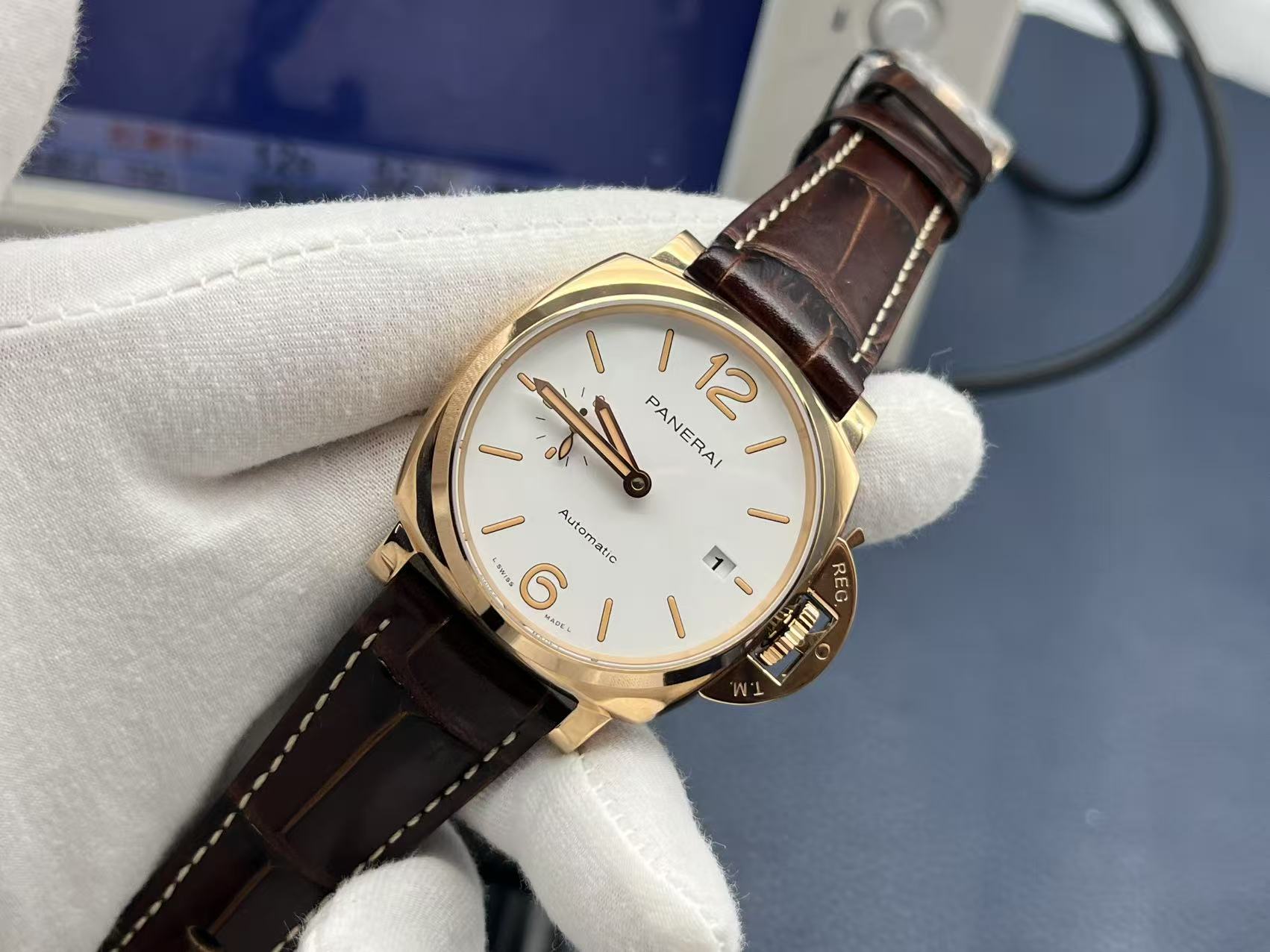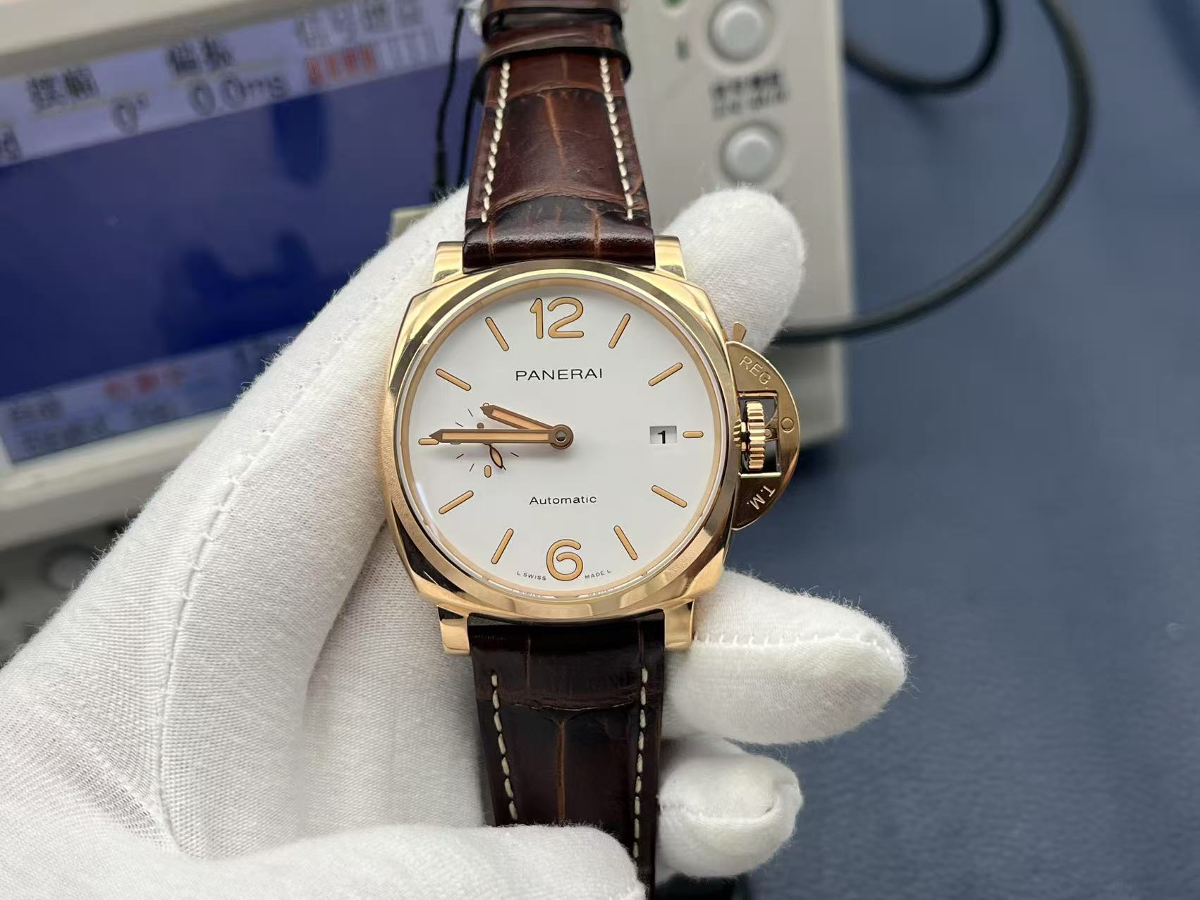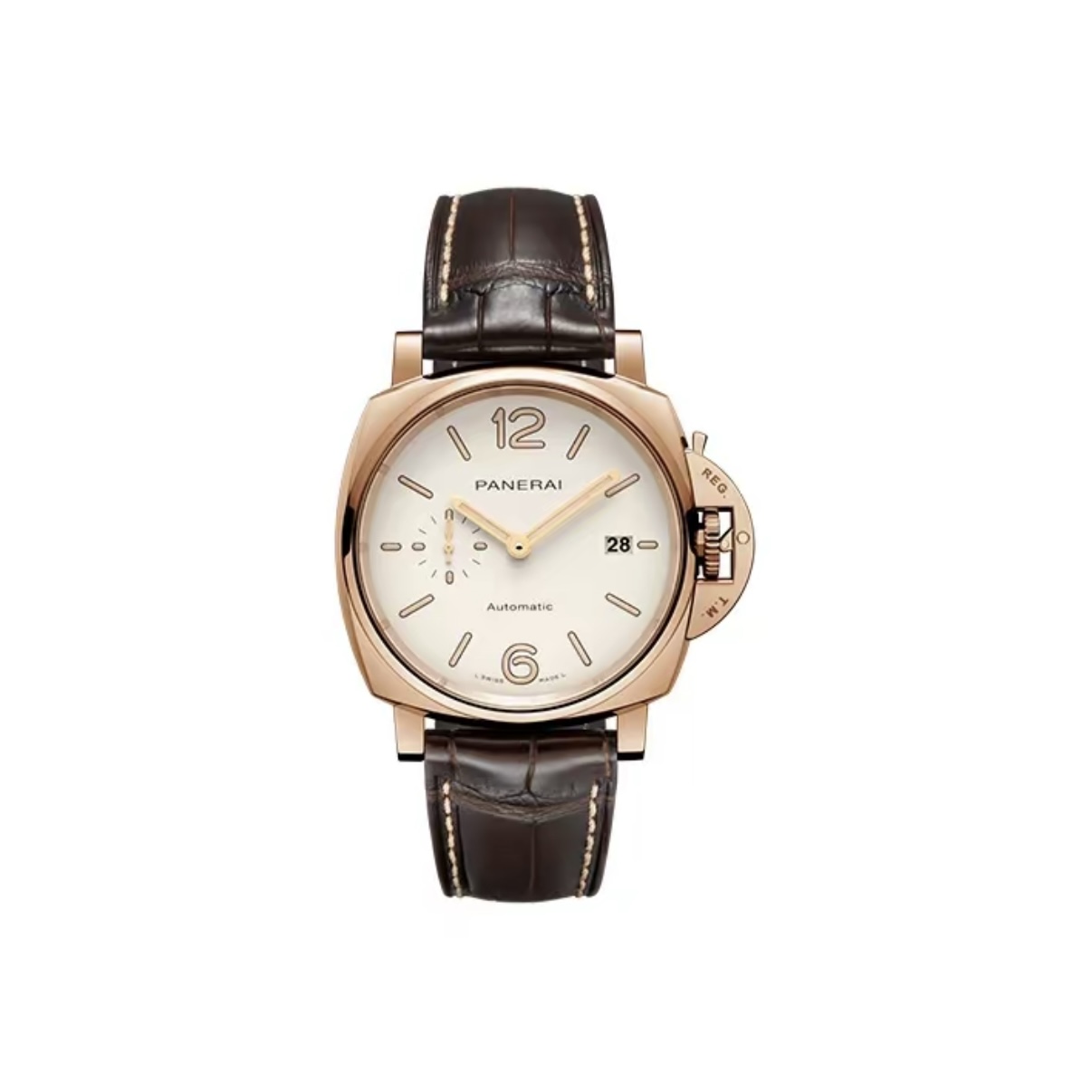 Panerai Luminor Due Automatic 42mm White Dial Red Gold Case Leather Strap Unisex Watch