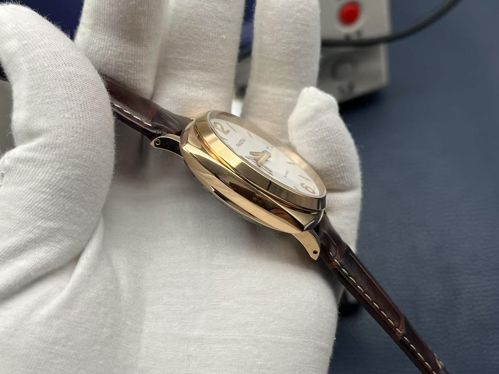 The Panerai Luminor Due PAM01042 represents the essence of refined minimalism. This ultra-thin 42mm model features a polished red gold case and a classic white sandwich dial. Its lightweight structure and elegant design make it perfect for both men and women seeking a modern luxury look.