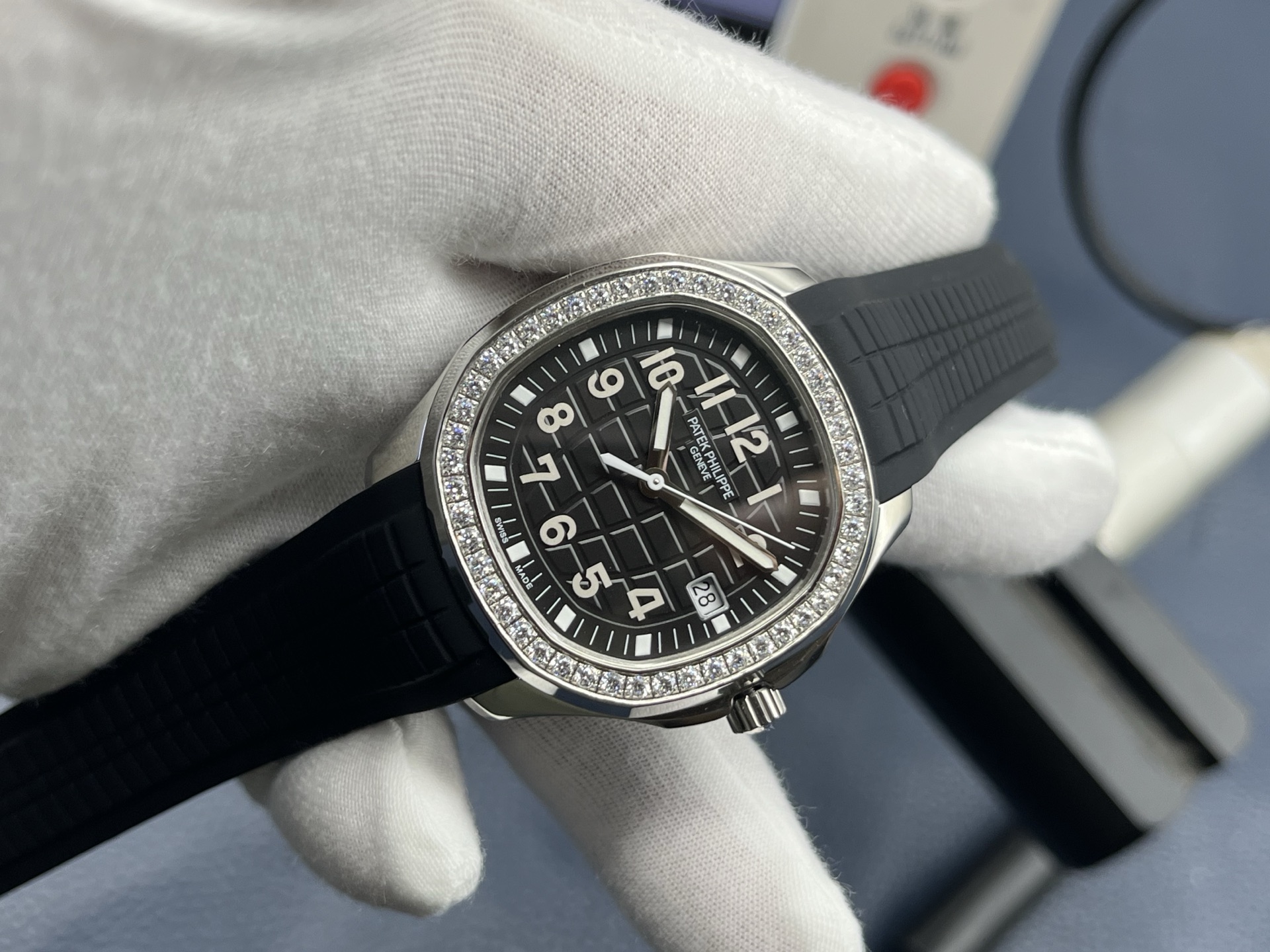 The Patek Philippe Aquanaut Ladies Collection combines contemporary sportiness with refined Swiss luxury. Featuring the iconic rounded octagonal case measuring 38.8mm in diameter and 8.9mm in thickness, each watch case is crafted from high‑grade 904L stainless steel or 18K rose gold, polished to mirror perfection and vertically satin‑brushed for dynamic contrast. Its integrated lugs and screw‑down crown ensure a water resistance of 120 meters, making it suitable for both daily wear and active lifestyles.