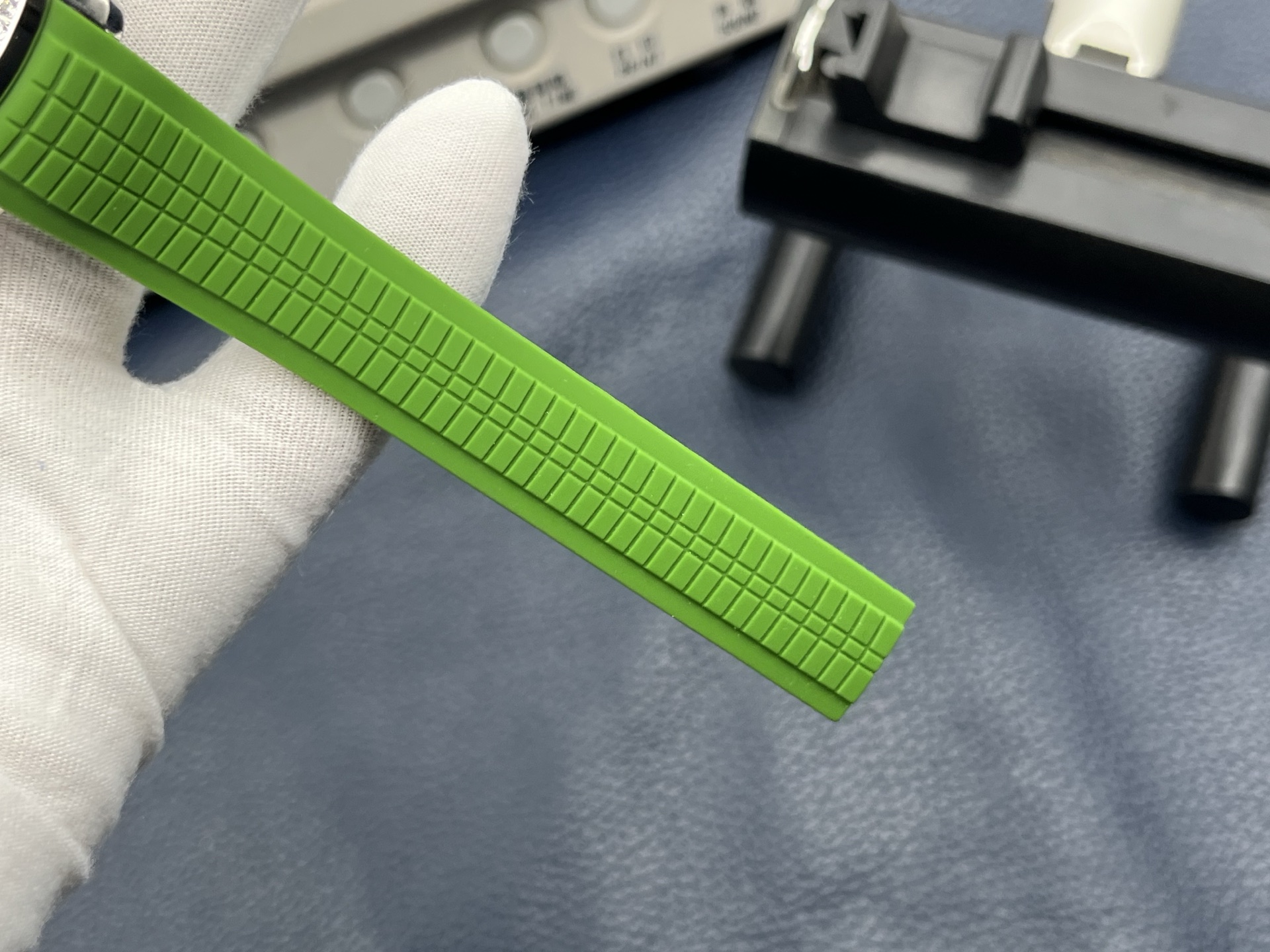 The embossed dial draws inspiration from the Earth’s grid structure, with raised Arabic numerals and luminous hands coated in Super‑LumiNova for clear legibility in low light. A precisely aligned date window reflects impeccable attention to detail. Each piece is completed by a supple ‘Tropical’ composite rubber strap — resistant to salt water, UV rays, and extreme temperature — fitted with a folding clasp that echoes the genuine model’s ergonomic comfort.
