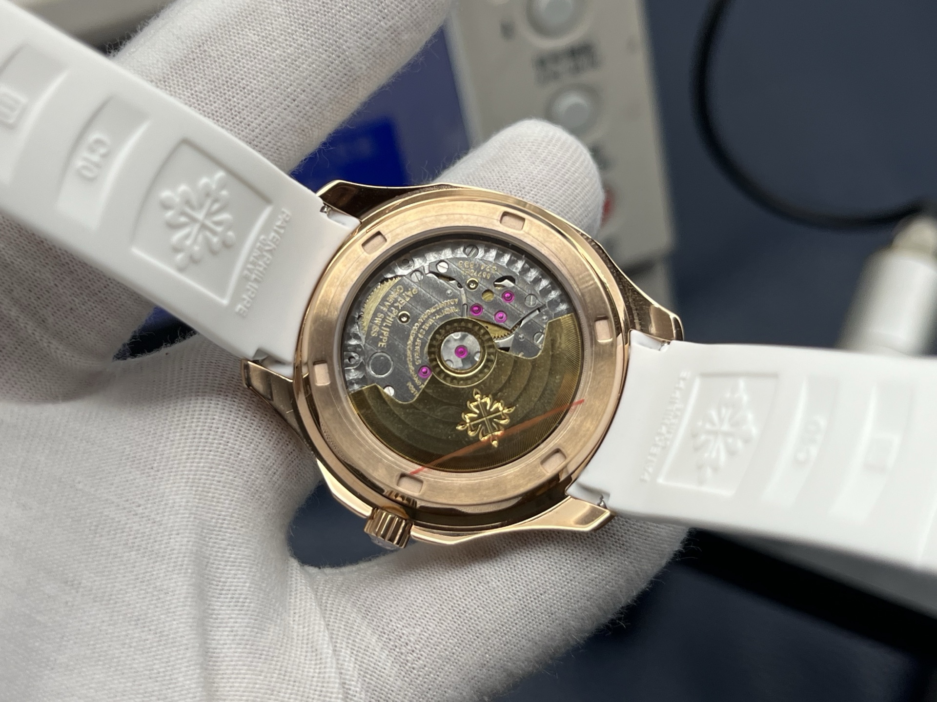 The Patek Philippe Aquanaut Ladies Collection combines contemporary sportiness with refined Swiss luxury. Featuring the iconic rounded octagonal case measuring 38.8mm in diameter and 8.9mm in thickness, each watch case is crafted from high‑grade 904L stainless steel or 18K rose gold, polished to mirror perfection and vertically satin‑brushed for dynamic contrast. Its integrated lugs and screw‑down crown ensure a water resistance of 120 meters, making it suitable for both daily wear and active lifestyles.