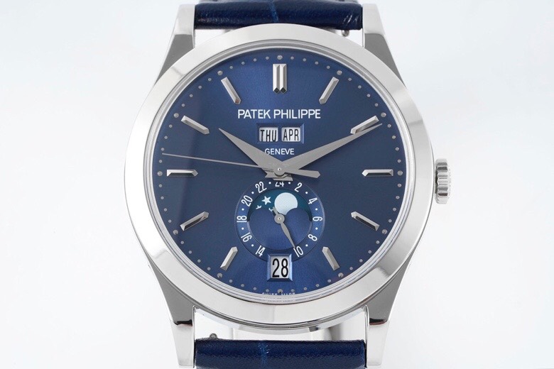 The Patek Philippe Complications 5396 collection represents the perfect harmony between refined aesthetics and technical mastery. Equipped with the Caliber 324 S QA LU 24H/303 automatic movement, it offers an annual calendar, moonphase, 24-hour indicator, and day/date/month display. The 38.5mm polished silvery case and sunburst-patterned dial showcase exquisite craftsmanship, while the sapphire crystal with dual anti-reflective coating ensures legibility. Fitted with a hand-stitched alligator leather strap, the watch delivers both comfort and luxury. With a 30m water resistance and transparent case back, each piece exemplifies Patek Philippe’s dedication to precision and timeless beauty.