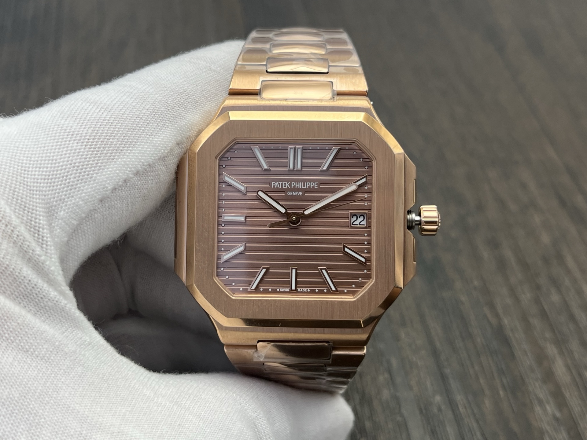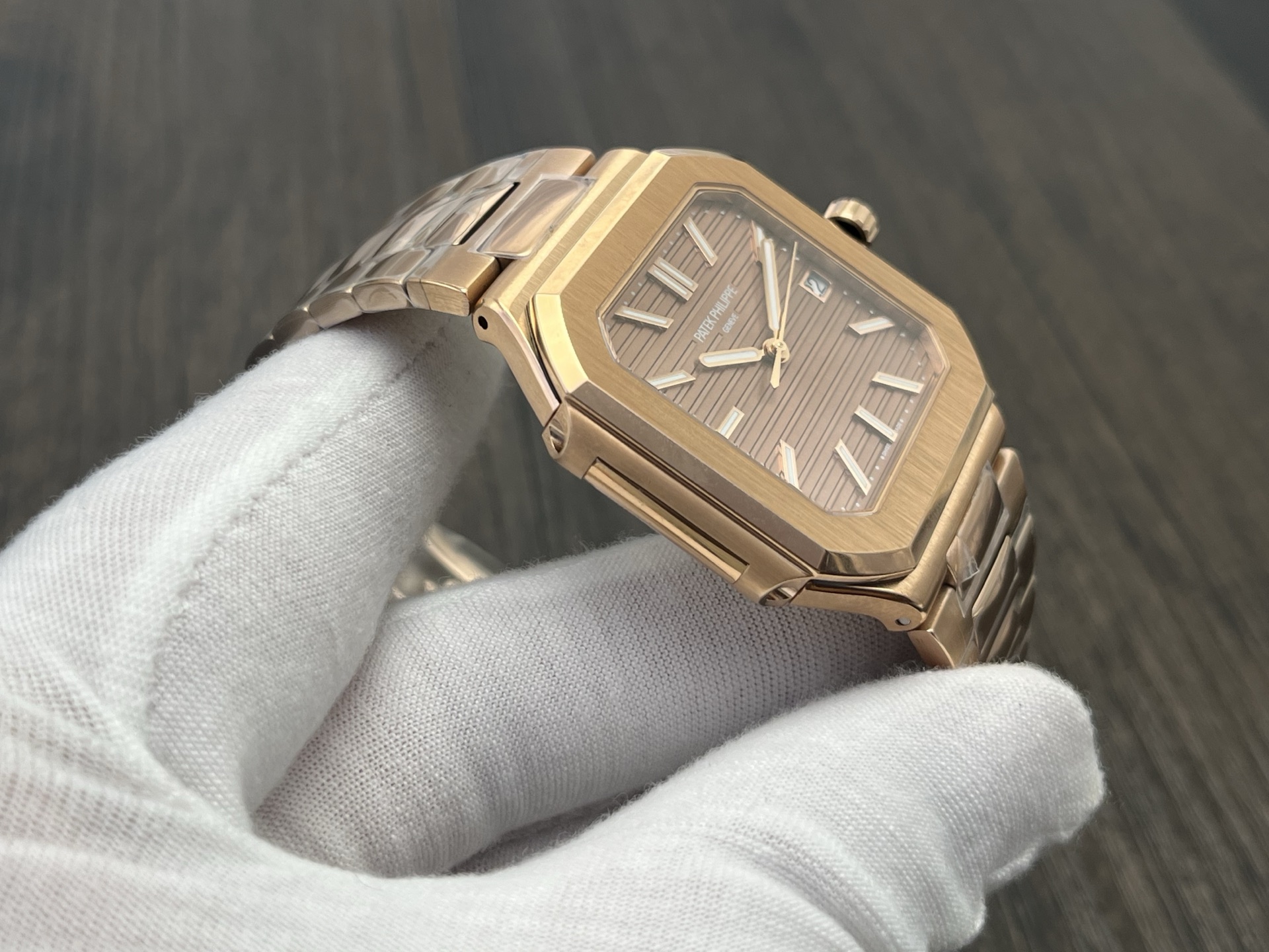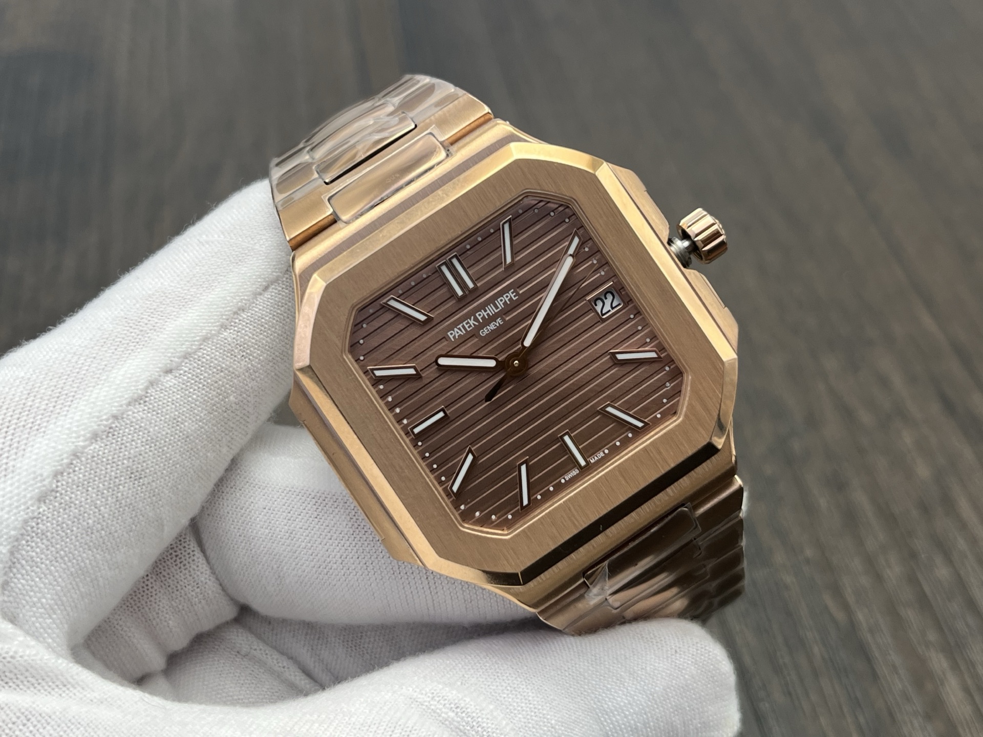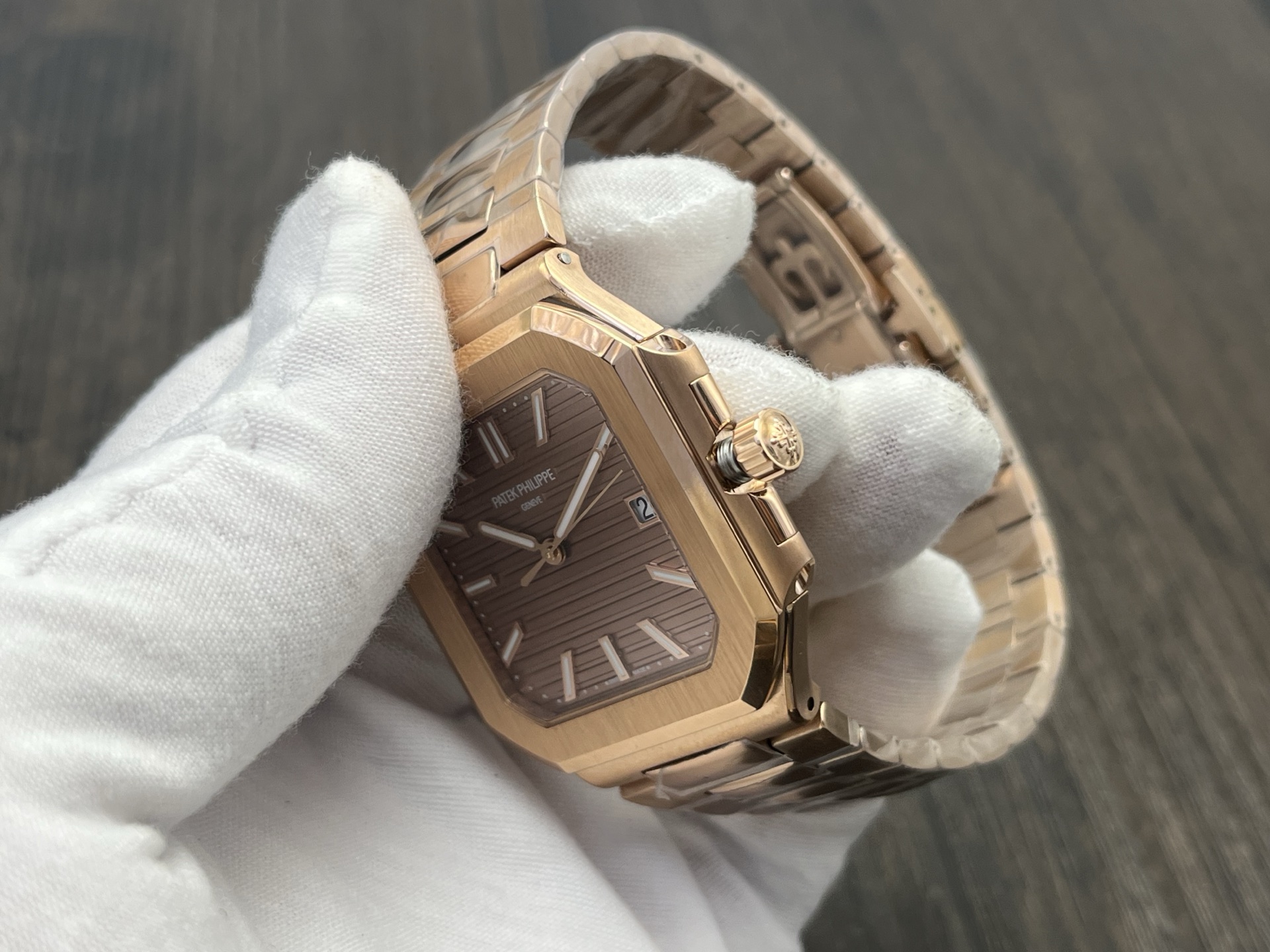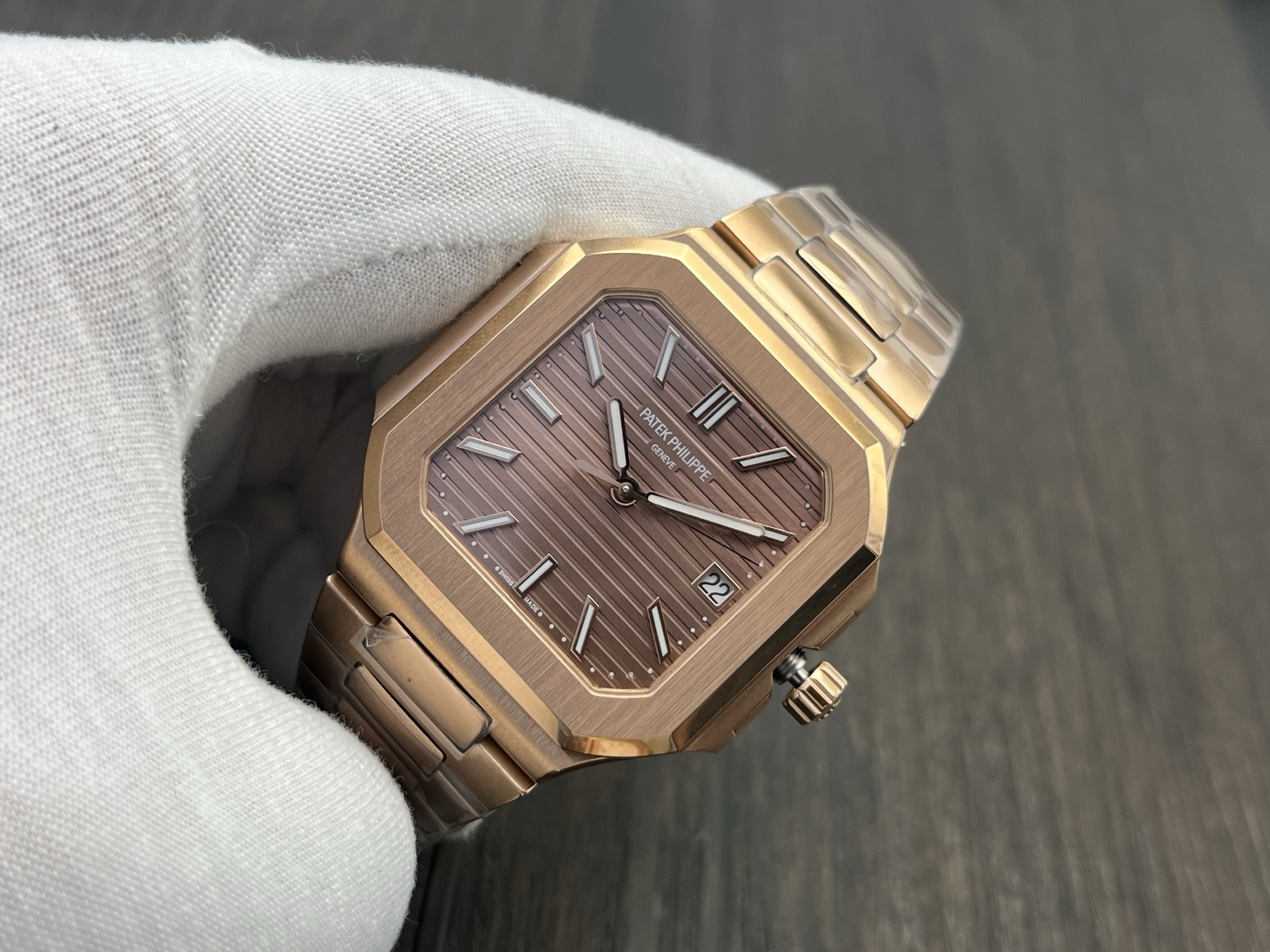Patek Philippe Cubitus Series Automatic 45mm Brown Dial 18K Rose Gold is part of the Cubitus Series by Patek Philippe, designed for modern daily wear with refined finishing and a confident presence on the wrist. It features an automatic movement for reliable timekeeping, a 45mm case with clean architectural lines, and 30m water resistance for everyday scenarios. The 18k rose gold case pairs with a matching 18k rose gold to deliver comfort and durability, while the brown dial offers clear legibility with elegant markers and hands. The watch is regulated to high standards for stable performance. Sapphire crystal enhances scratch resistance, and the precisely engineered clasp makes on‑wrist adjustments smooth and secure.