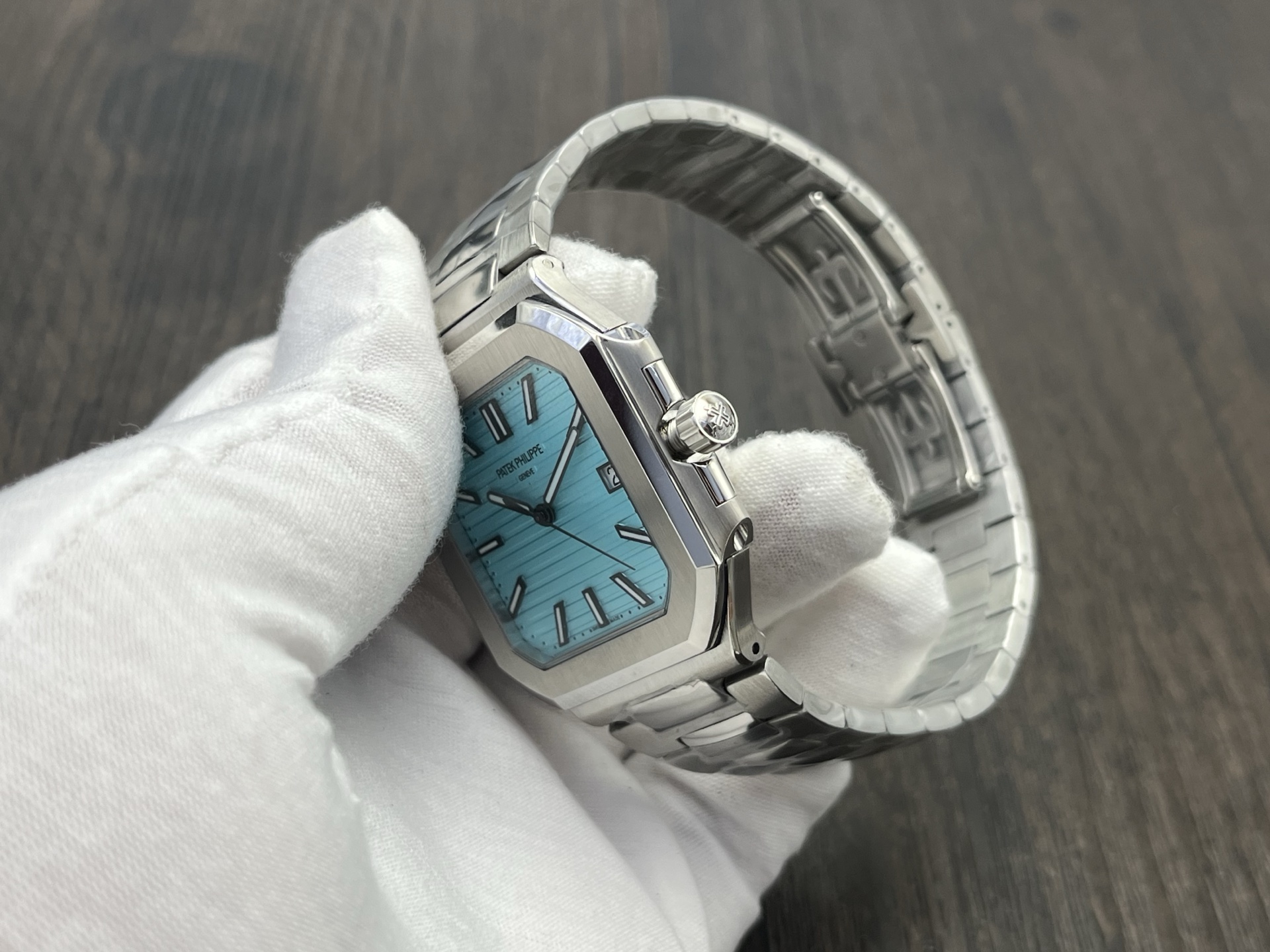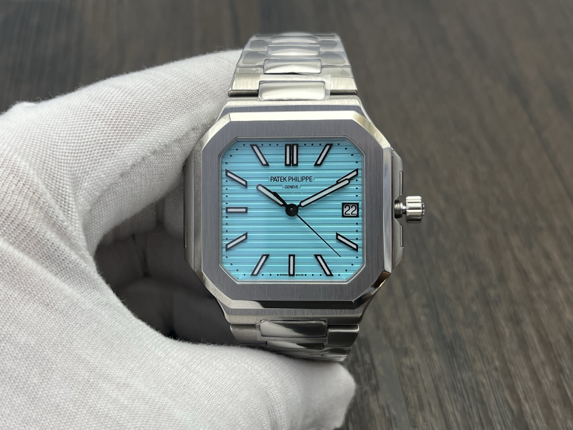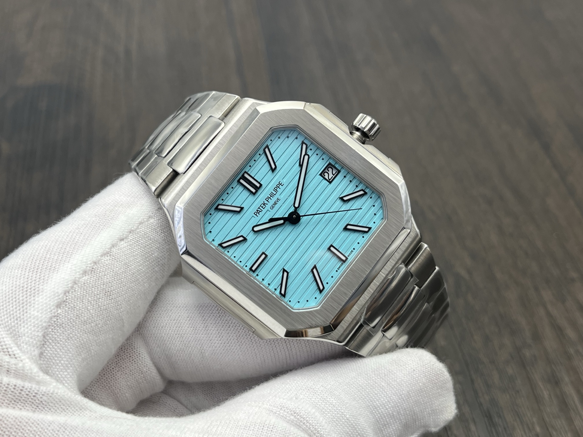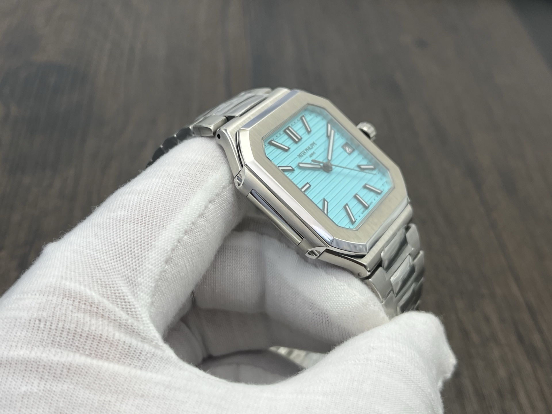 Patek Philippe Cubitus Series Automatic 45mm Tiffany Blue Dial Stainless Steel is part of the Cubitus Series by Patek Philippe, designed for modern daily wear with refined finishing and a confident presence on the wrist. It features an automatic movement for reliable timekeeping, a 45mm case with clean architectural lines, and 30m water resistance for everyday scenarios. The stainless steel case pairs with a matching stainless steel to deliver comfort and durability, while the tiffany blue dial offers clear legibility with elegant markers and hands. The watch is regulated to high standards for stable performance. Sapphire crystal enhances scratch resistance, and the precisely engineered clasp makes on‑wrist adjustments smooth and secure.