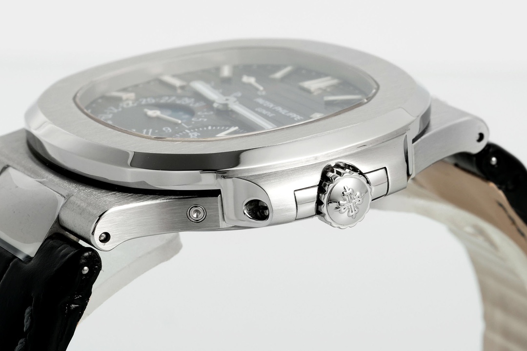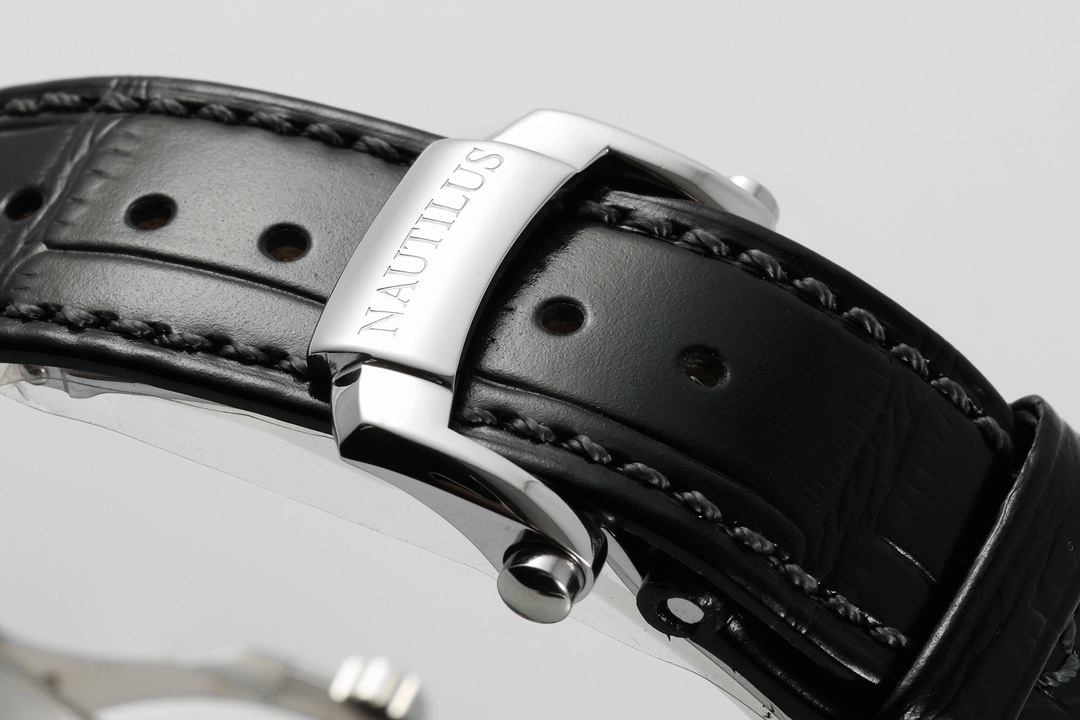 High-end Patek Philippe Nautilus automatic watch with sapphire caseback and Swiss craftsmanship.