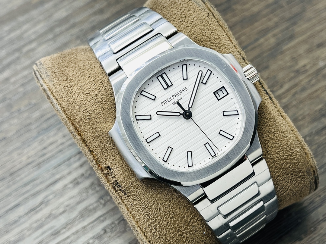 The Patek Philippe Nautilus 5711 embodies sporty elegance with its distinctive porthole-inspired case and refined craftsmanship. Powered by the custom Cal.324SC automatic movement with 45-hour power reserve and 28,800vph frequency. Features include a 40mm case, sapphire crystal with dual-sided anti-reflective coating, 120m water resistance, and a 316L ergonomic bracelet. Every detail—from the horizontal embossed dial to the polished and brushed surfaces—faithfully replicates the original Swiss aesthetic.