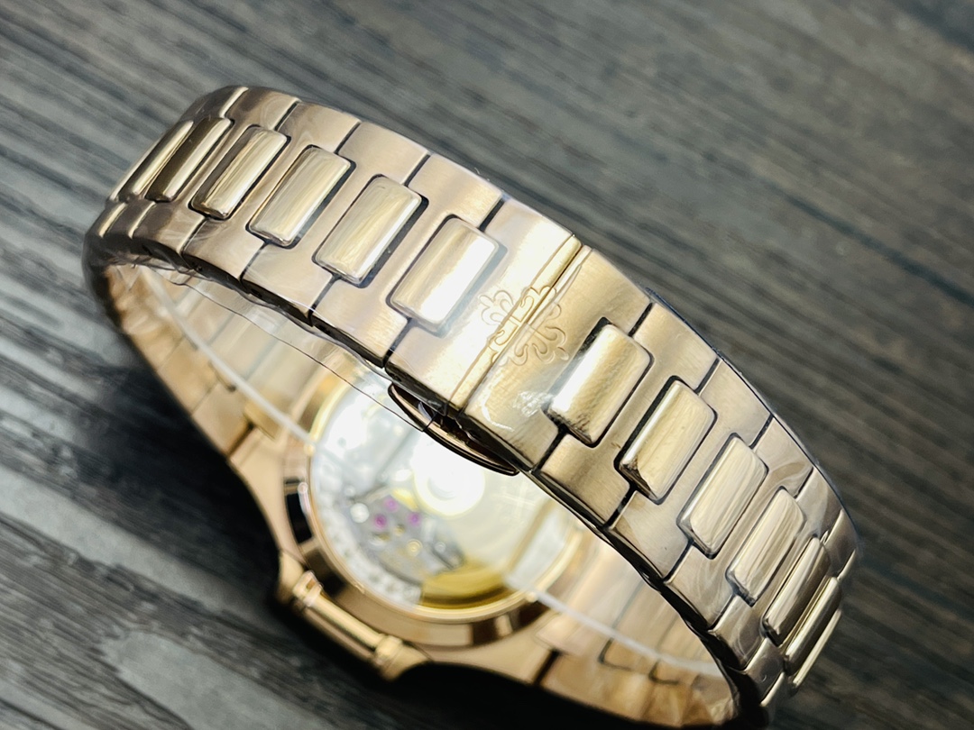The Patek Philippe Nautilus 5711 embodies sporty elegance with its distinctive porthole-inspired case and refined craftsmanship. Powered by the custom Cal.324SC automatic movement with 45-hour power reserve and 28,800vph frequency. Features include a 40mm case, sapphire crystal with dual-sided anti-reflective coating, 120m water resistance, and a 316L ergonomic bracelet. Every detail—from the horizontal embossed dial to the polished and brushed surfaces—faithfully replicates the original Swiss aesthetic.