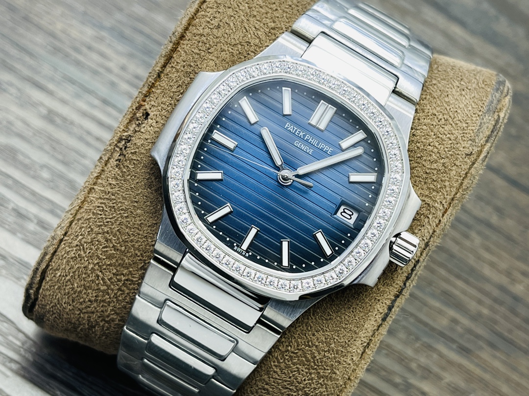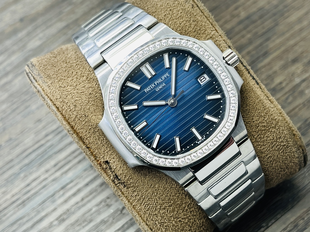 The Patek Philippe Nautilus 5711 embodies sporty elegance with its distinctive porthole-inspired case and refined craftsmanship. Powered by the custom Cal.324SC automatic movement with 45-hour power reserve and 28,800vph frequency. Features include a 40mm case, sapphire crystal with dual-sided anti-reflective coating, 120m water resistance, and a 316L ergonomic bracelet. Every detail—from the horizontal embossed dial to the polished and brushed surfaces—faithfully replicates the original Swiss aesthetic.